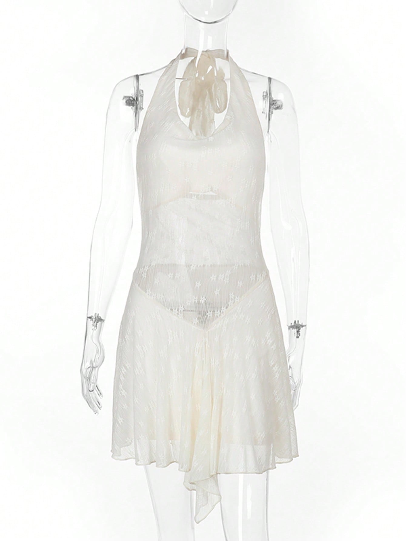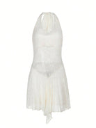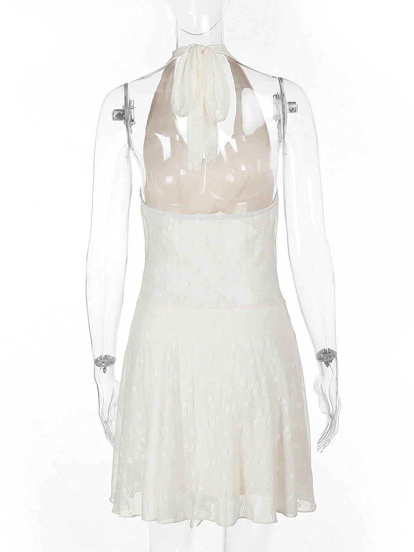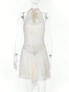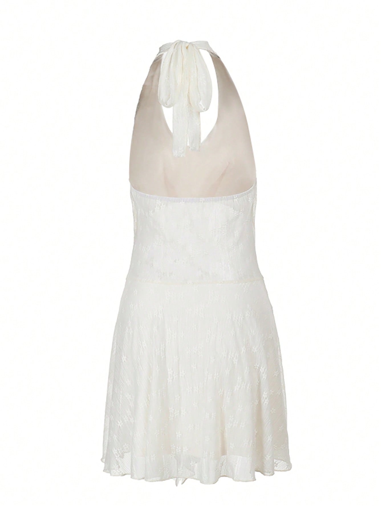 فستان دانتيل سادة اللون بياقة منسدلة وظهر مكشوف من الخلف