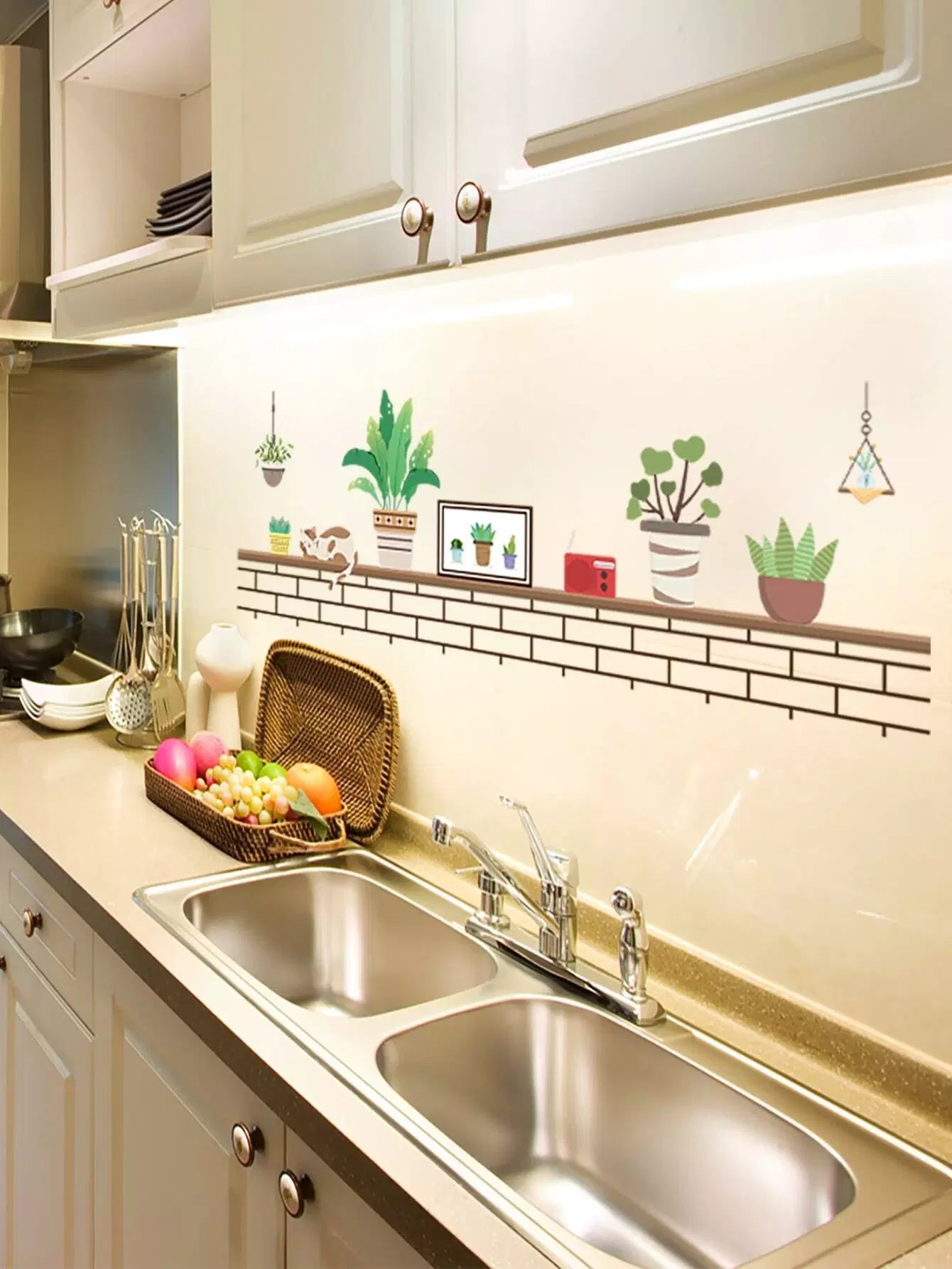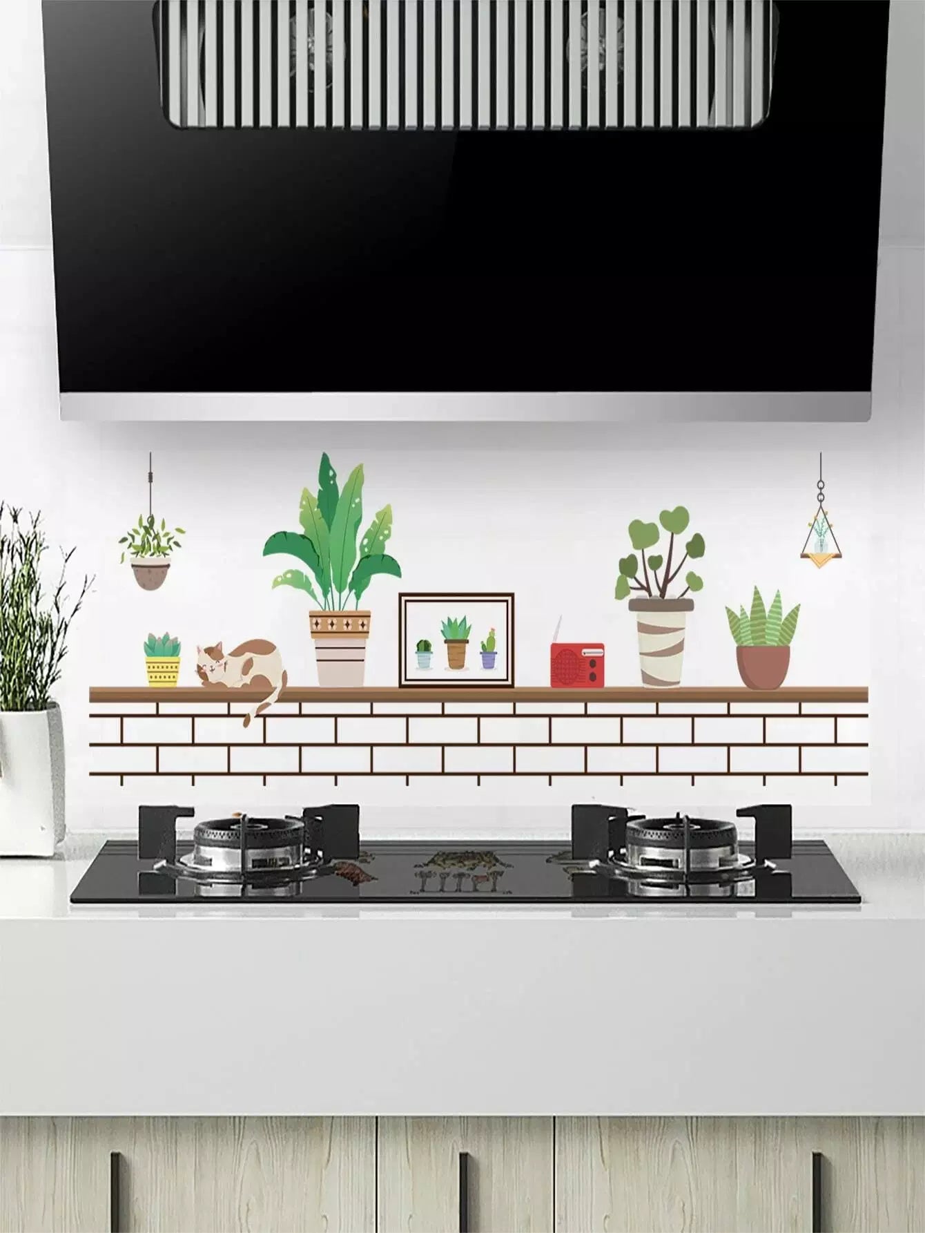 ملصق المطبخ بطبعة النباتات المقاوم للماء