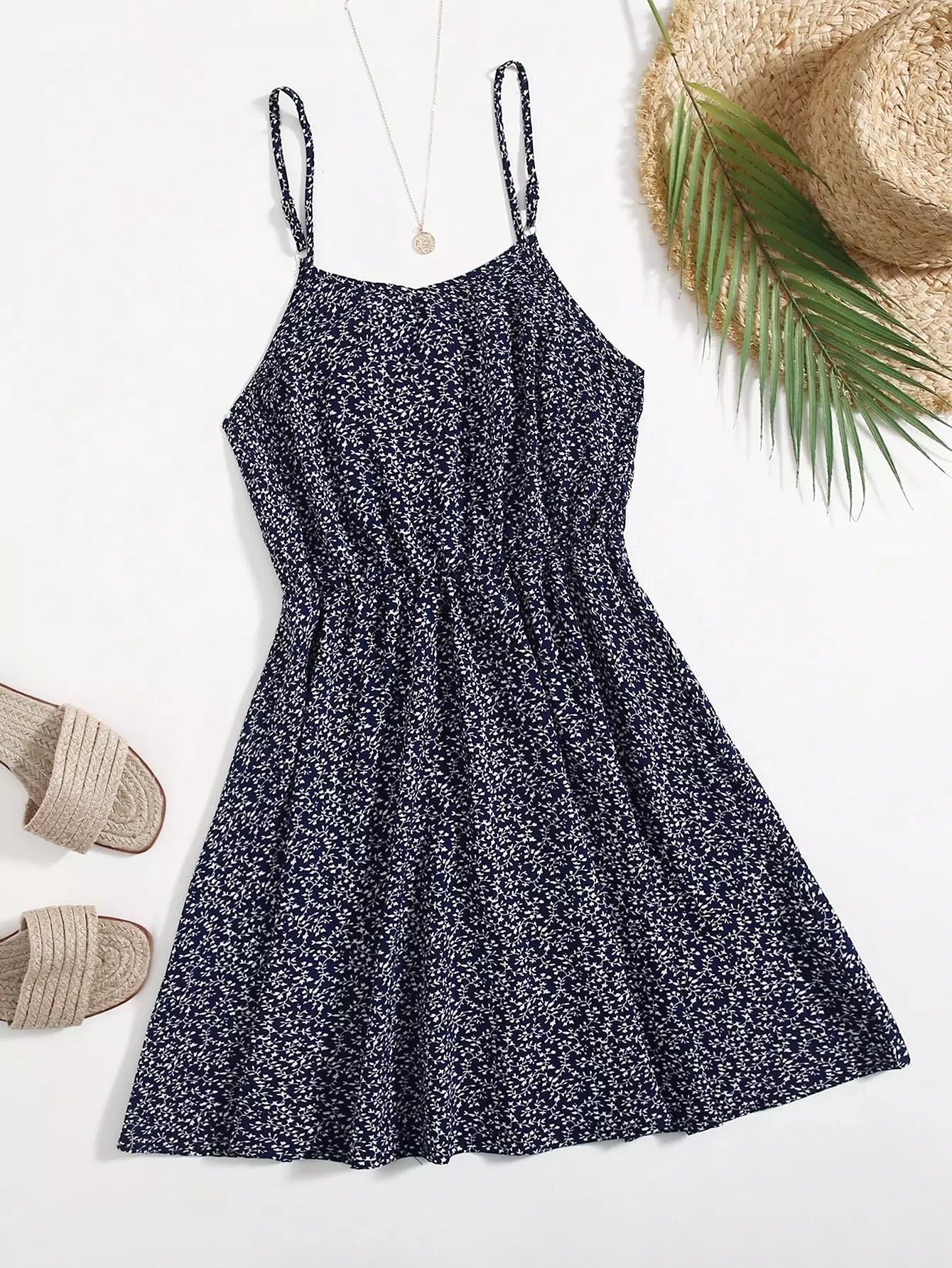 فستان كامي بطبعة نباتات