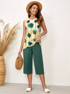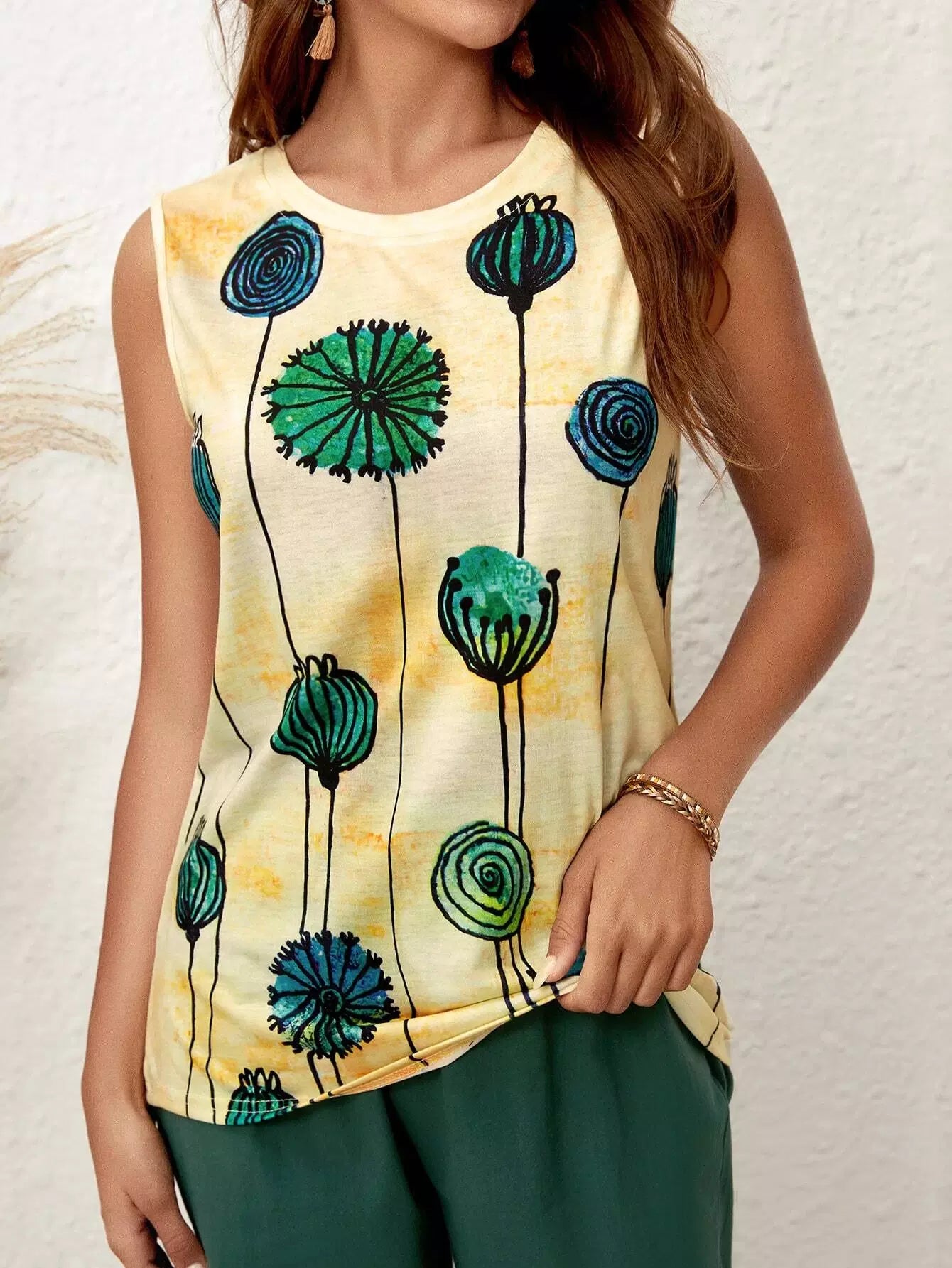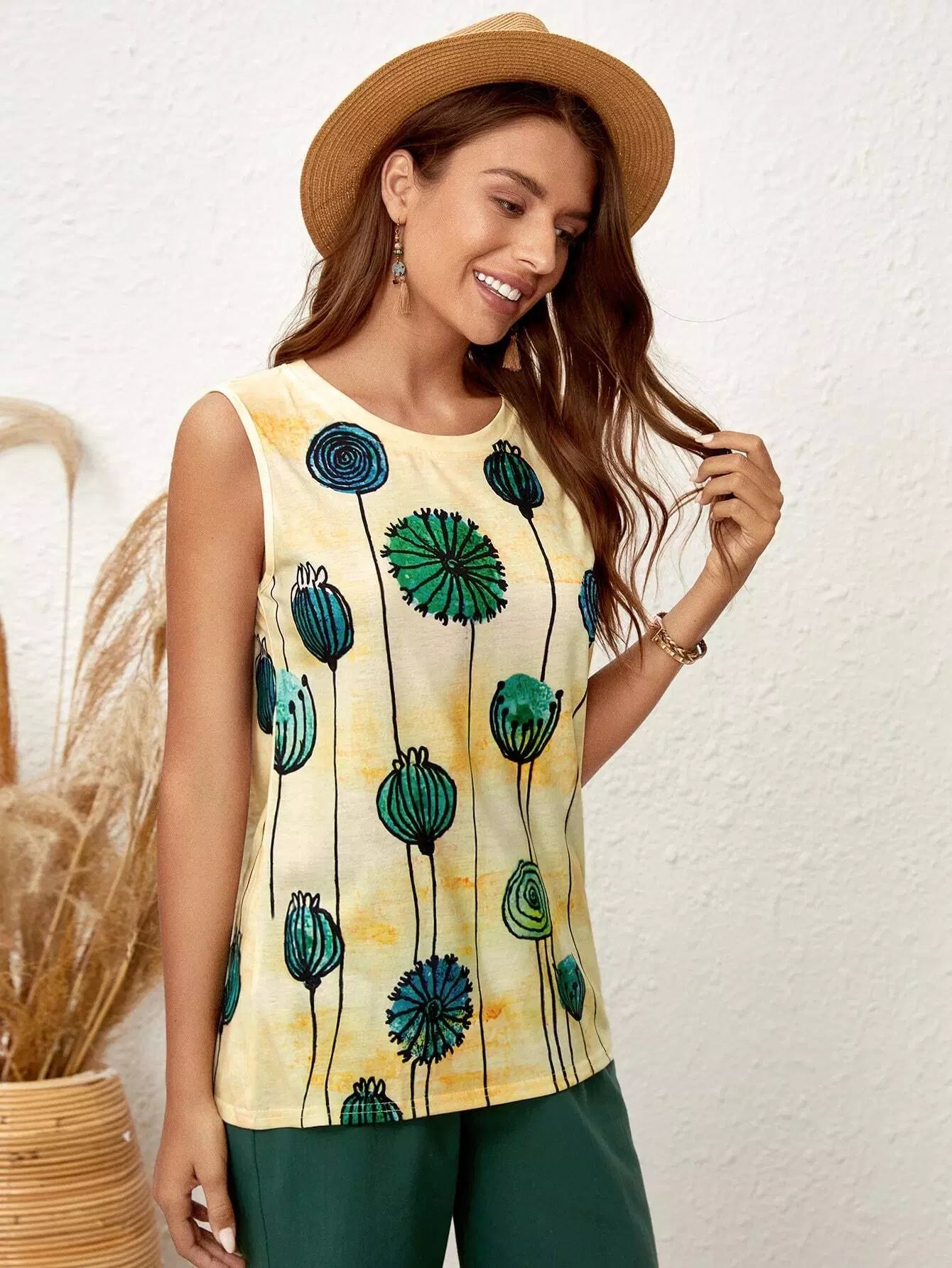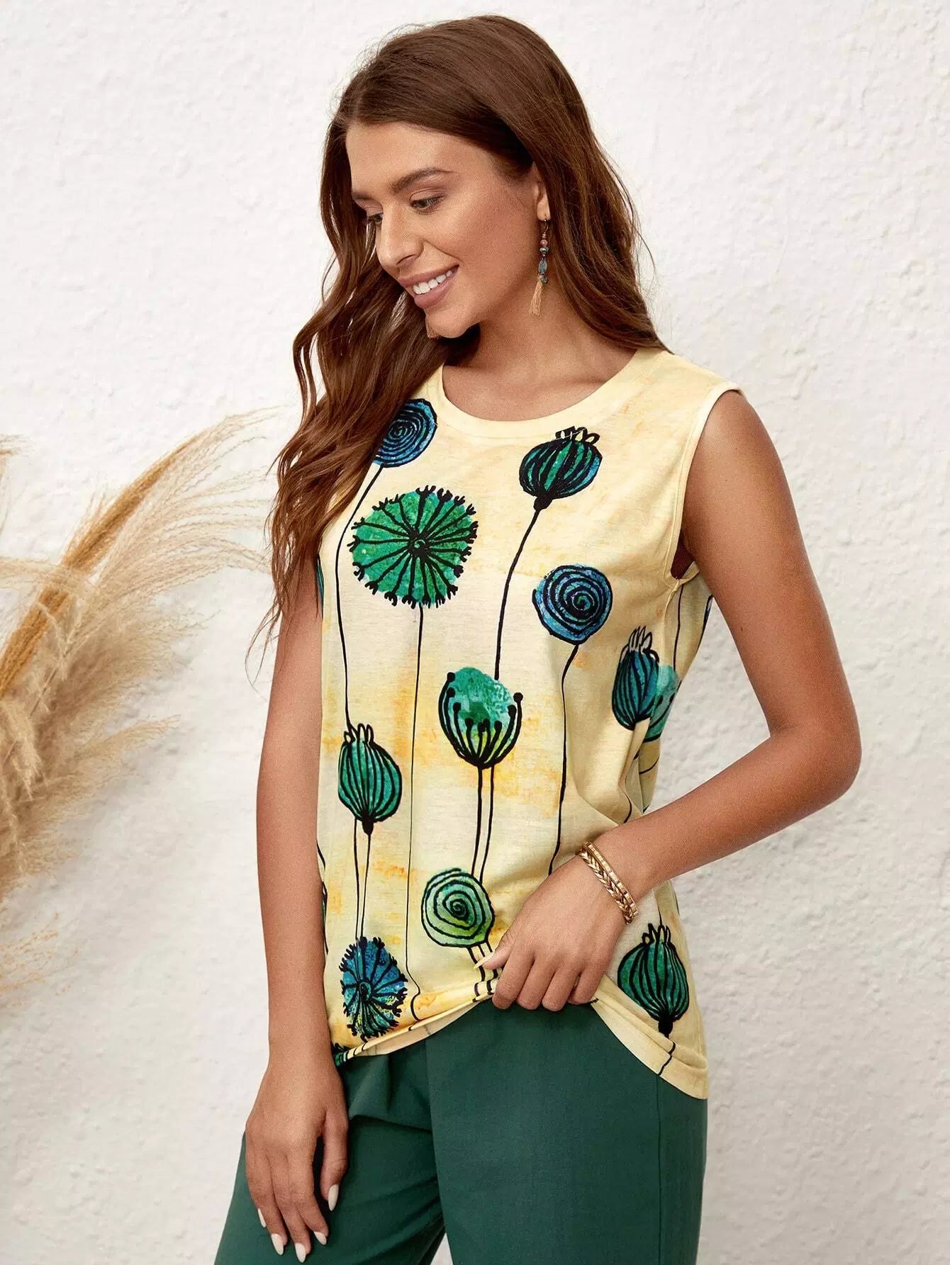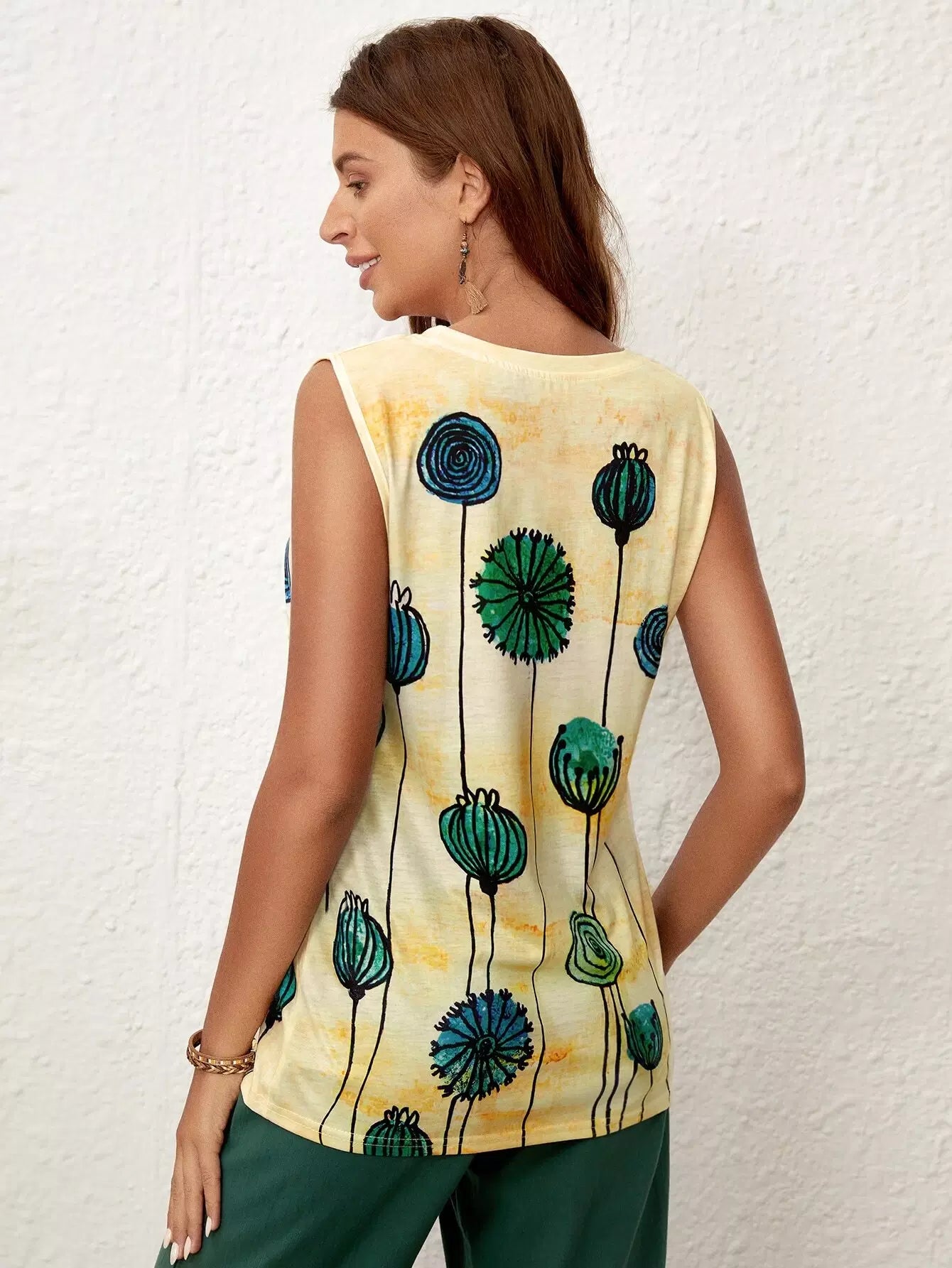 توب بدون أكمام بطبعة نباتات