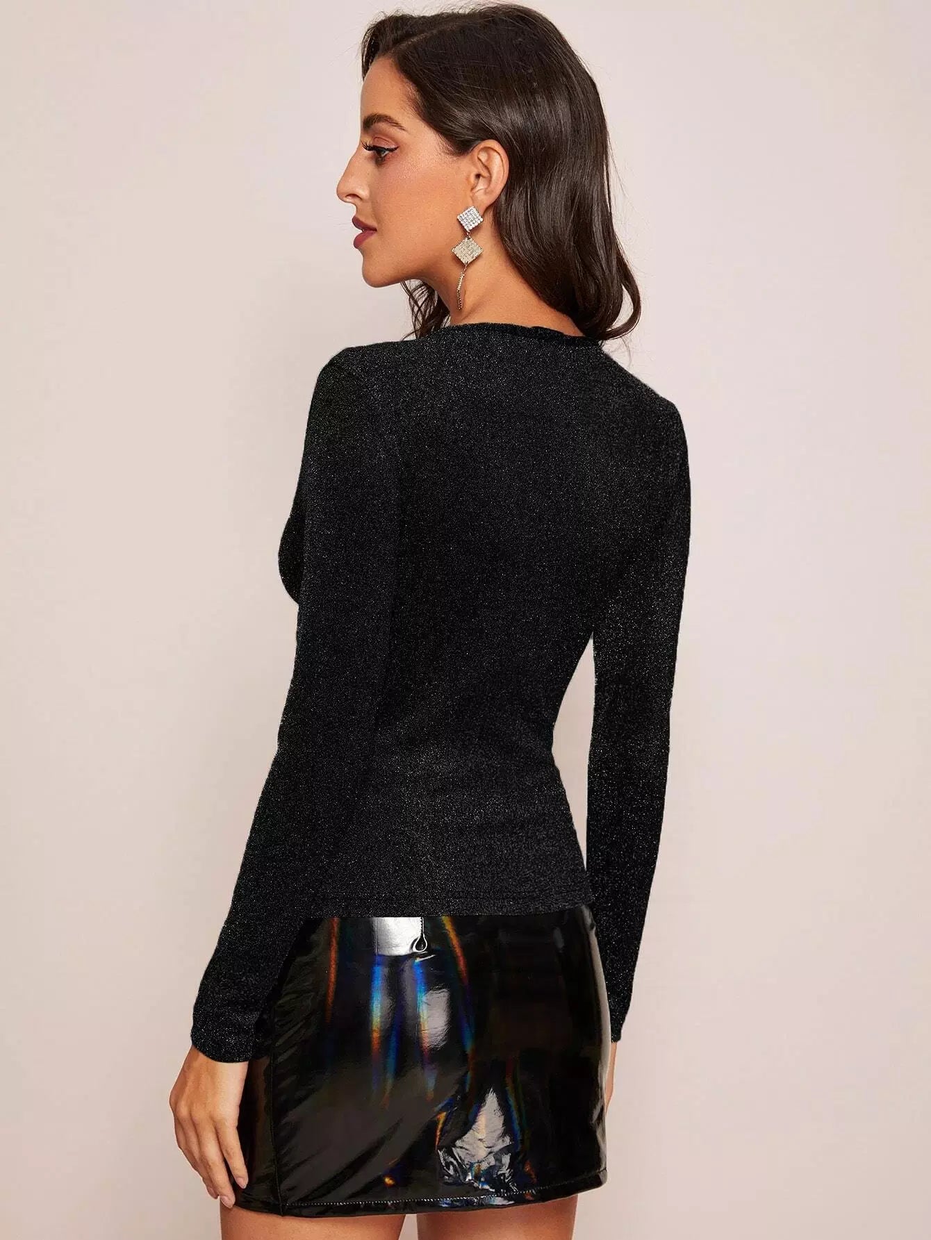 تي شيرت بقصّة ضيقة لامعة ومزركشة