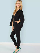 بدلة جمبسوت بأكمام عباءة برقبة واسعة بفتحة عنق كبيرة