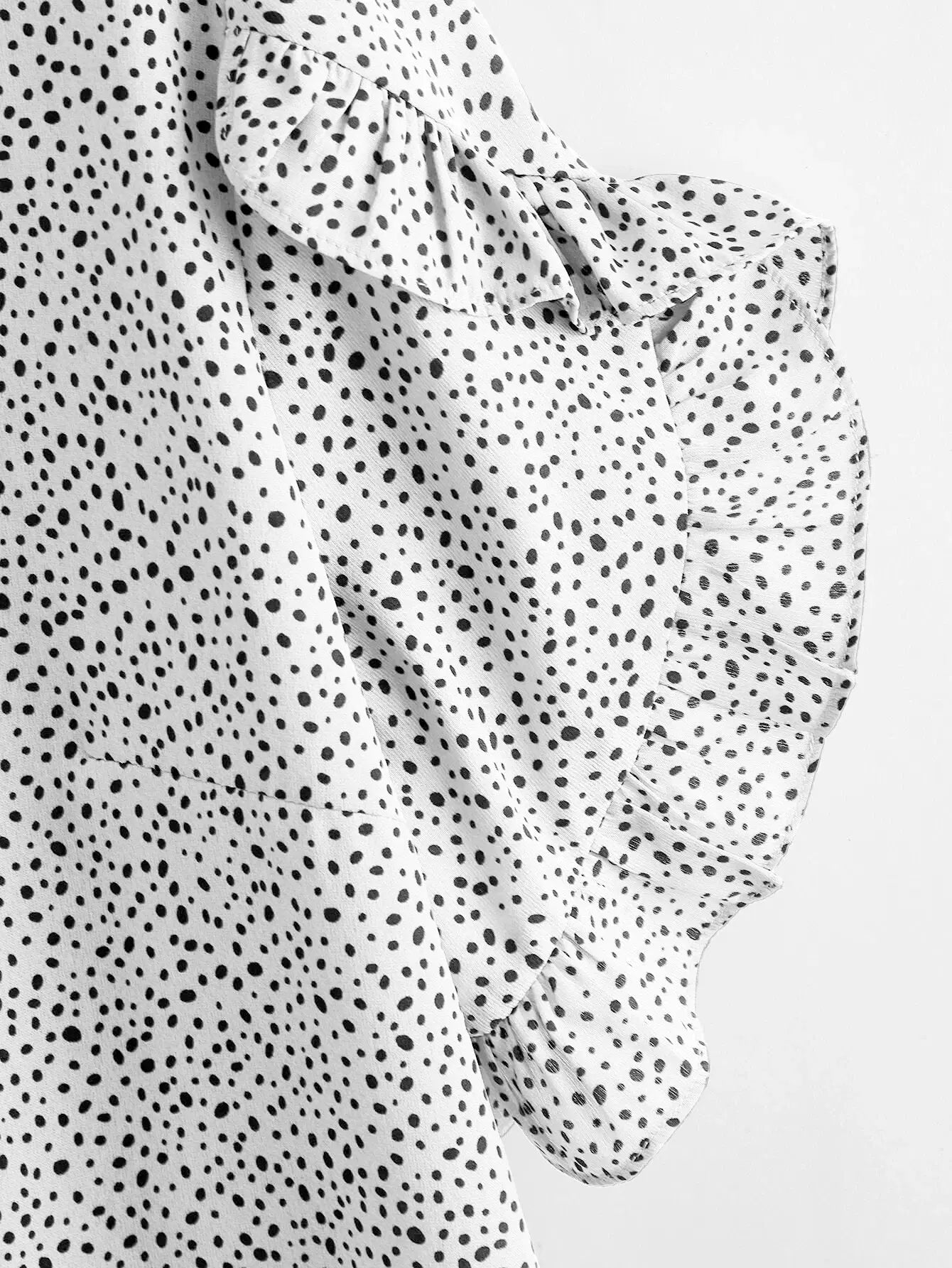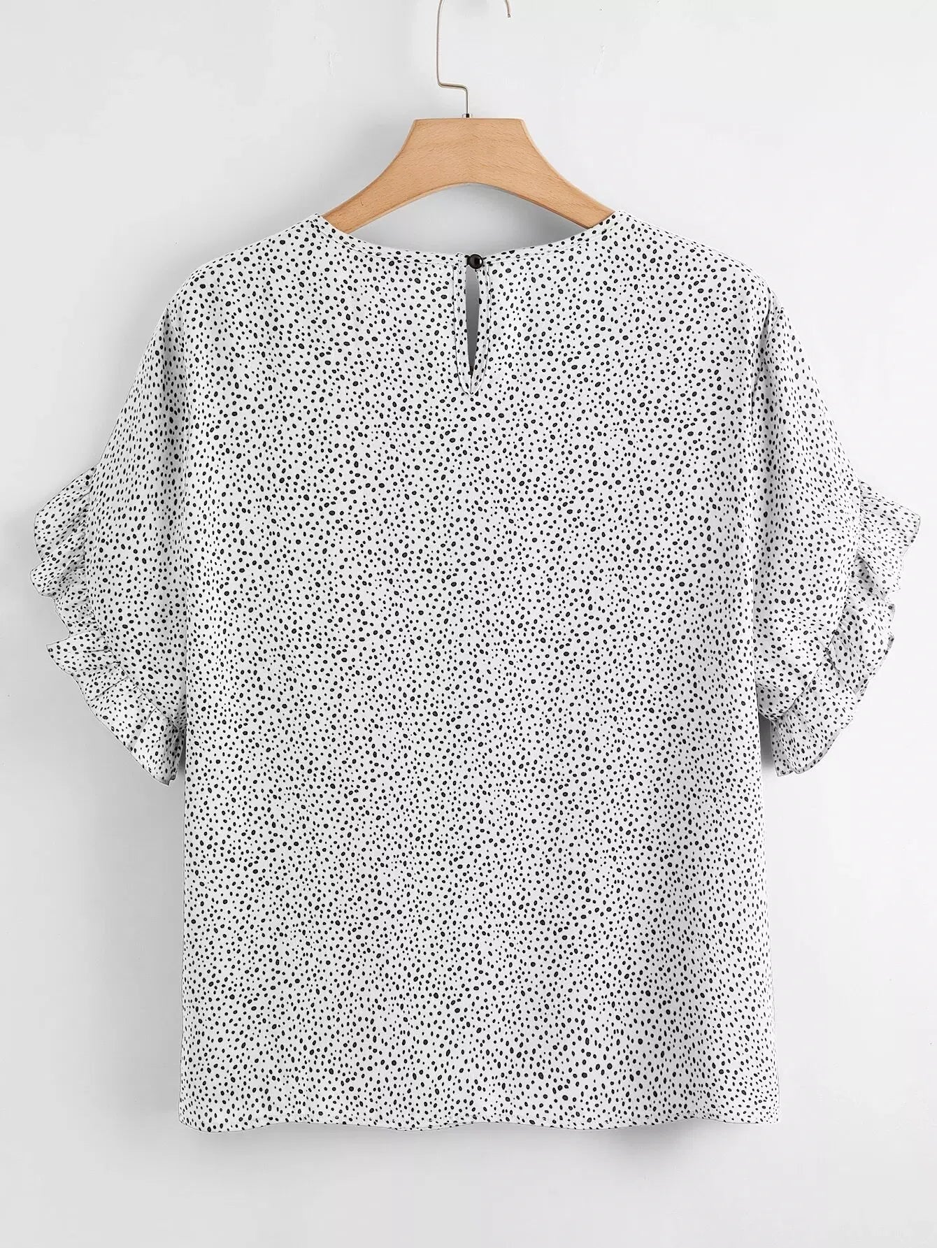 بلوزة بطبعة كشكش مطبوع عليها بالكامل