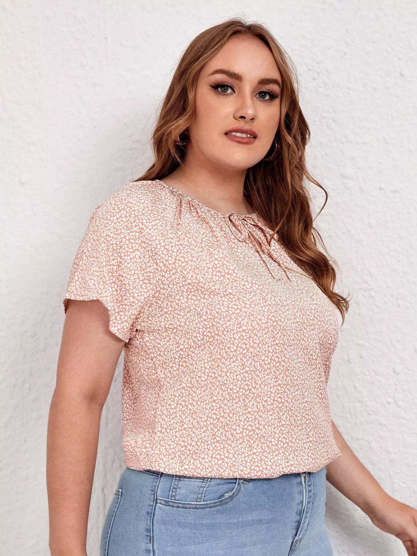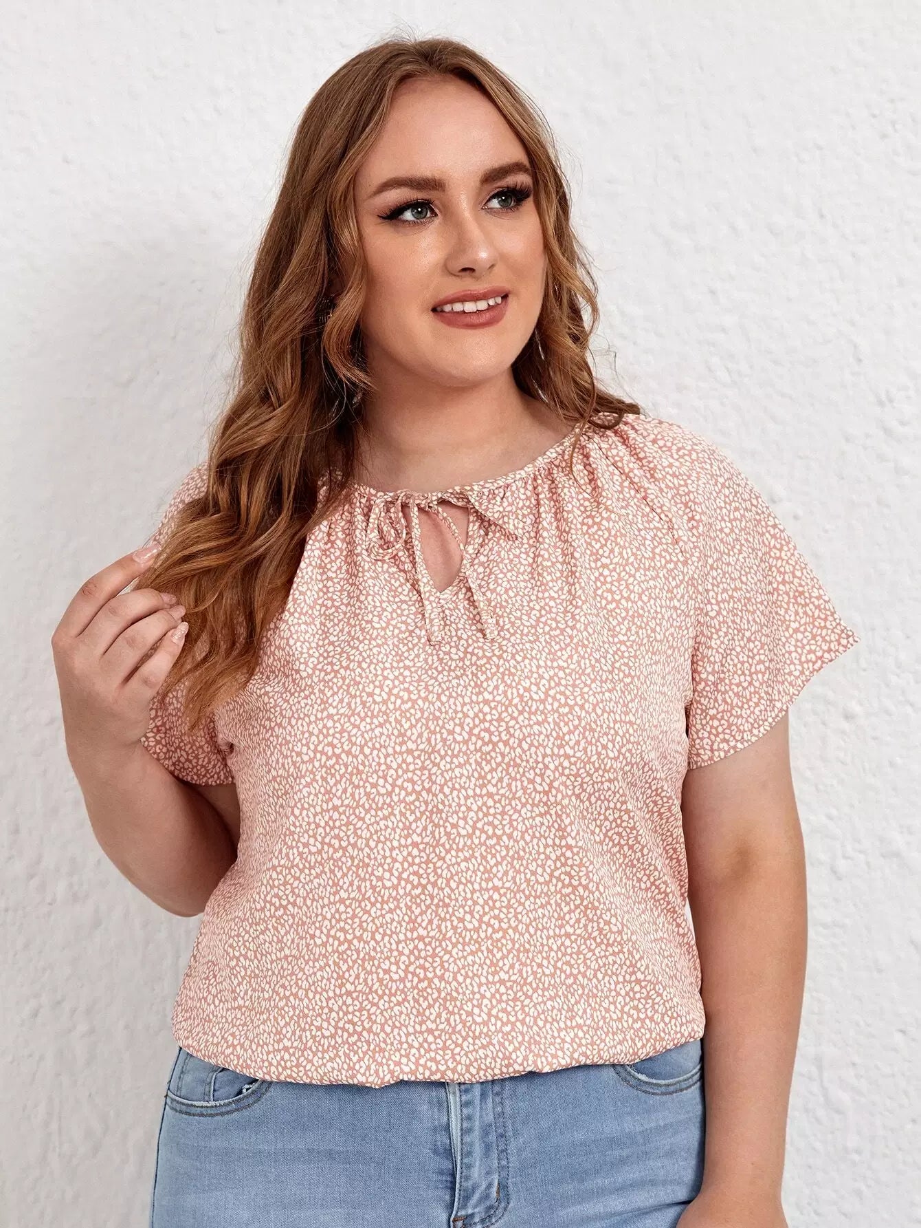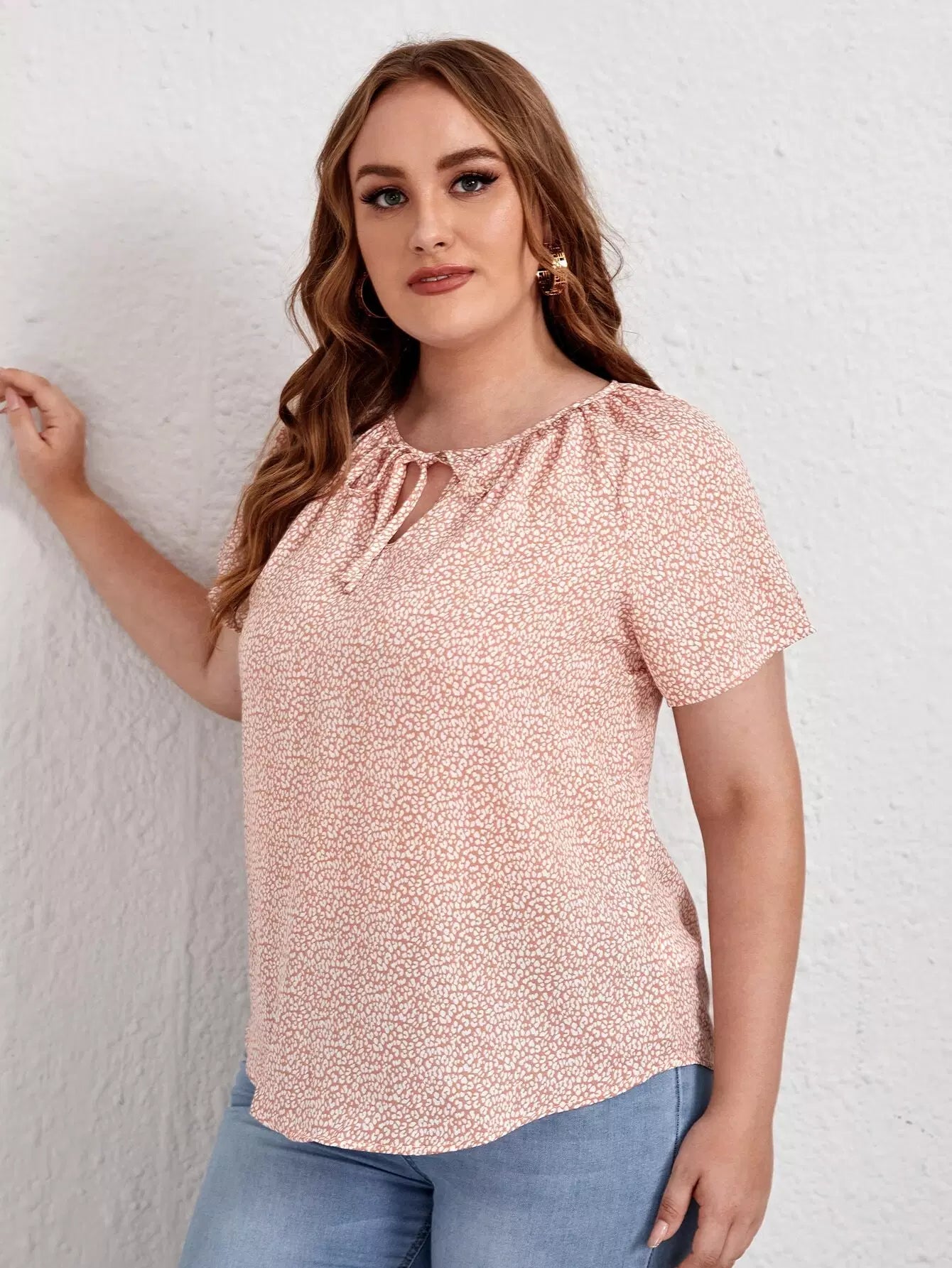بلوزة بطبعة على كامل الصدرية وربطة عنق مطبوعة بالكامل