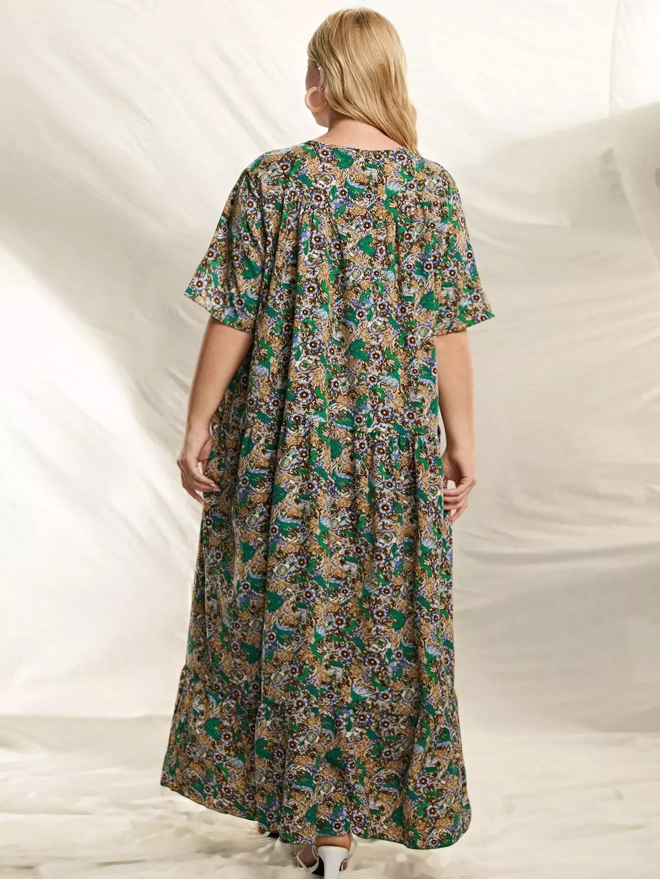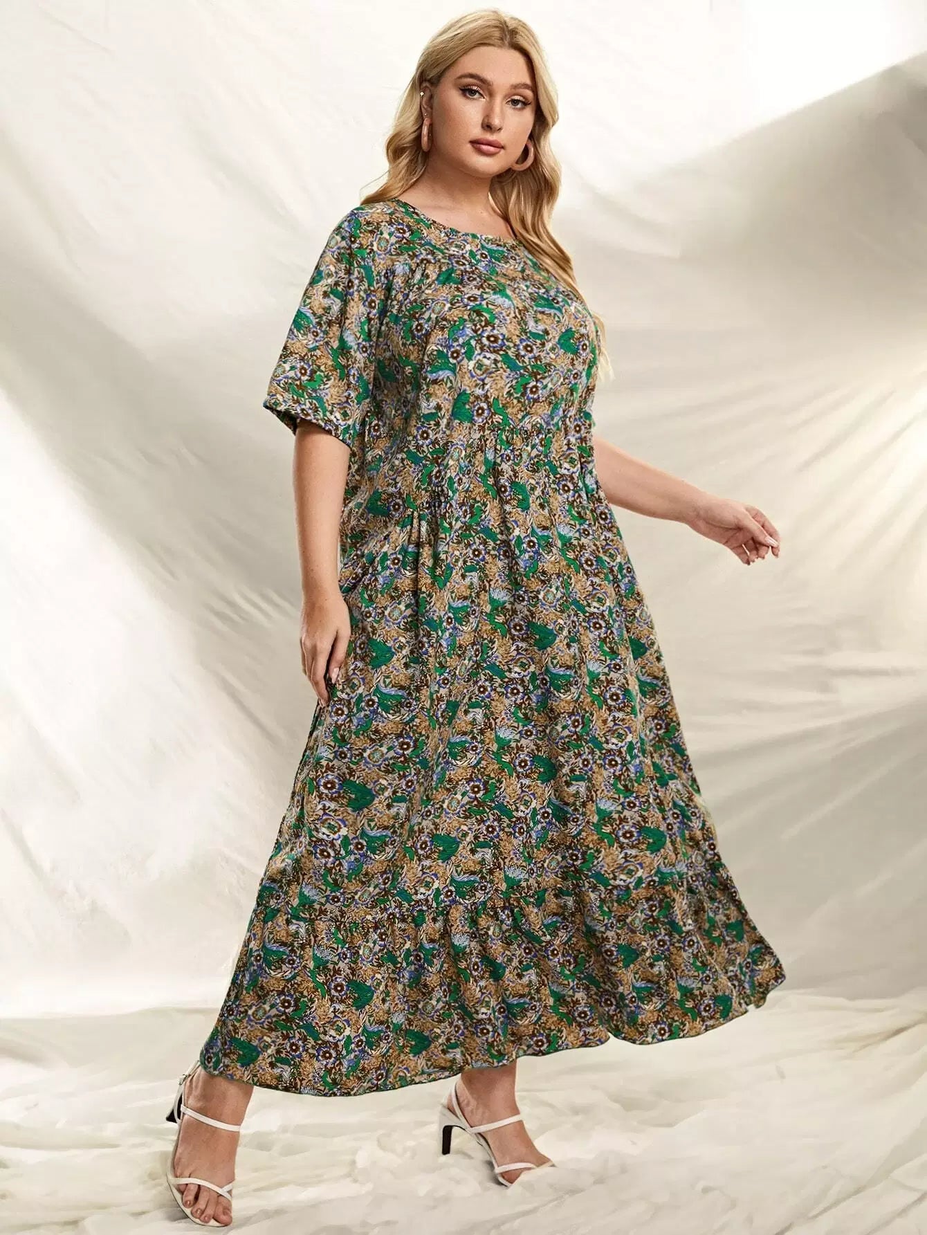 فستان كشكش بحواف مكشكشة مطبوع عليه زهور بالكامل