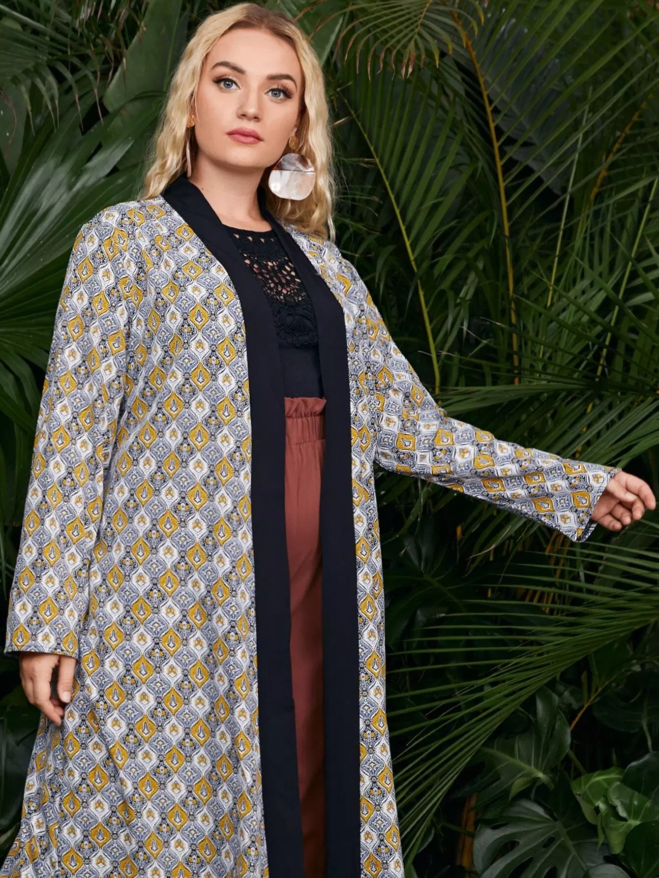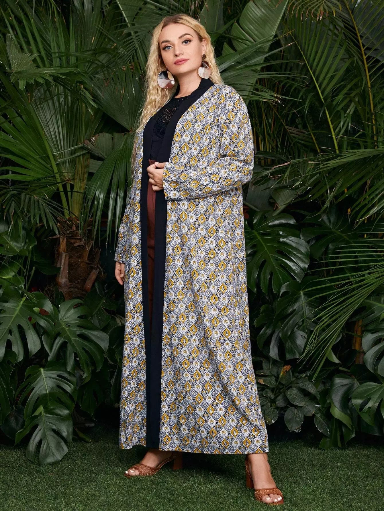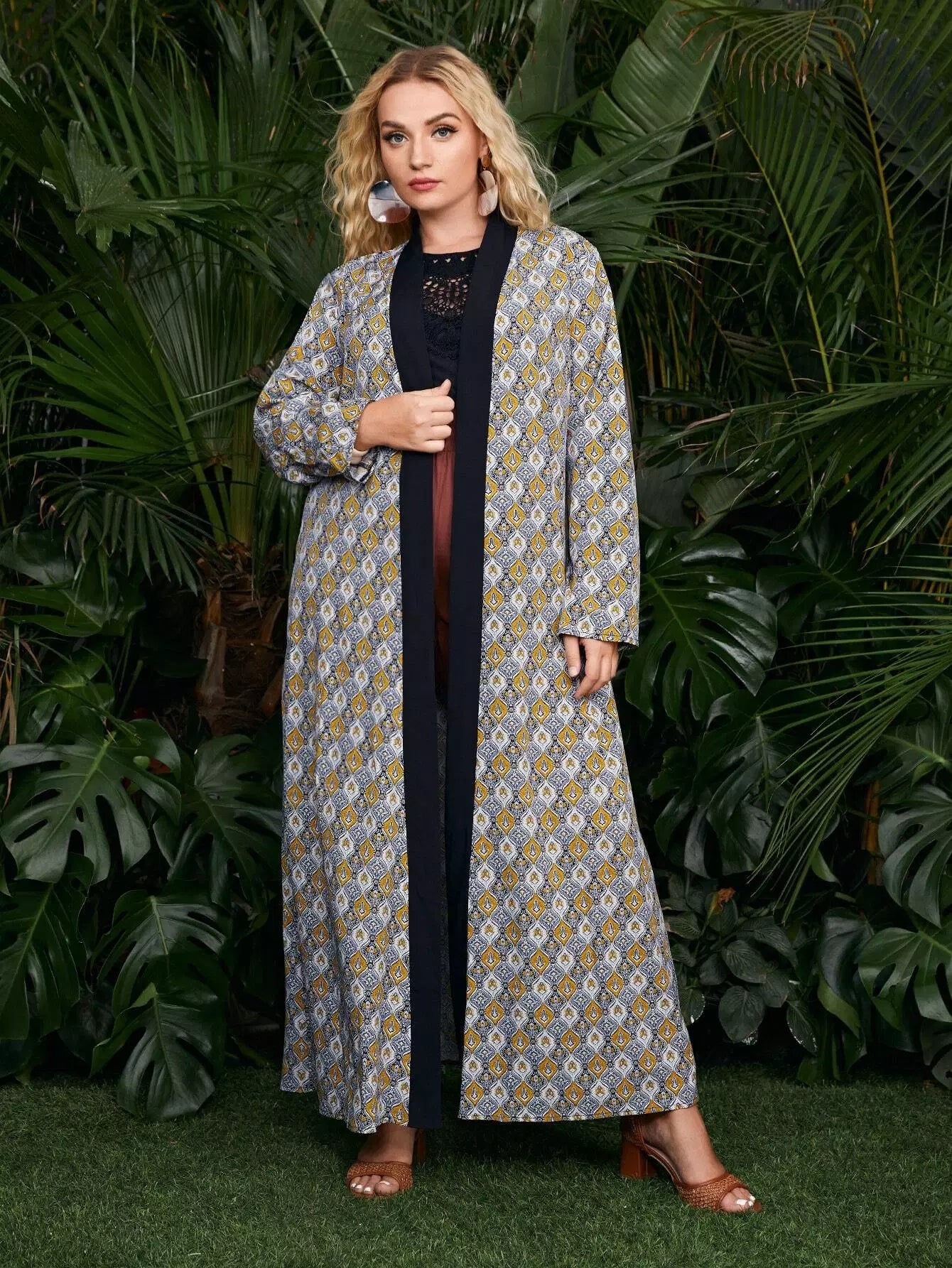 كيمونو بطبعة جيو مطبوع فوقها بالكامل
