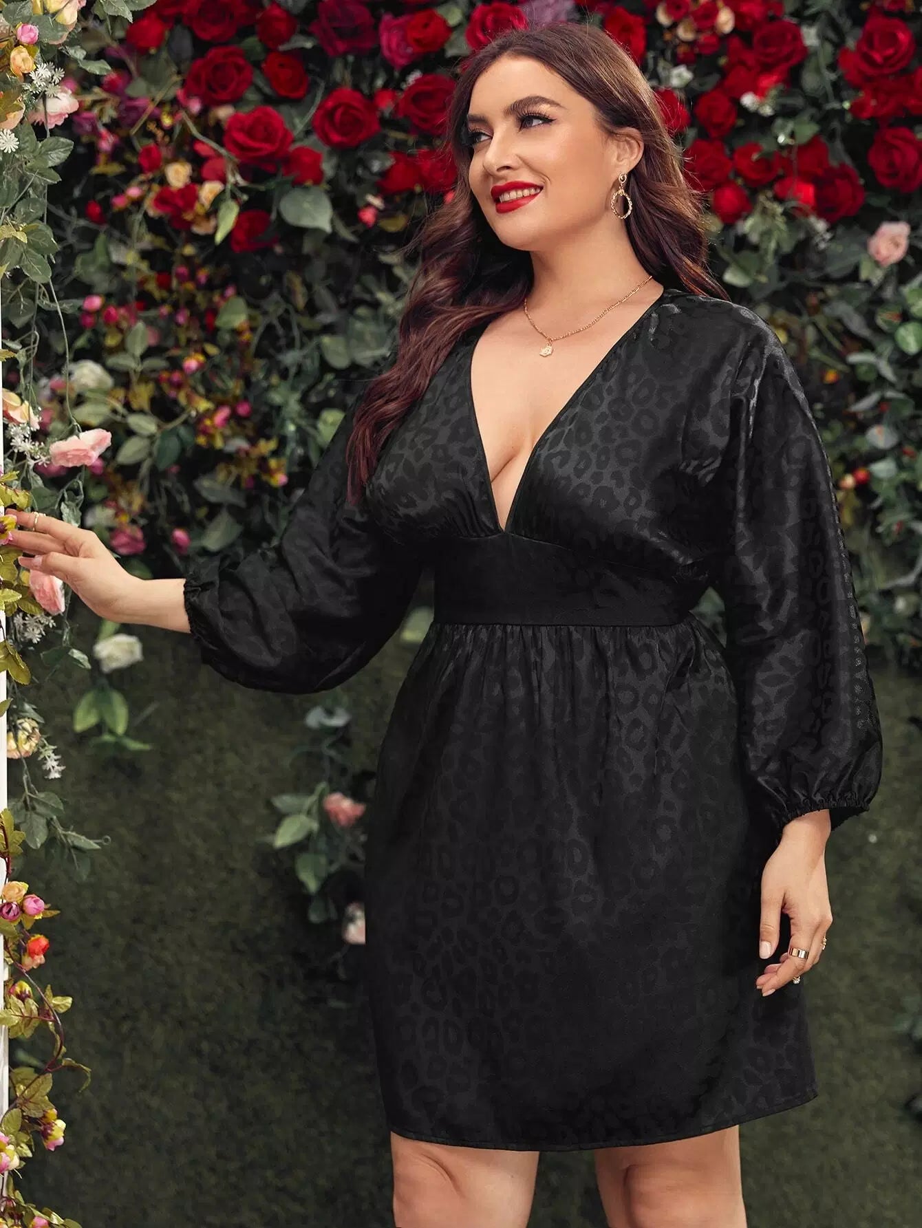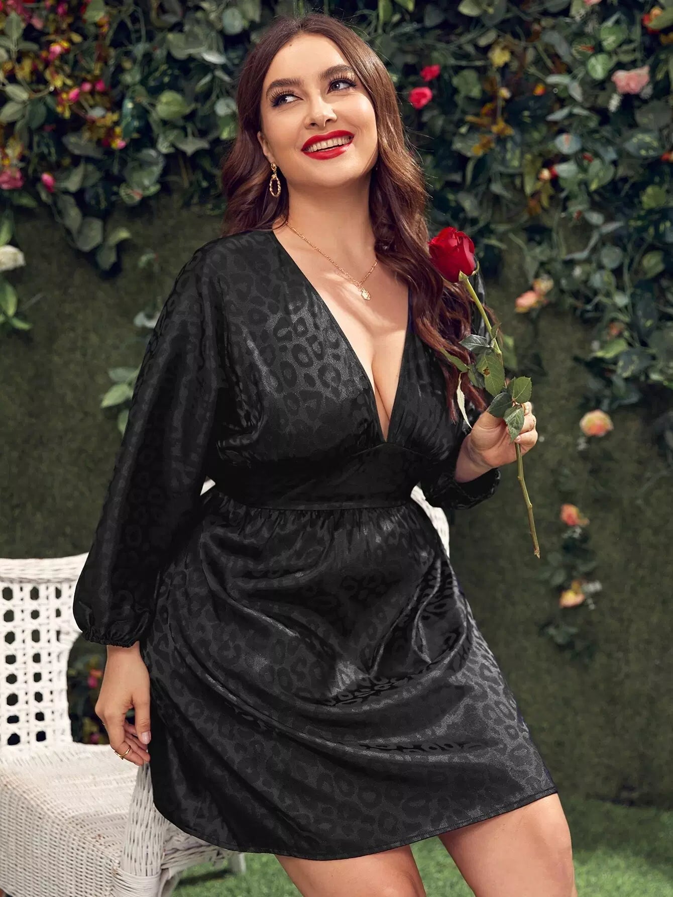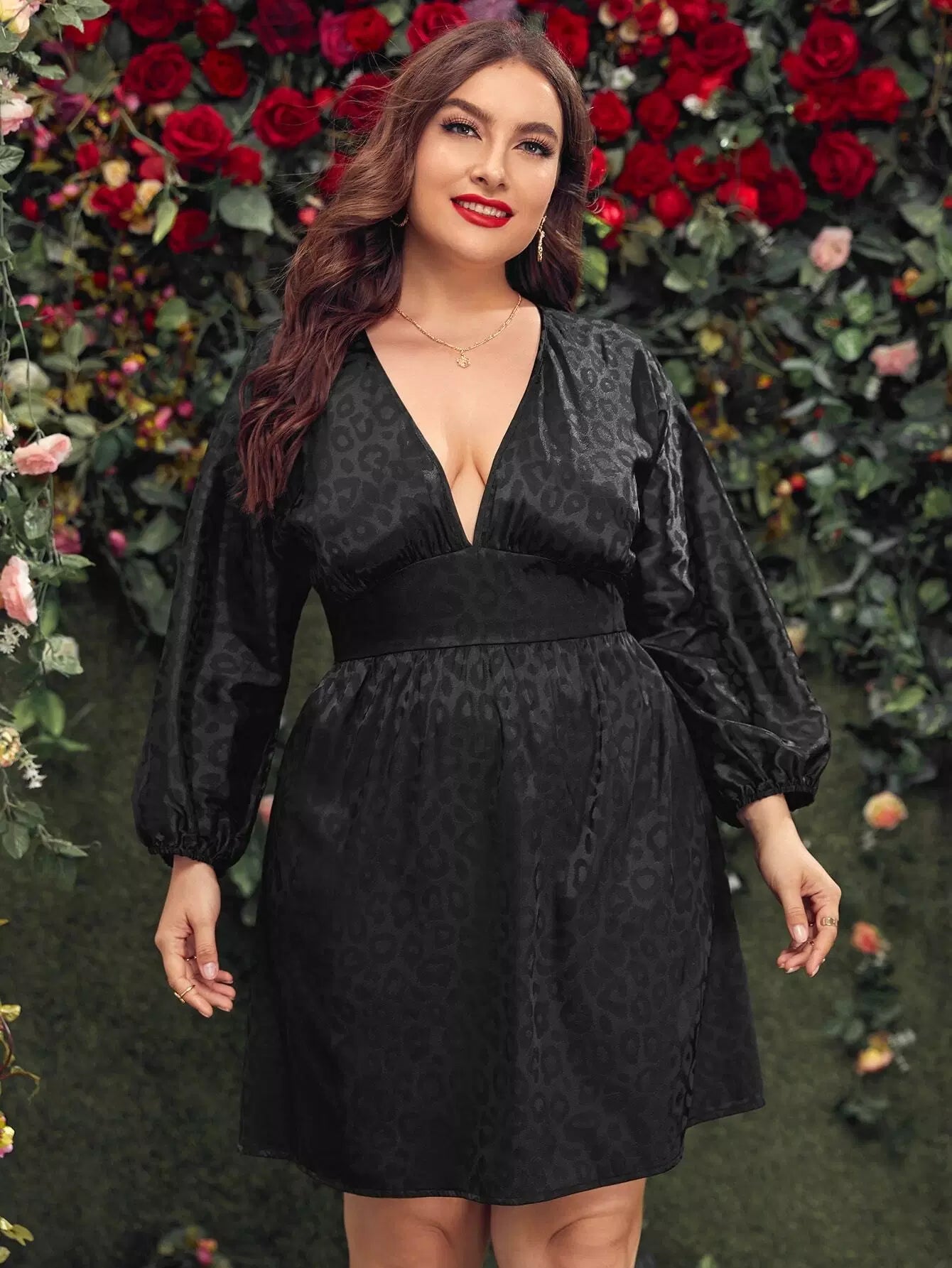 فستان مكشوف بنقشة زائد منسدل بالكامل