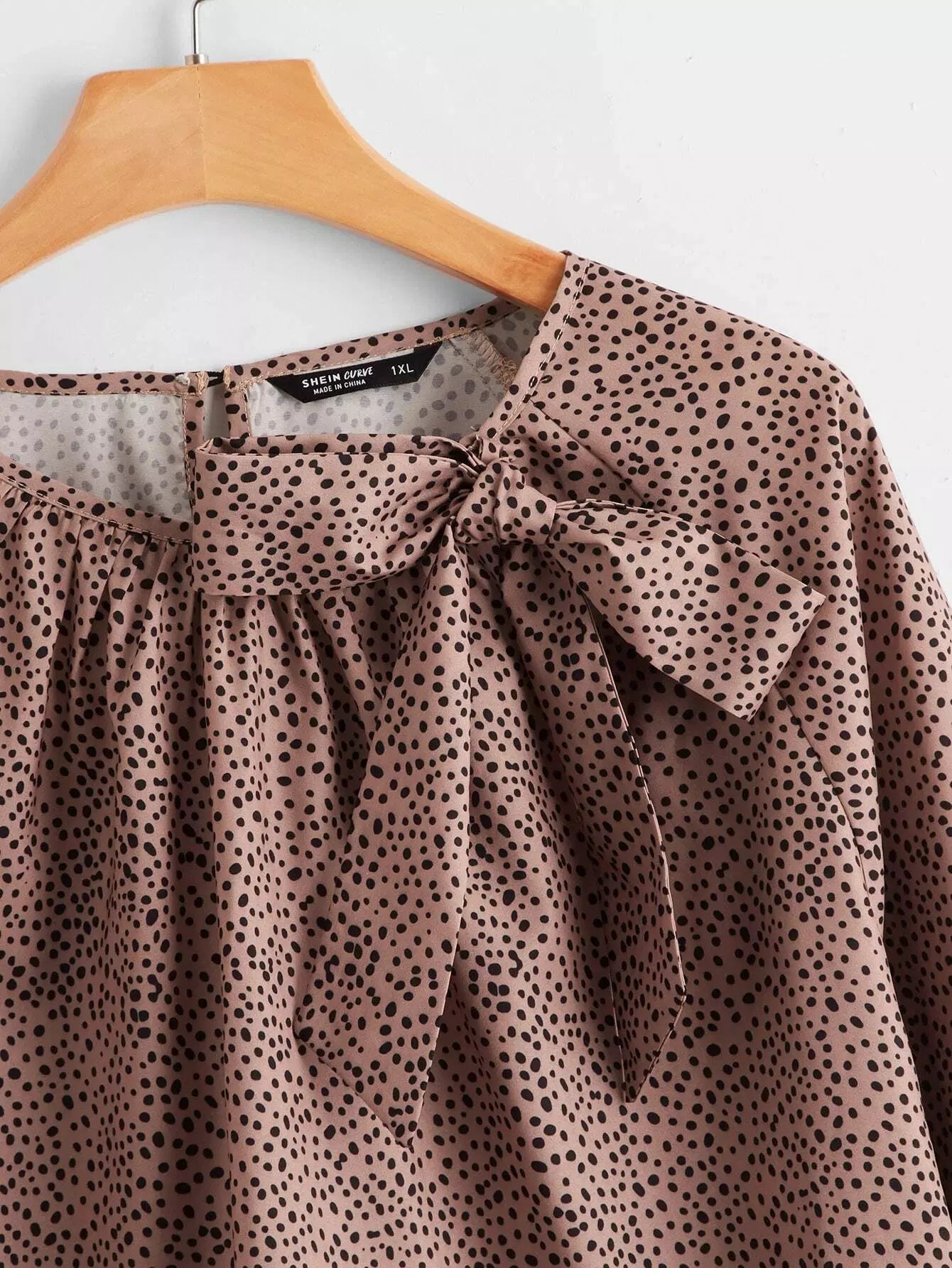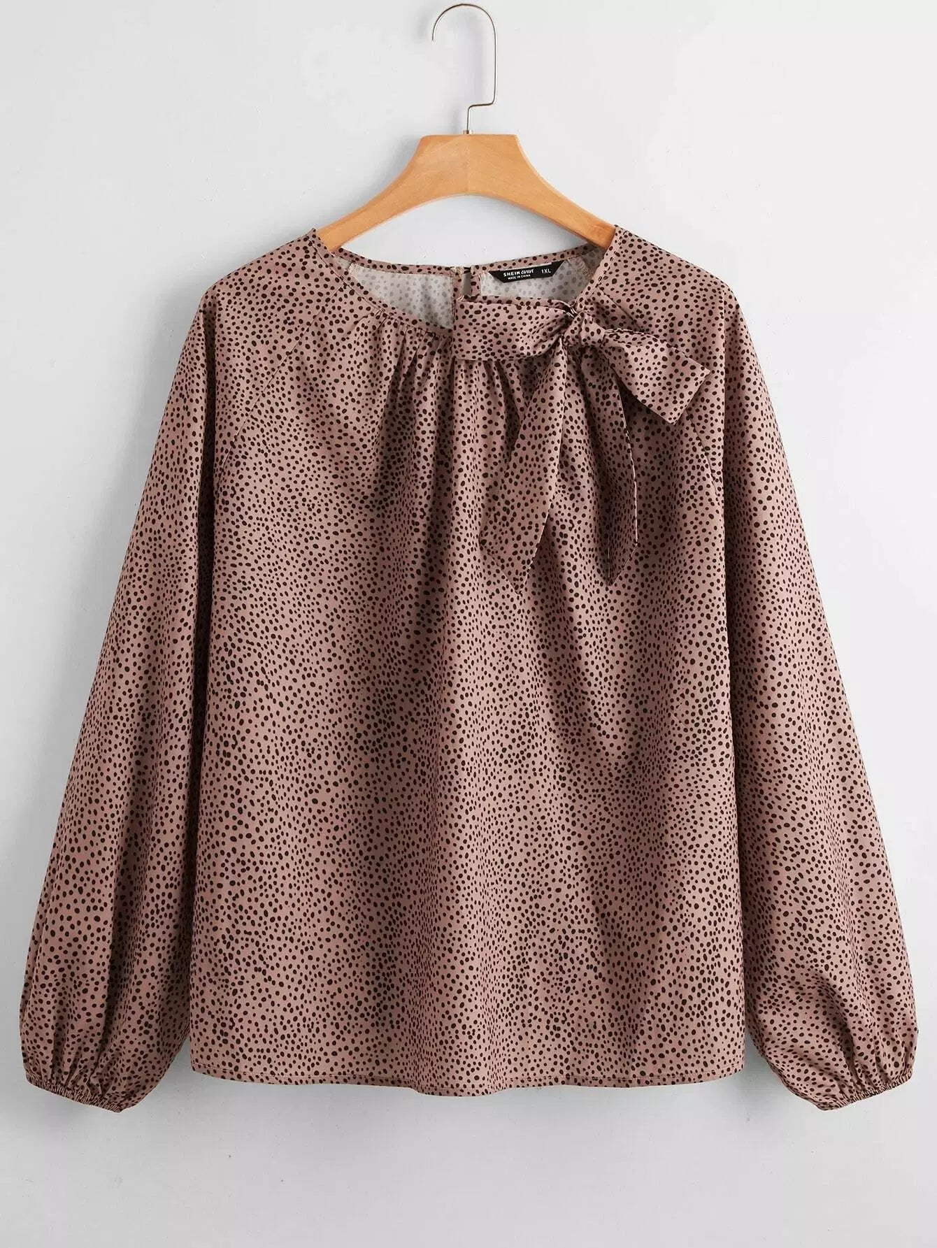 بلوزة مزينة بطبعة على شكل عقدة أمامية مطبوعة بالكامل