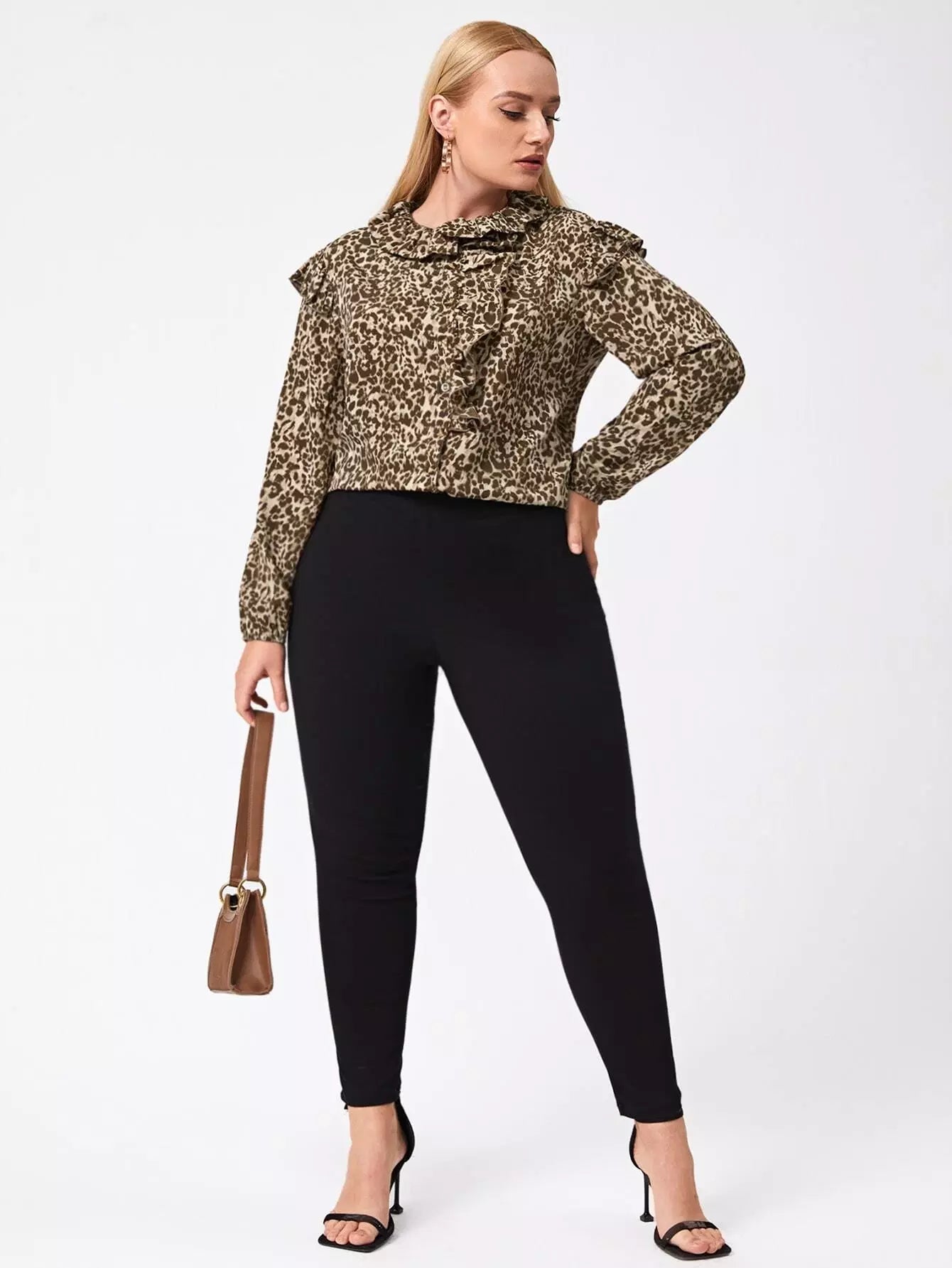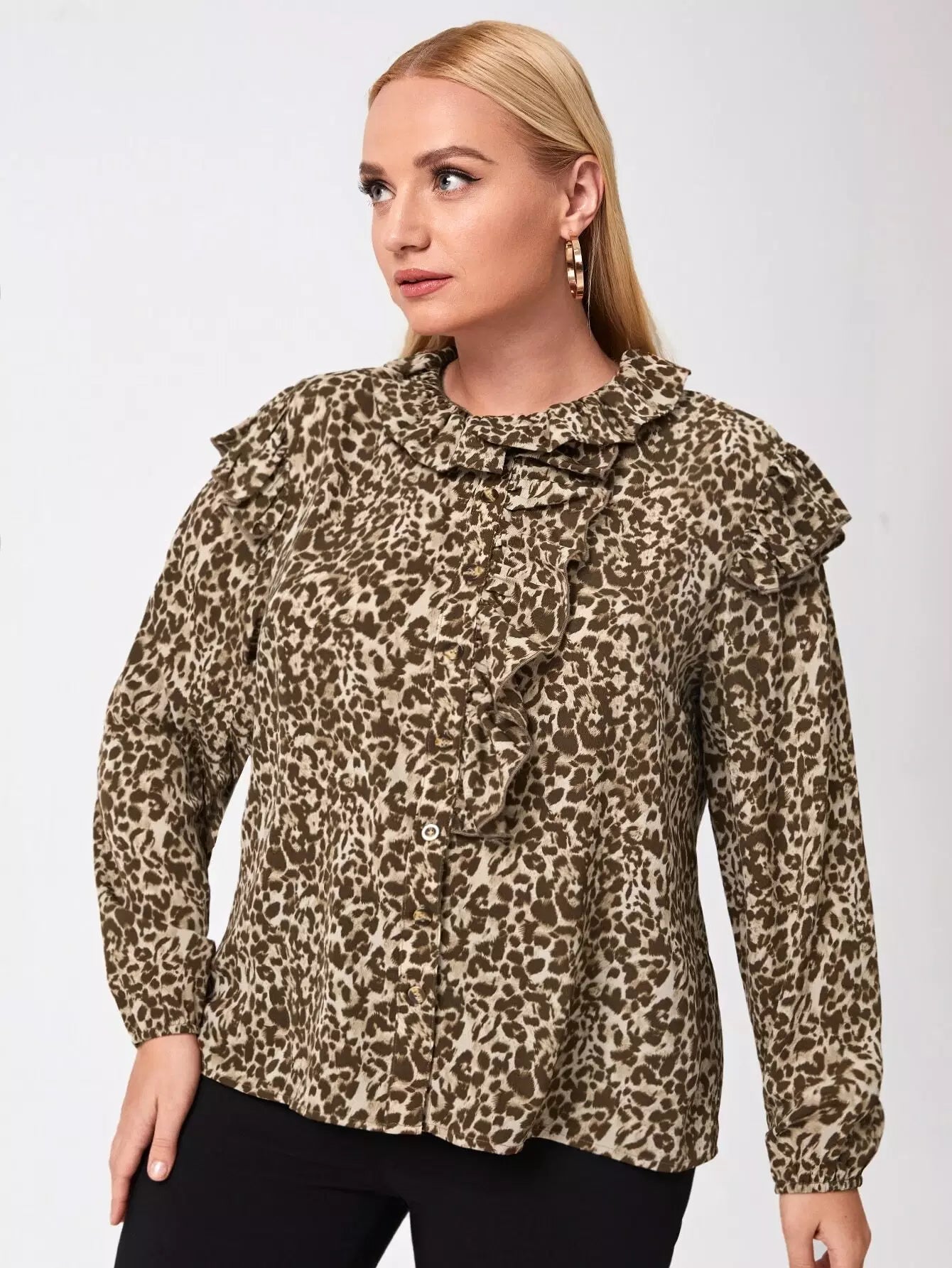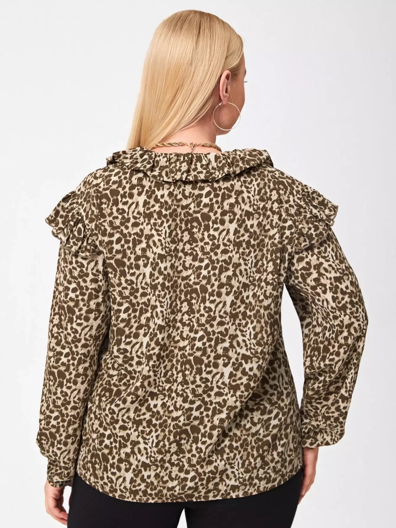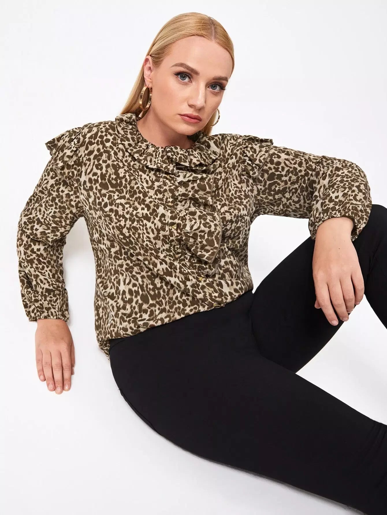 نحيف - مقاس كبير كل انحاء الطباعة كشكش تقليم بلوزة