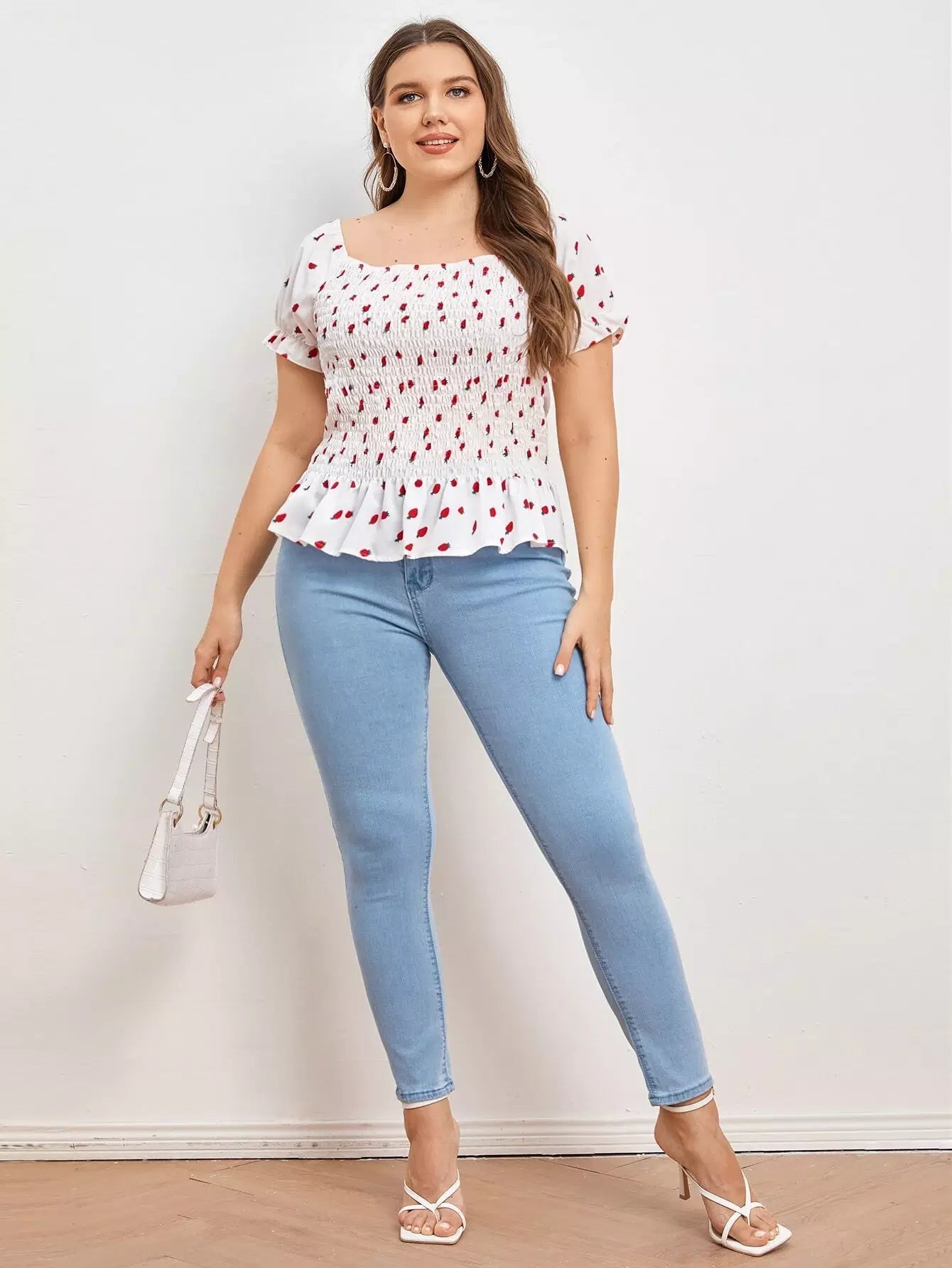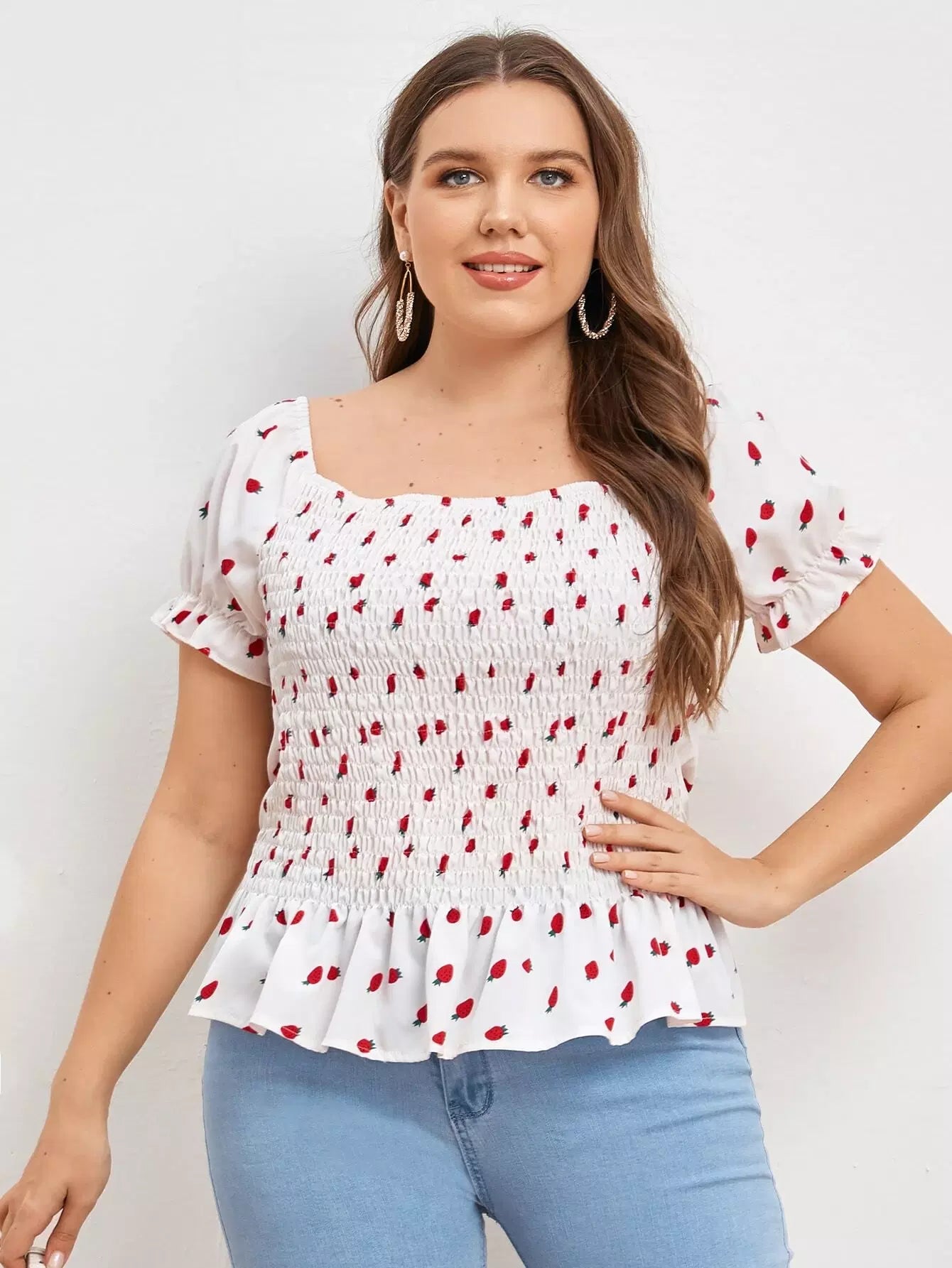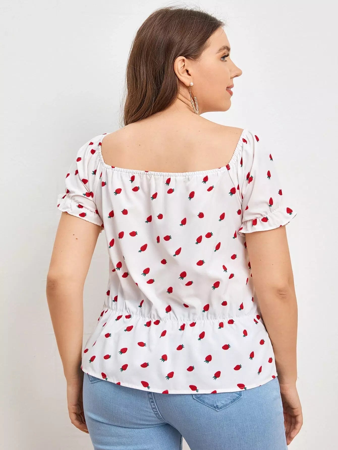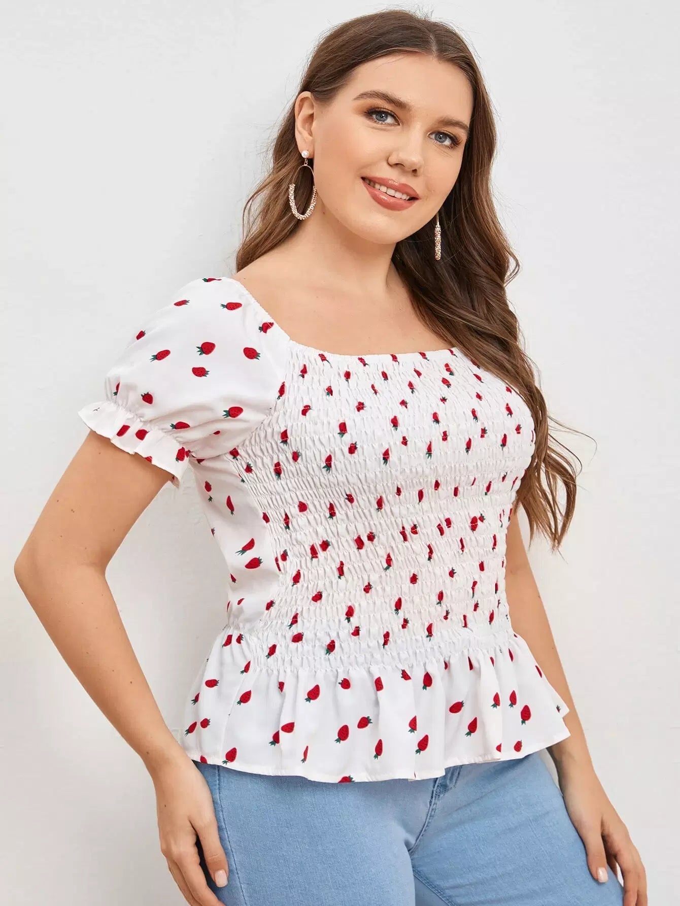 نحيف - مقاس كبير كل انحاء الفراولة Shirred Milkmaid بلوزة