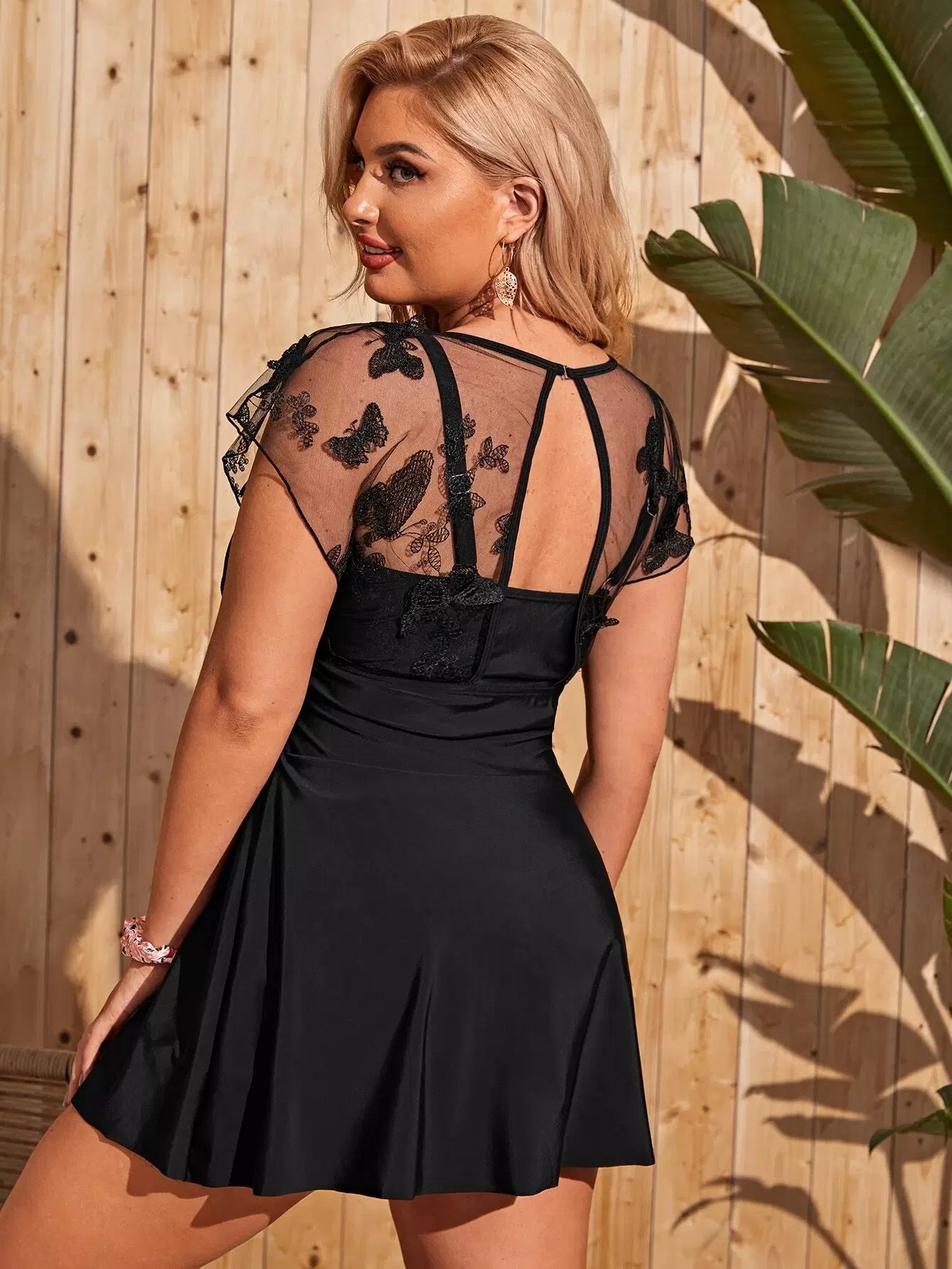 بدلة سباحة بيكيني بيكيني شبكي بلس بتطريزات بلس بلس