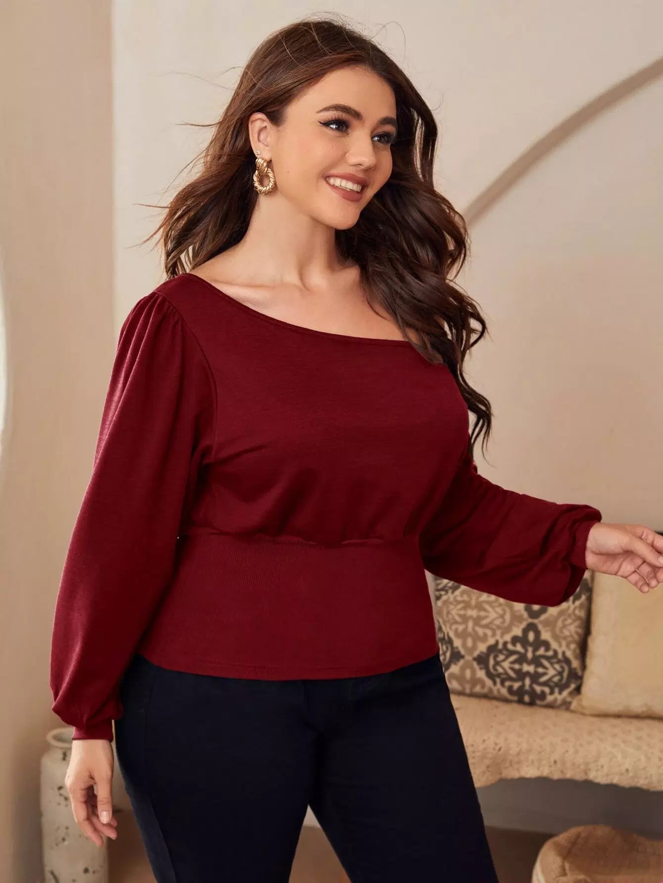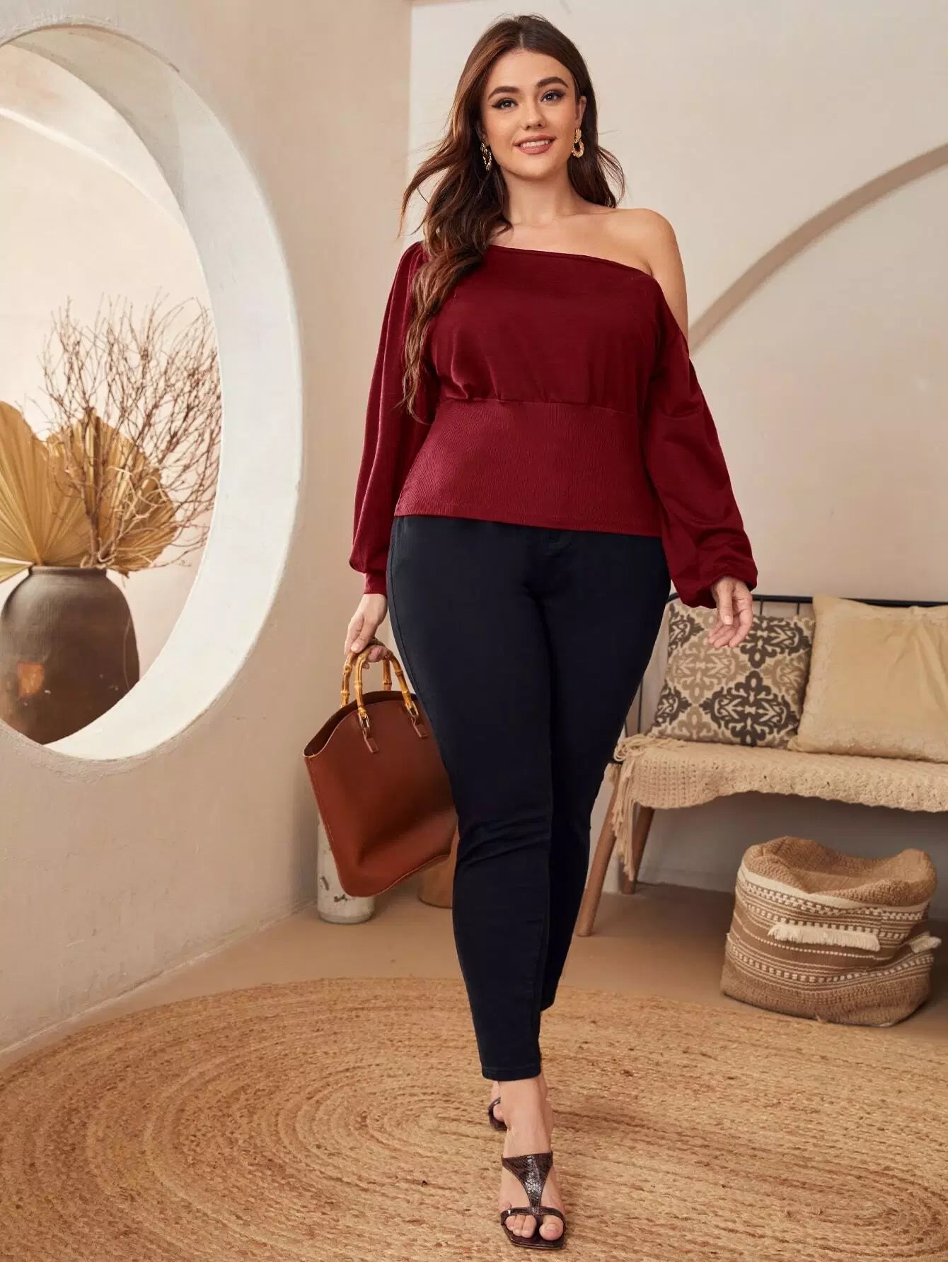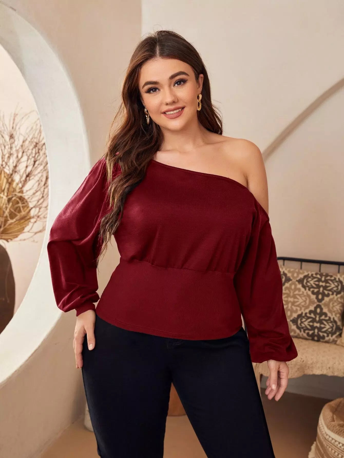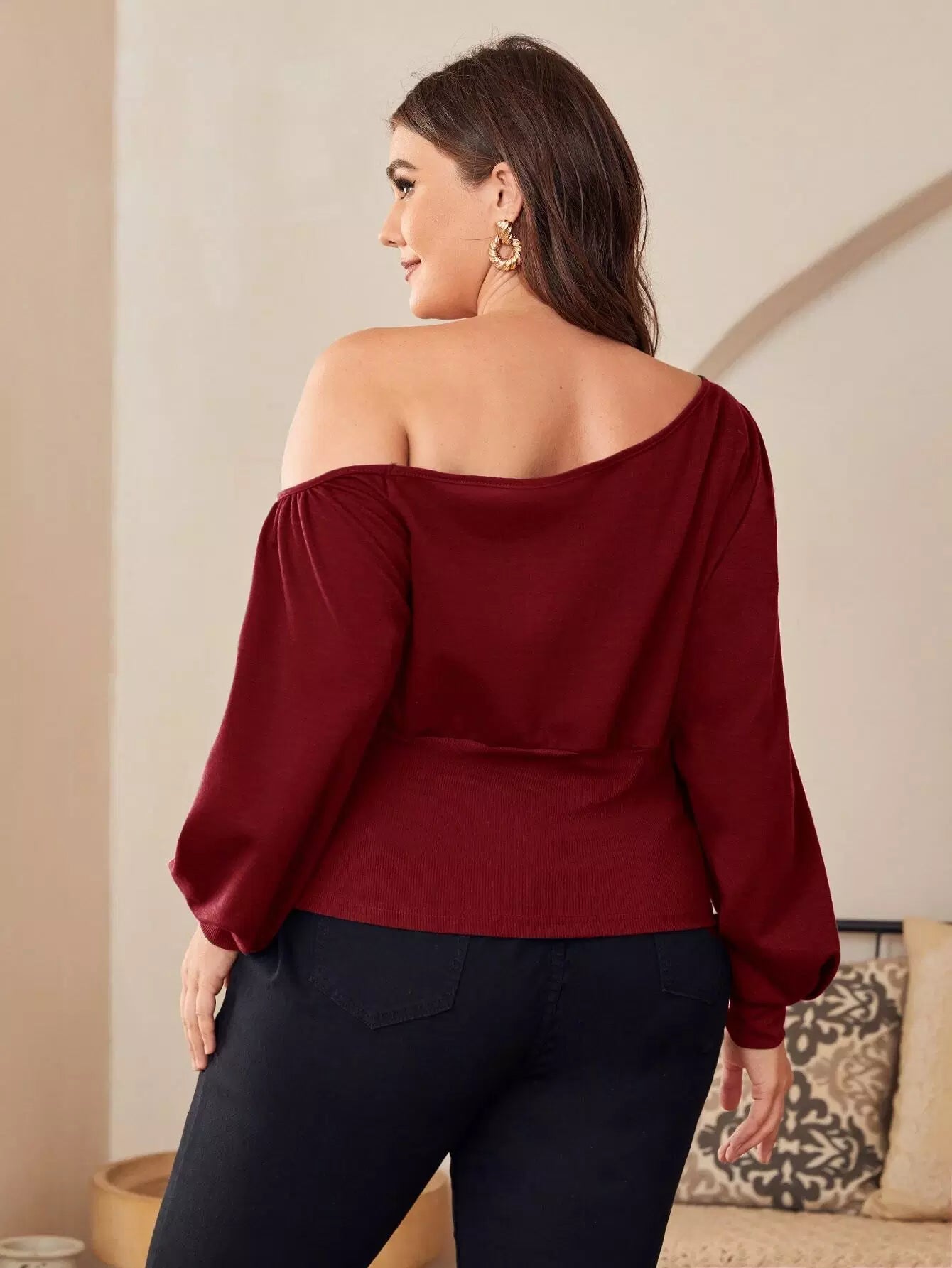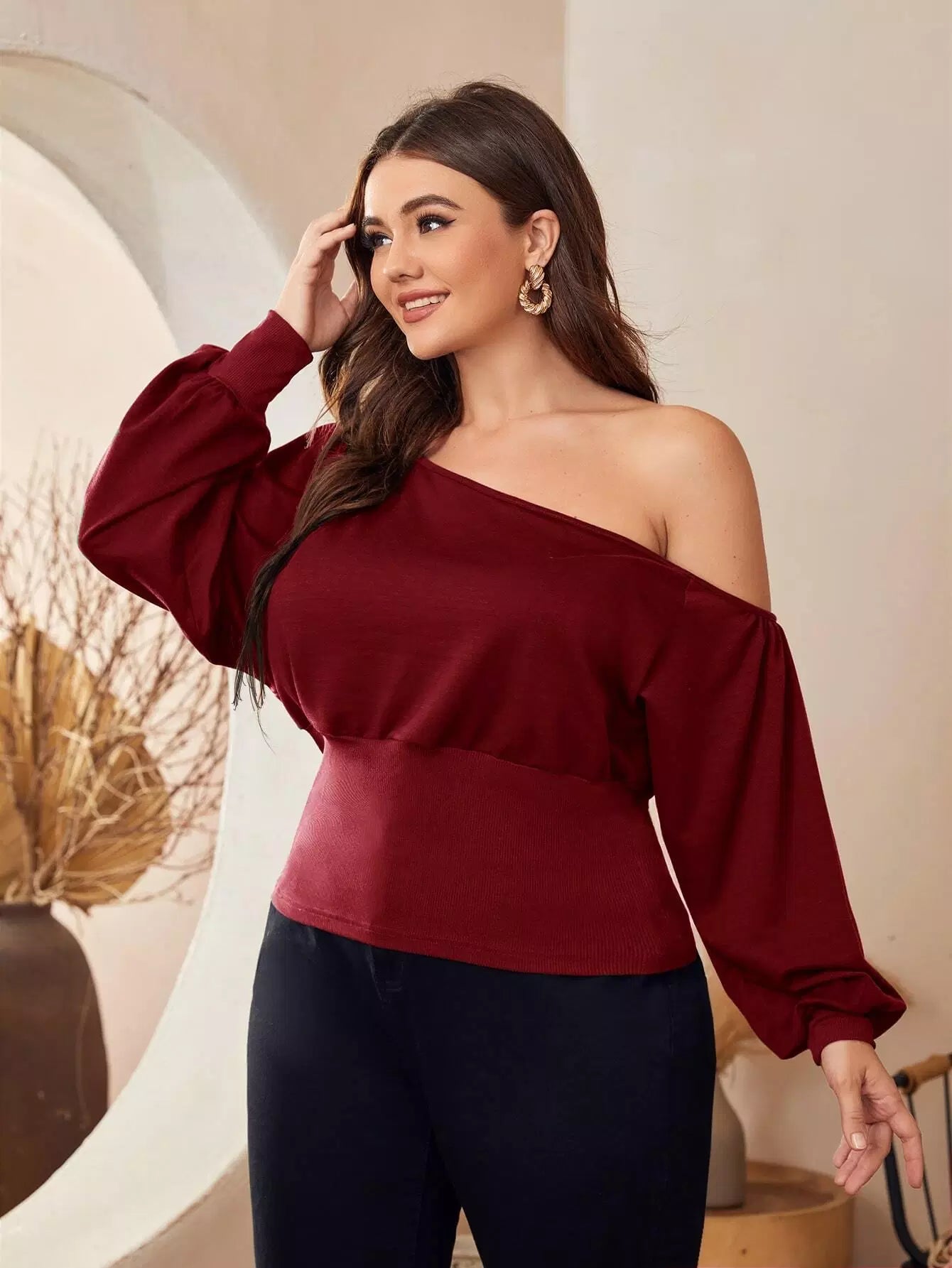 نحيف - مقاس كبير غير متناظرة الرقبة فانوس الأكمام السترة