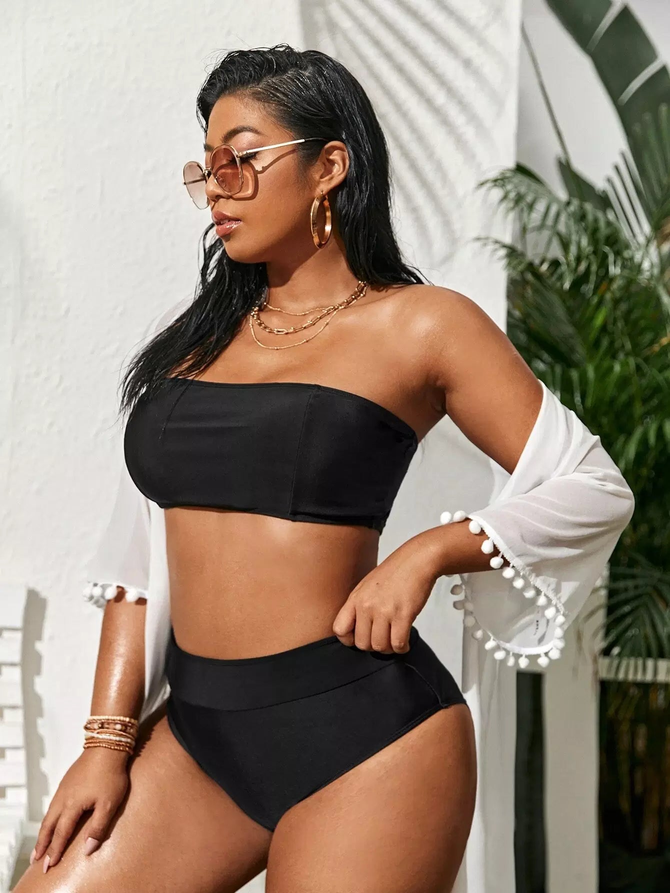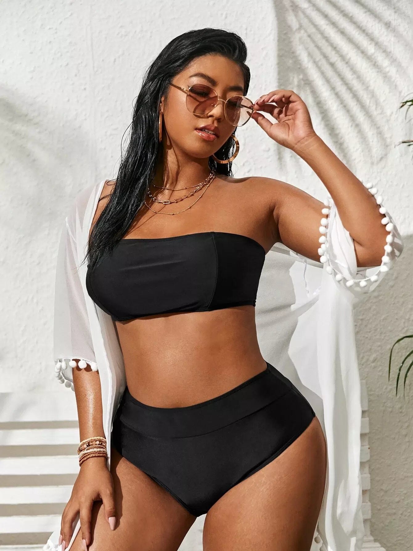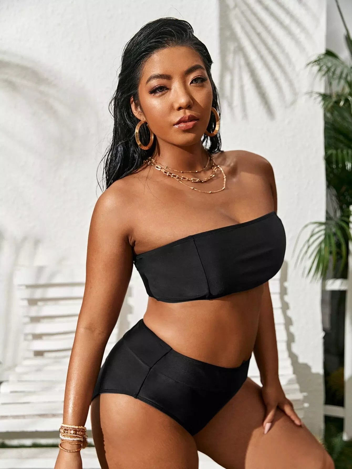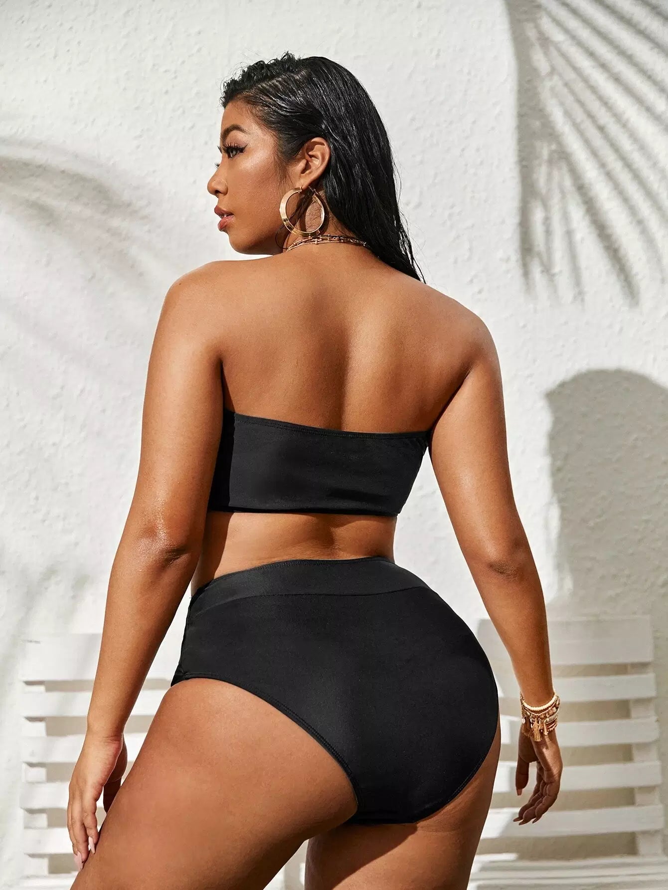 بدلة سباحة بيكيني عالي الخصر بعصابة زائد