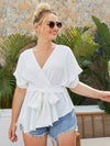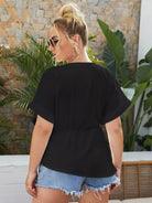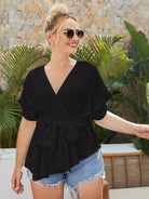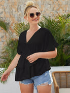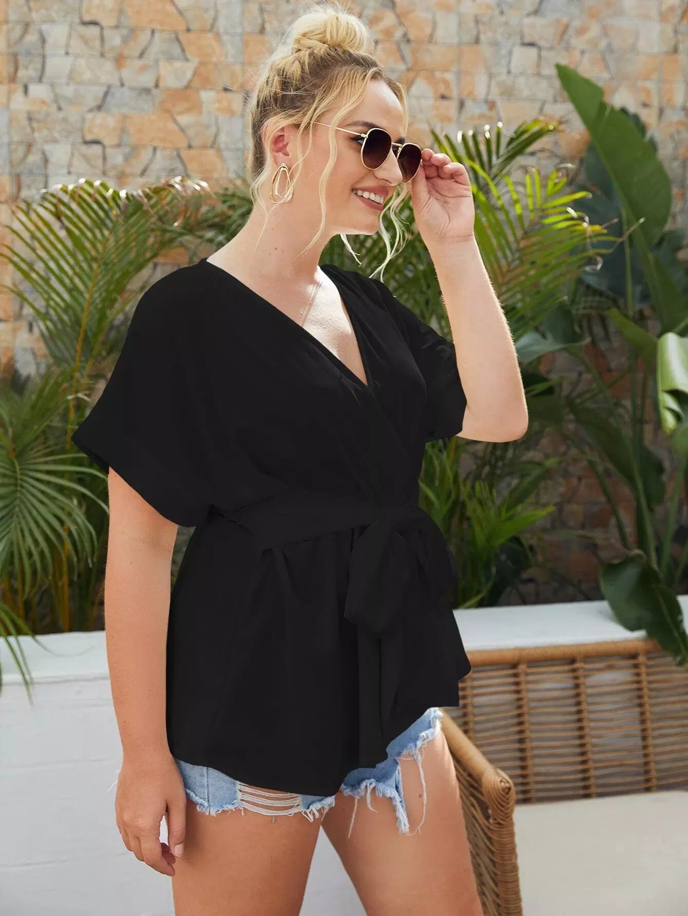 بالإضافة إلى بلوزة بحاشية غير متماثلة بأكمام جناح الخفاش بدون حزام