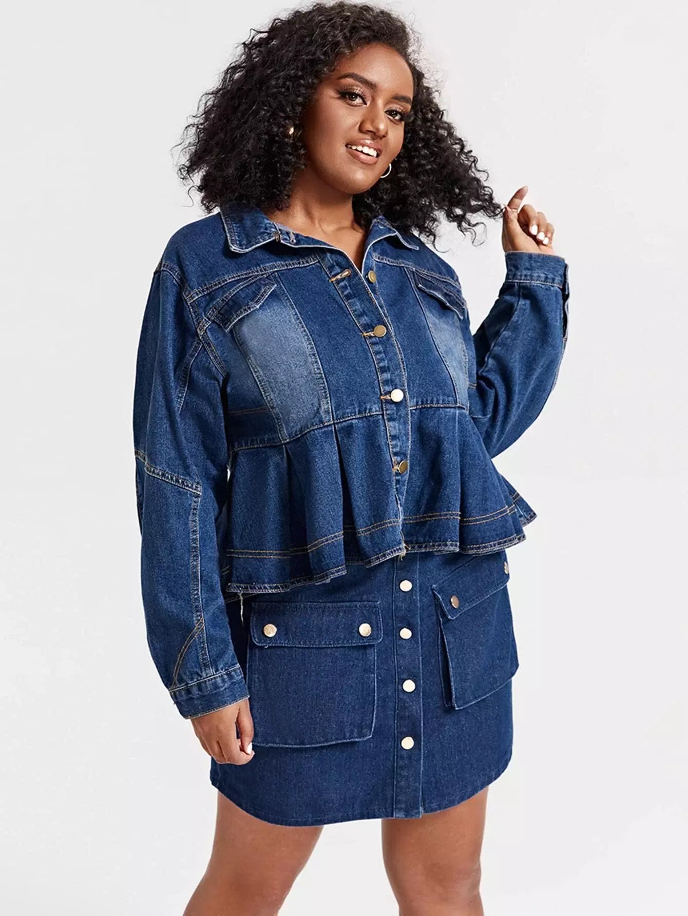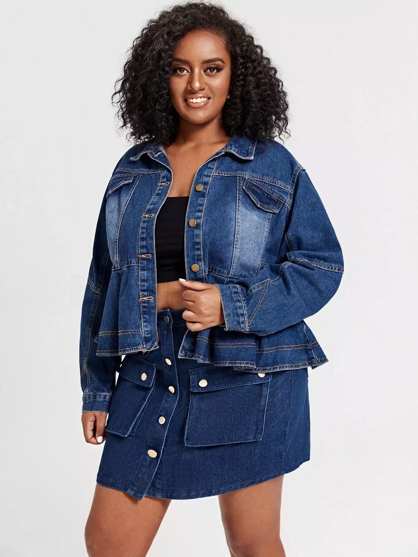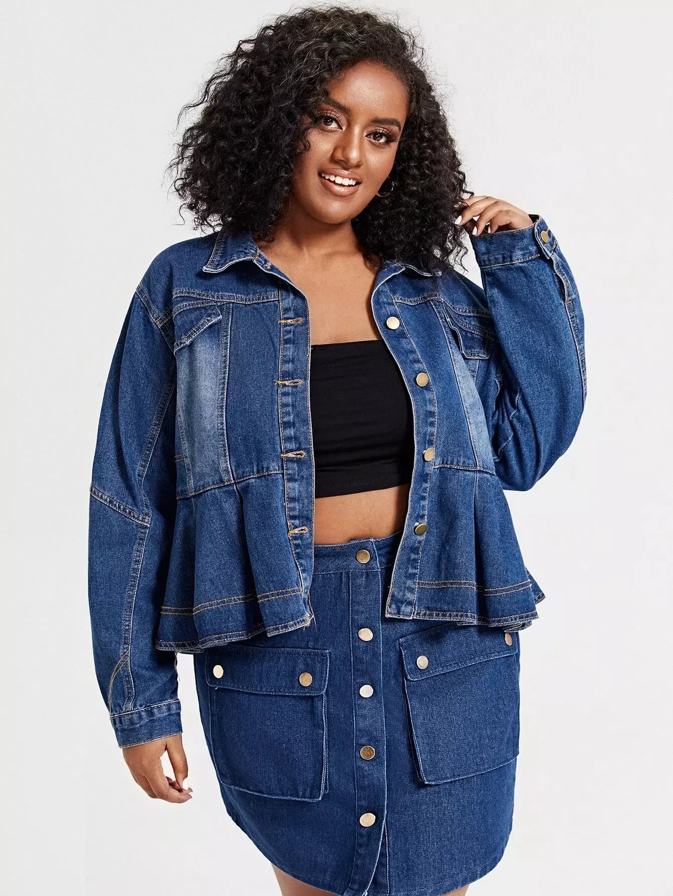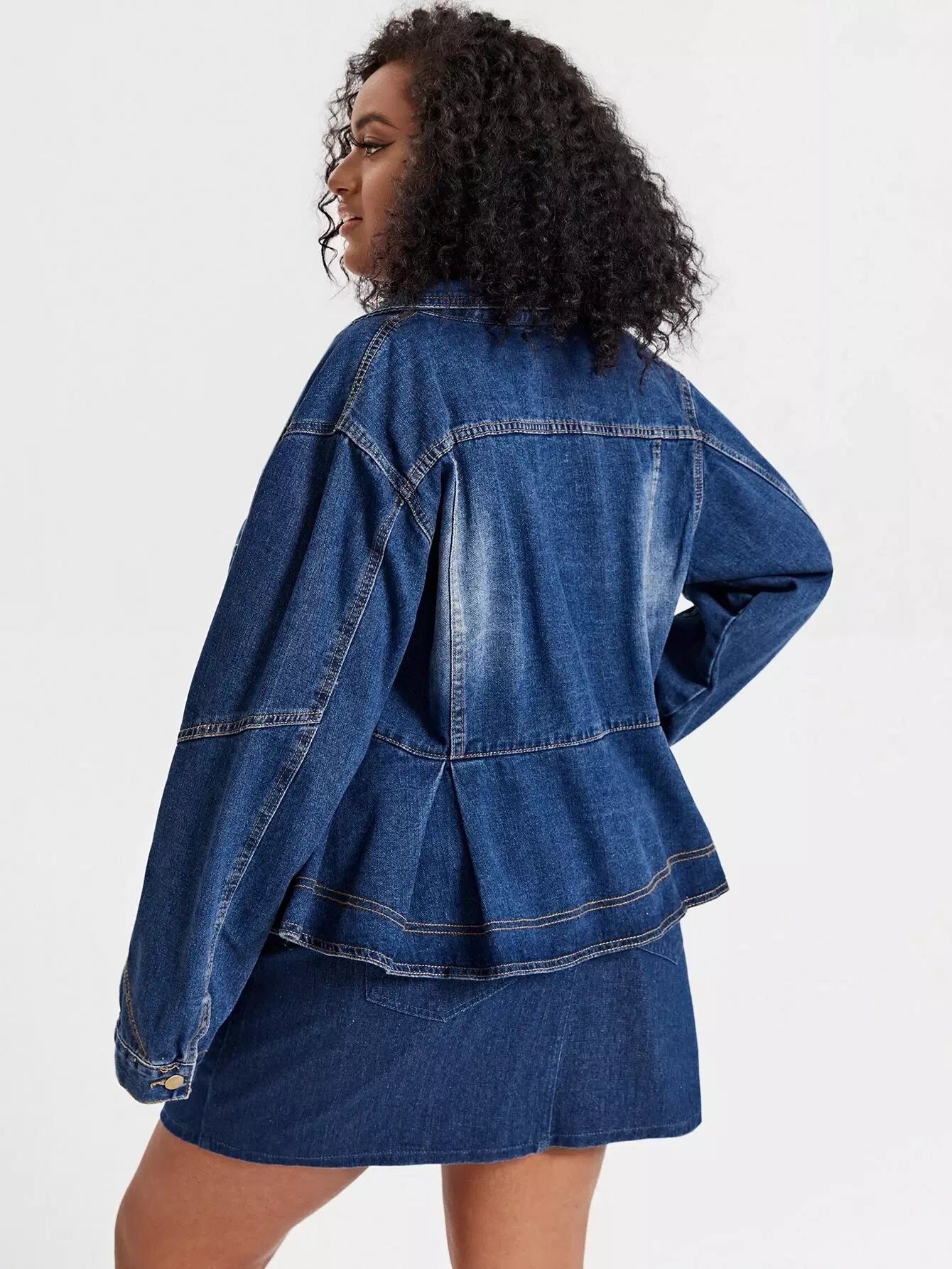 جاكيت دنيم مطوي بحاشية مطوية مطوية بلس غسيل مبيض