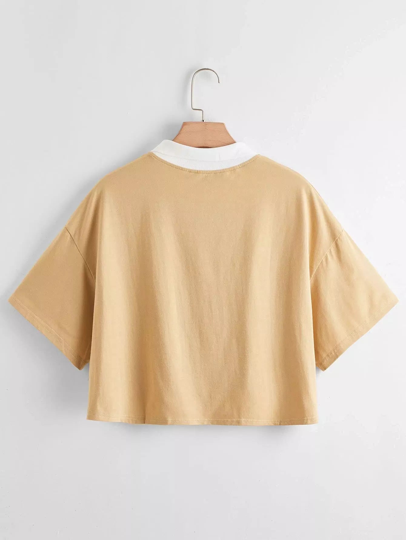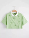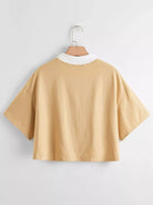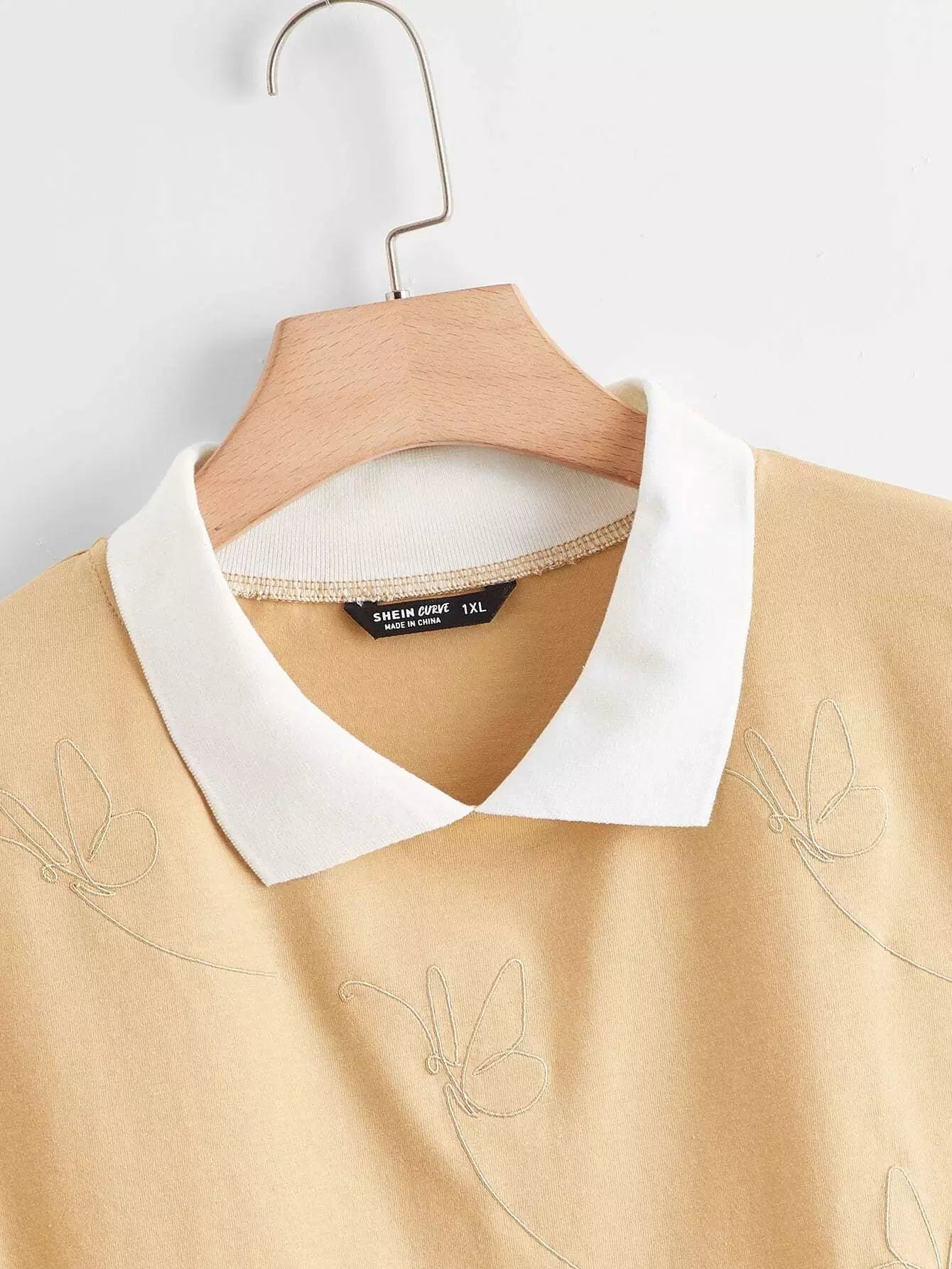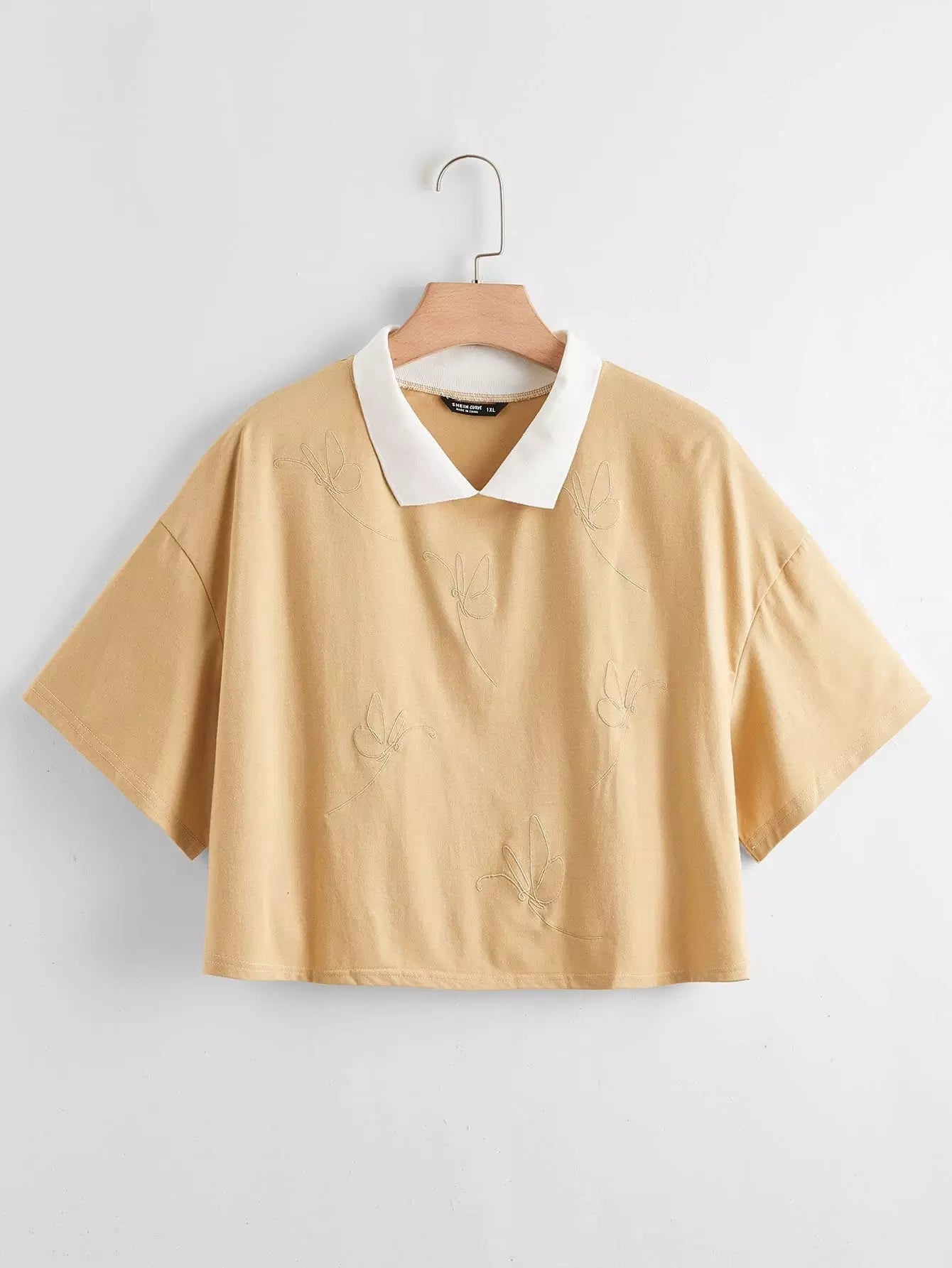 تي شيرت بتطريز فراشة زائد بياقة بلون مغاير