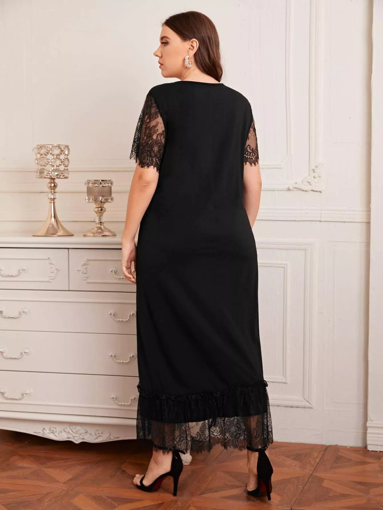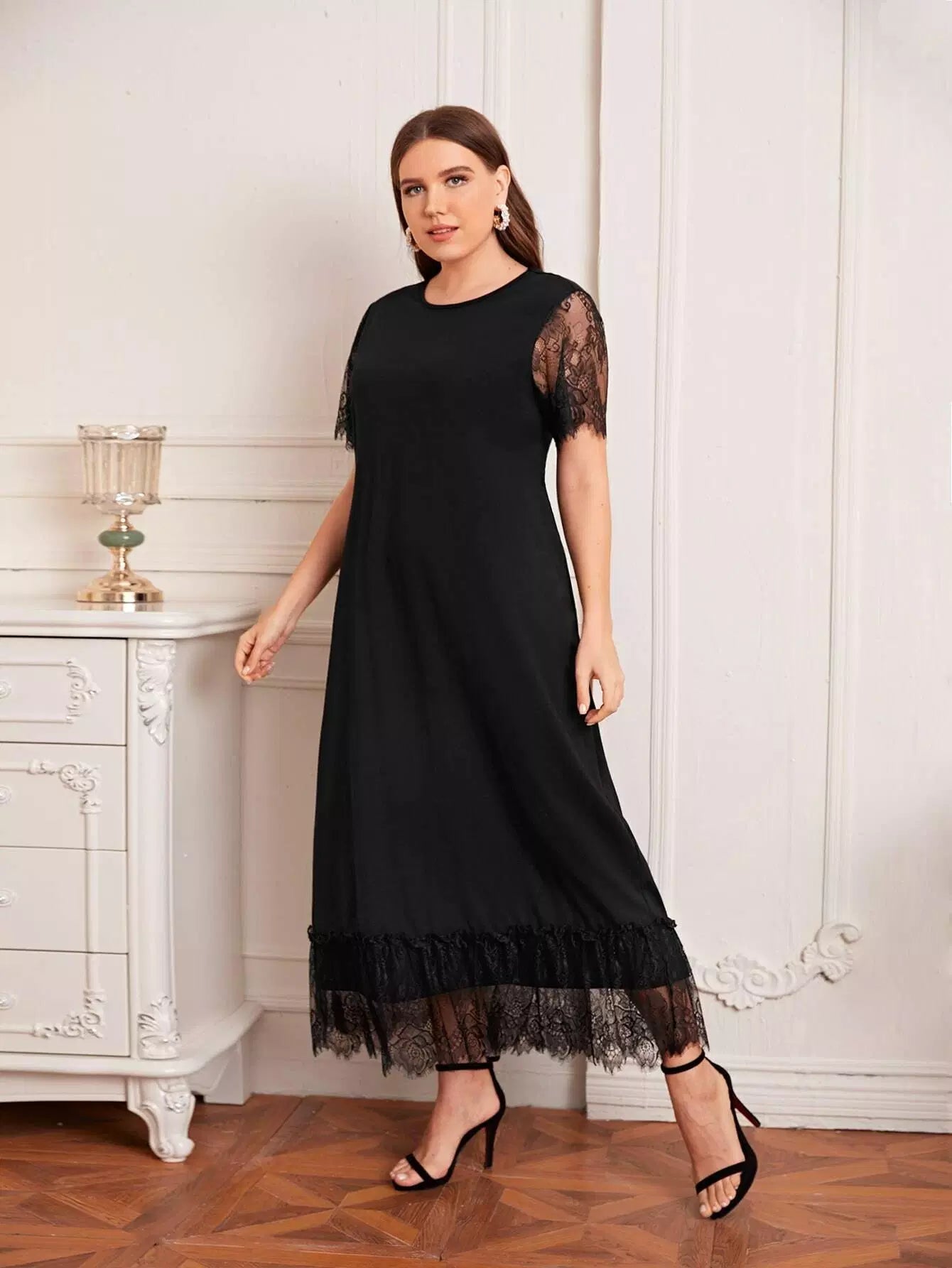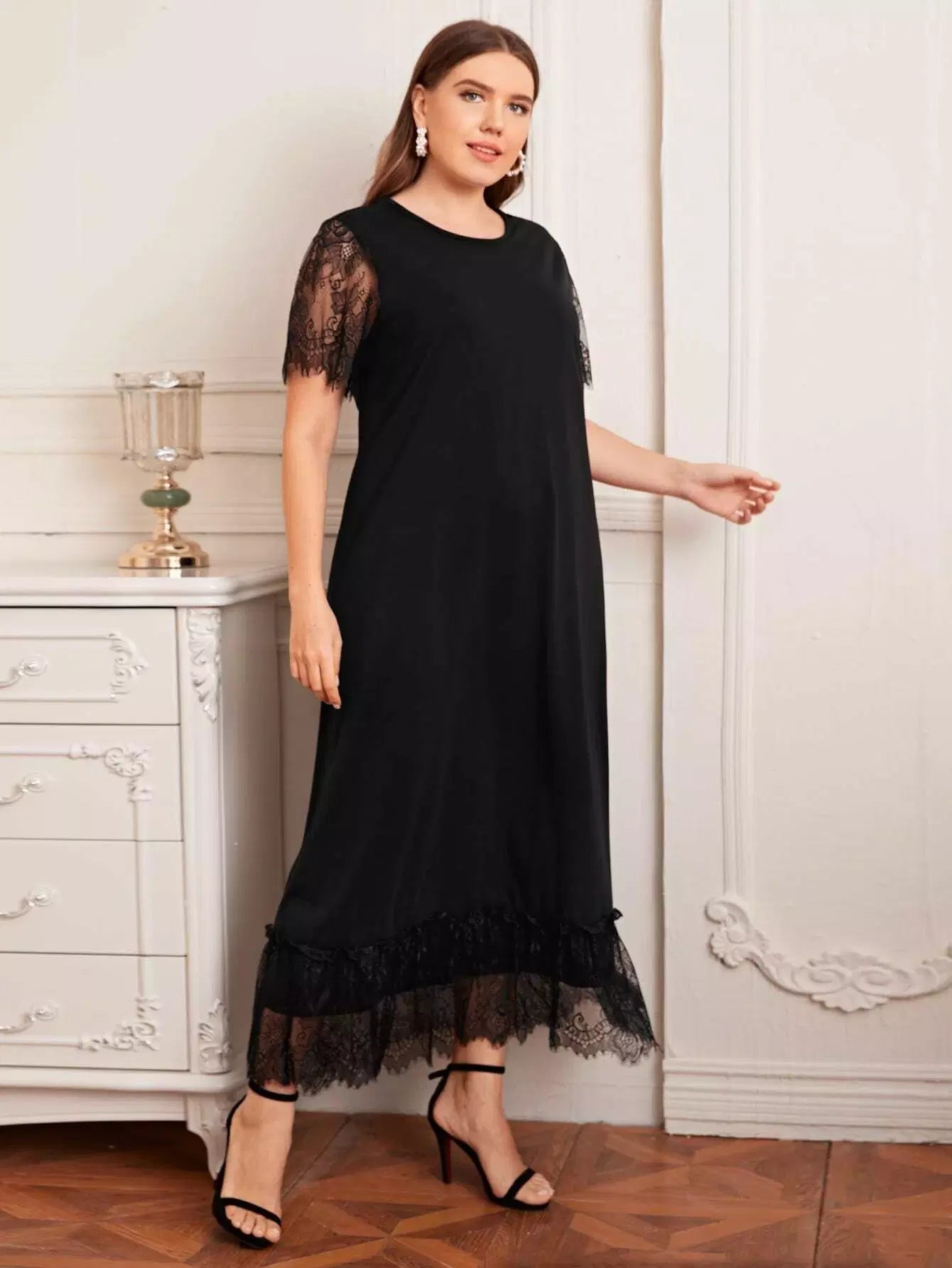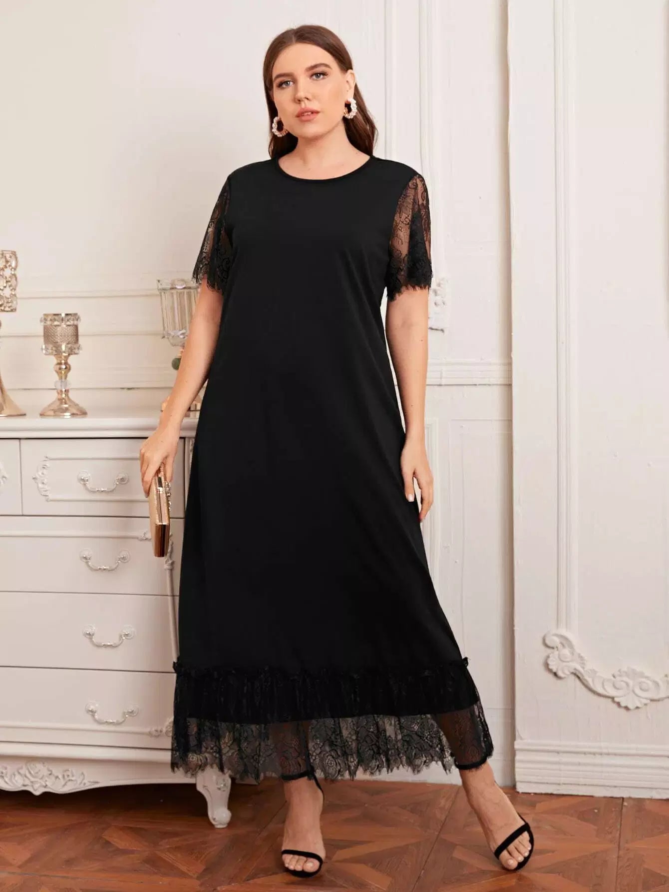 فستان بأكمام فراشة زائد بتفاصيل الدانتيل