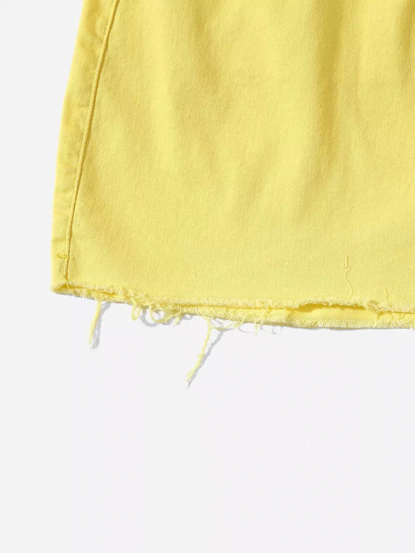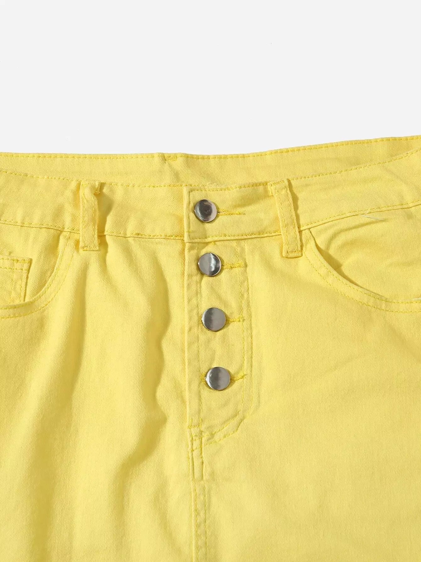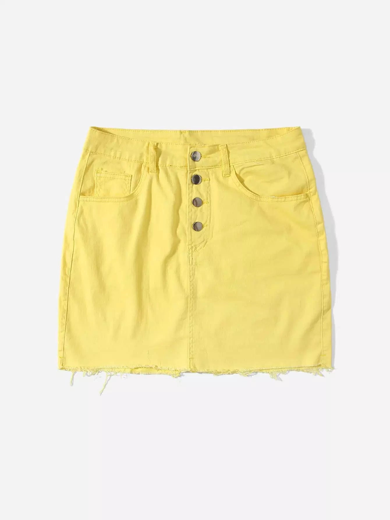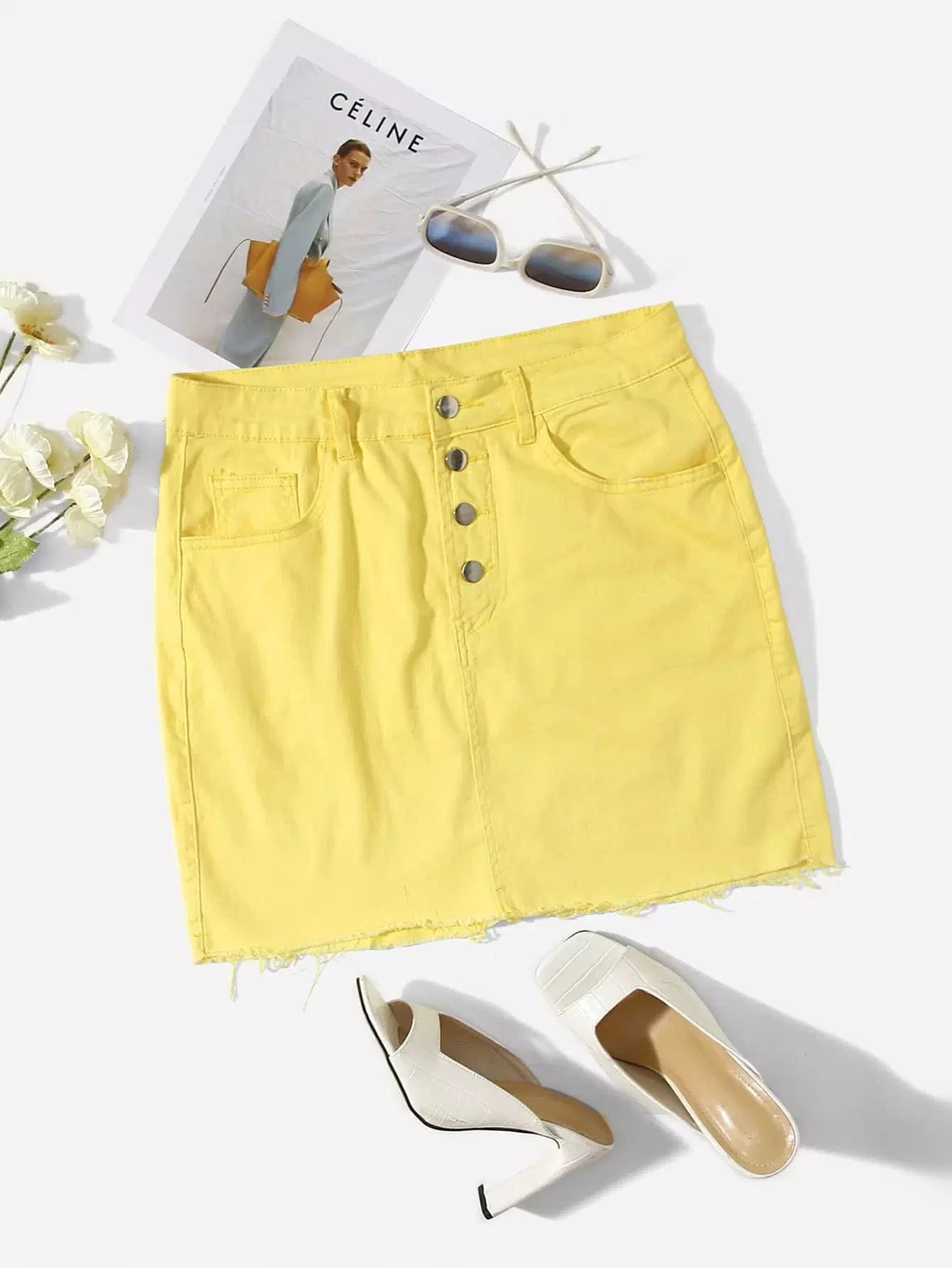 تنورة دنيم بأزرار زائد بحاشية خفيفة، من الدنيم الخام