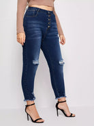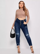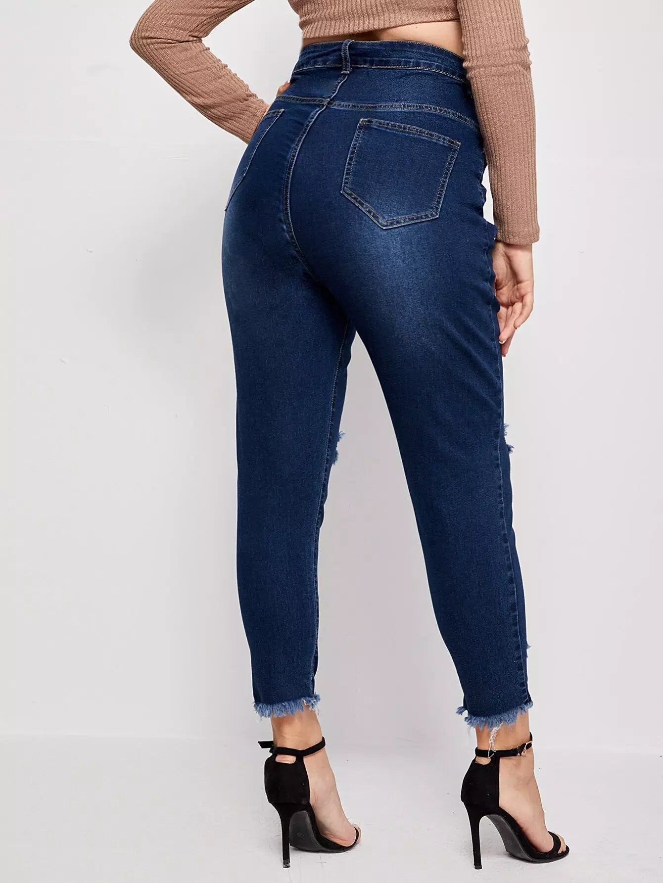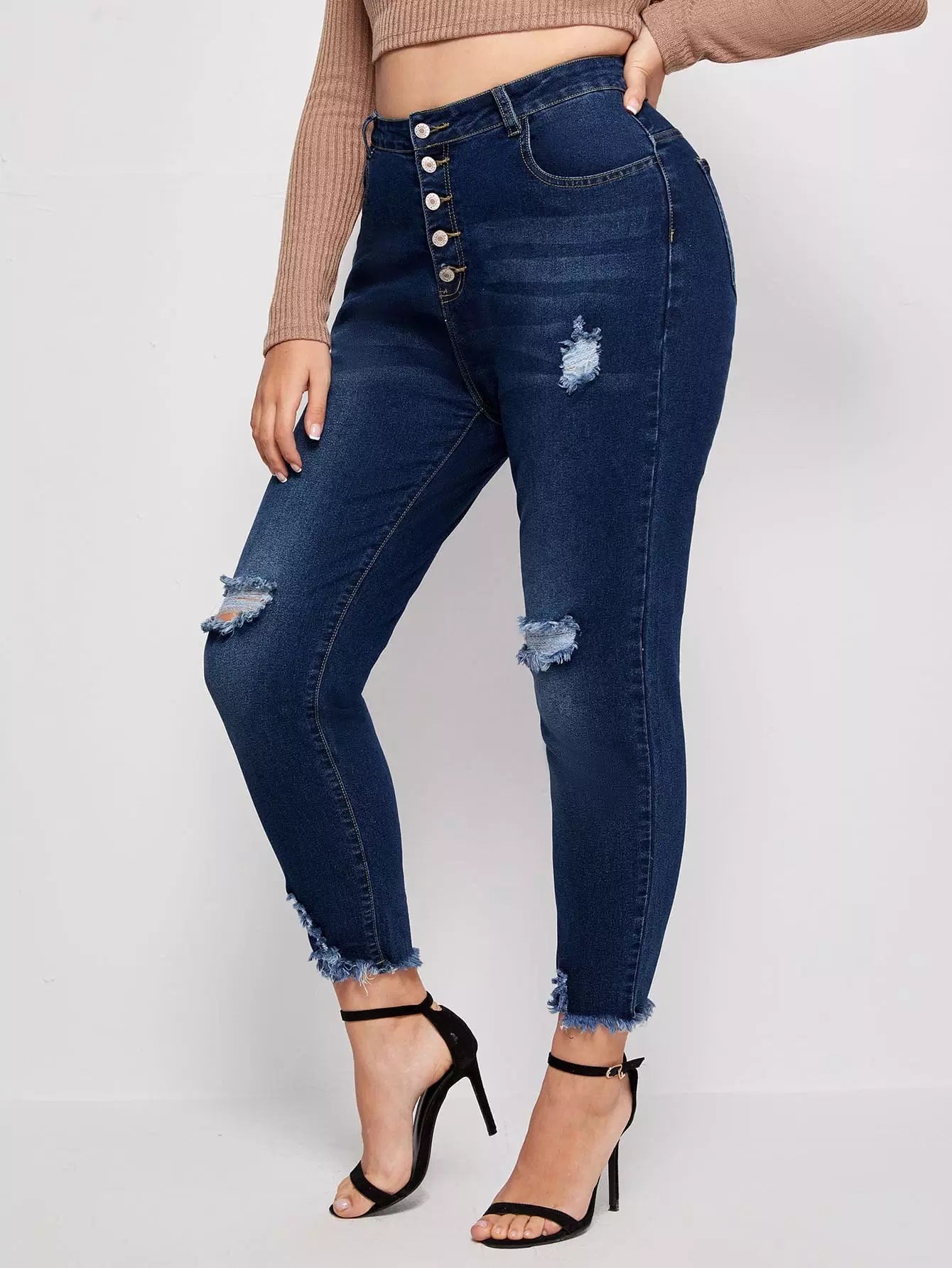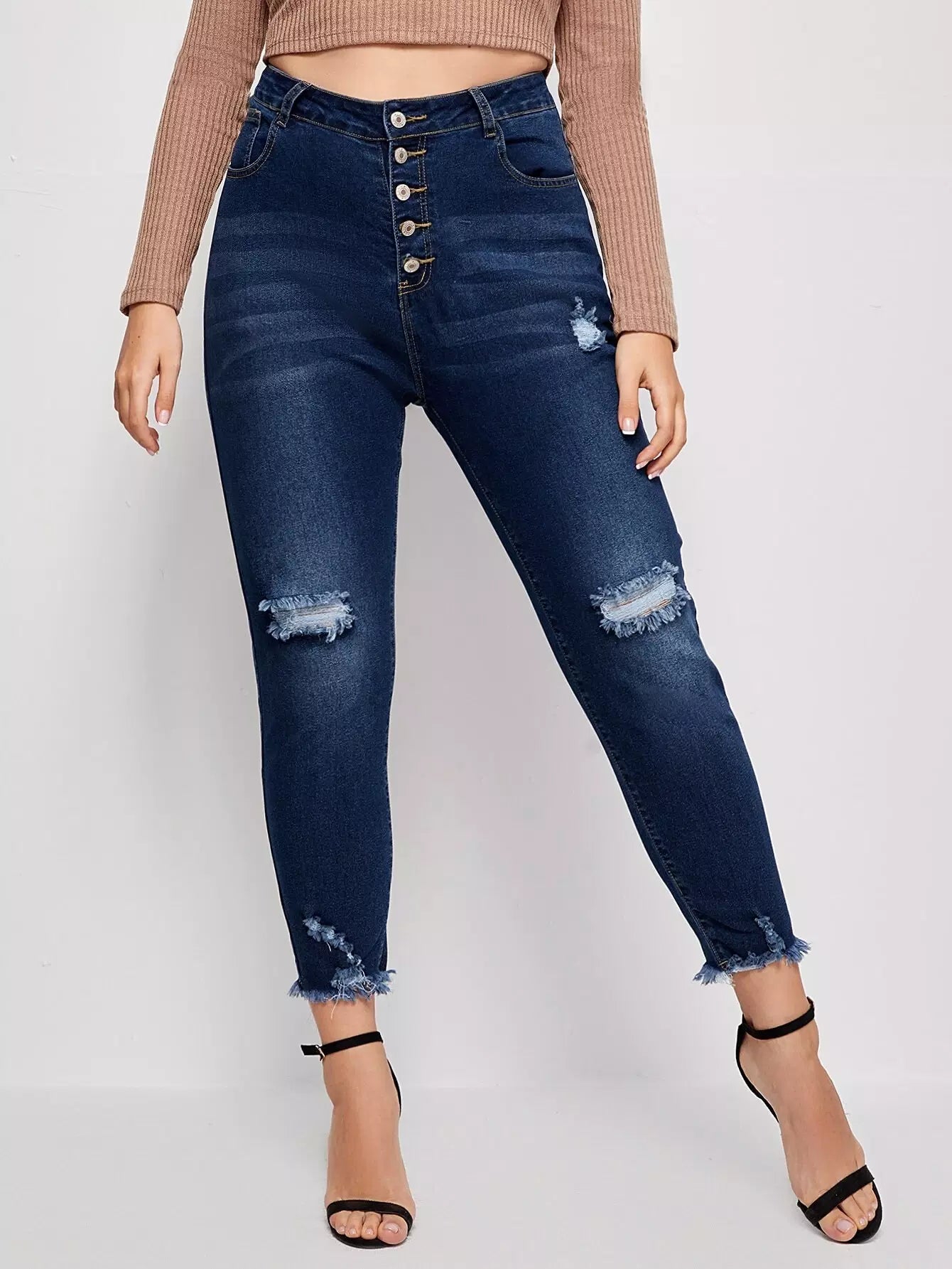بنطلون جينز قصير ممزق بأزرار ممزق بحافة ضيقة ضيقة