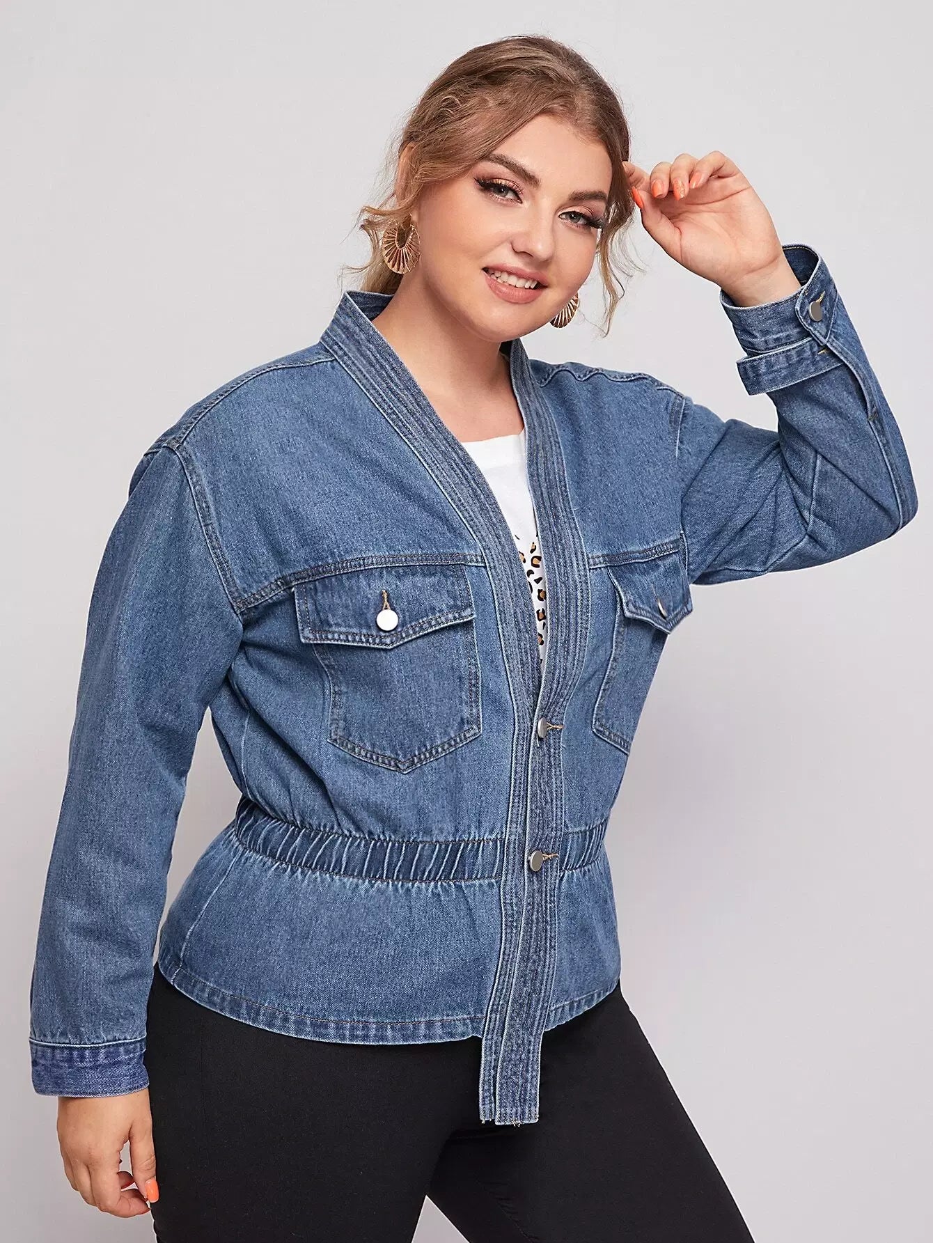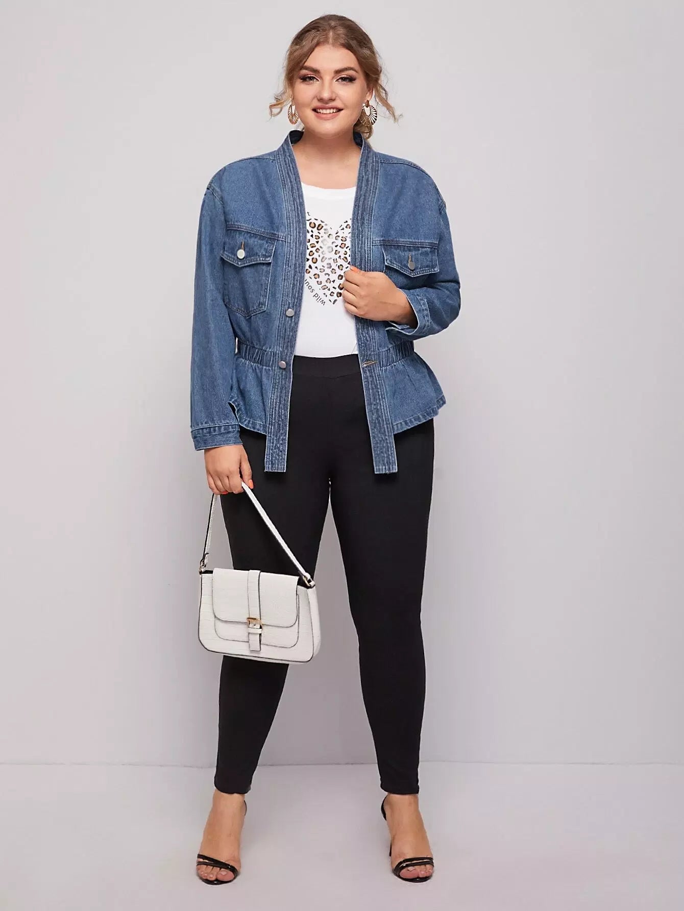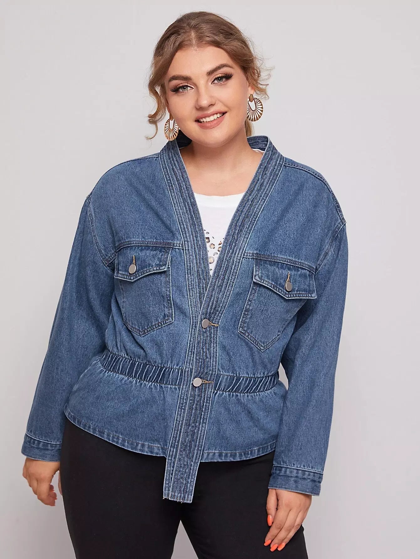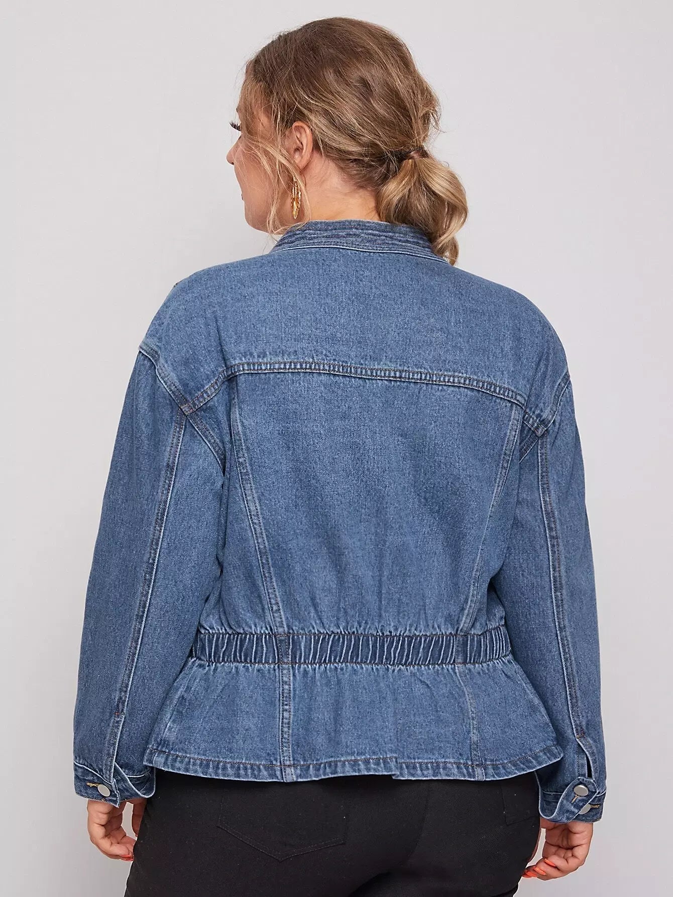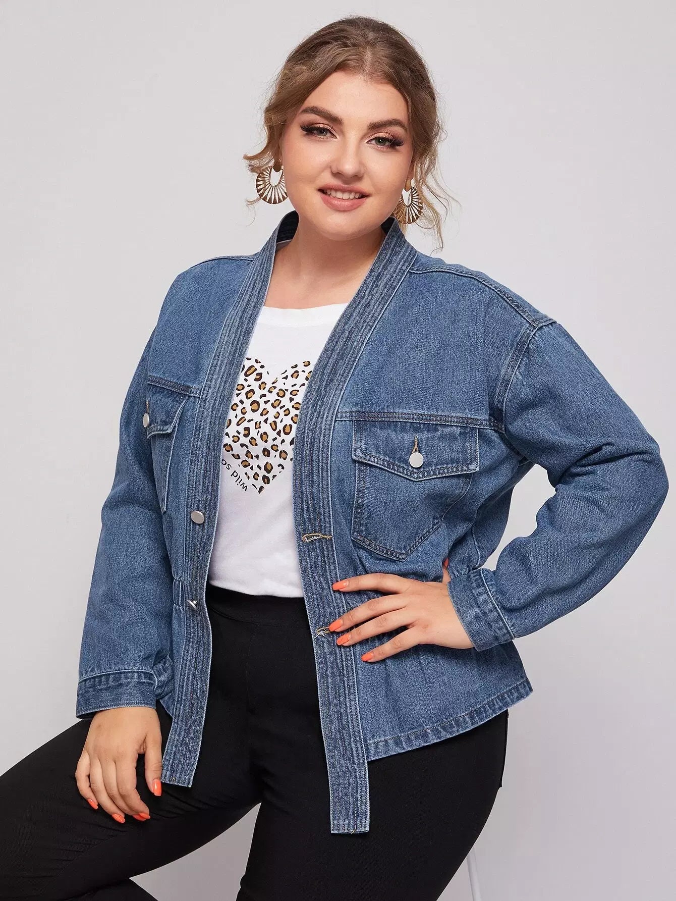 جاكيت دنيم مرقع بجيب أمامي بأزرار زائد