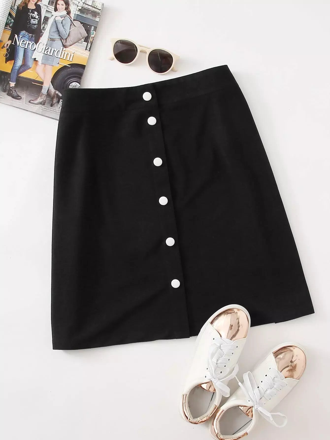 تنورة سروال قصير قصير سادة بأزرار أمامية زائد