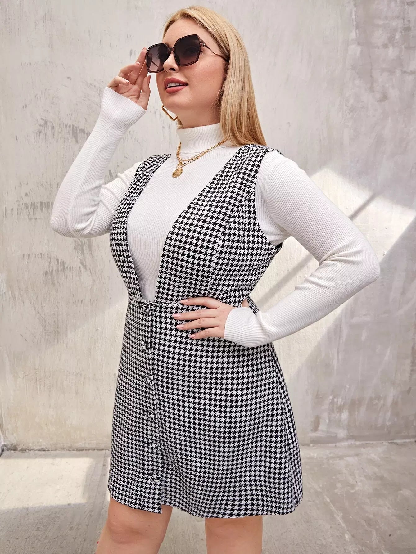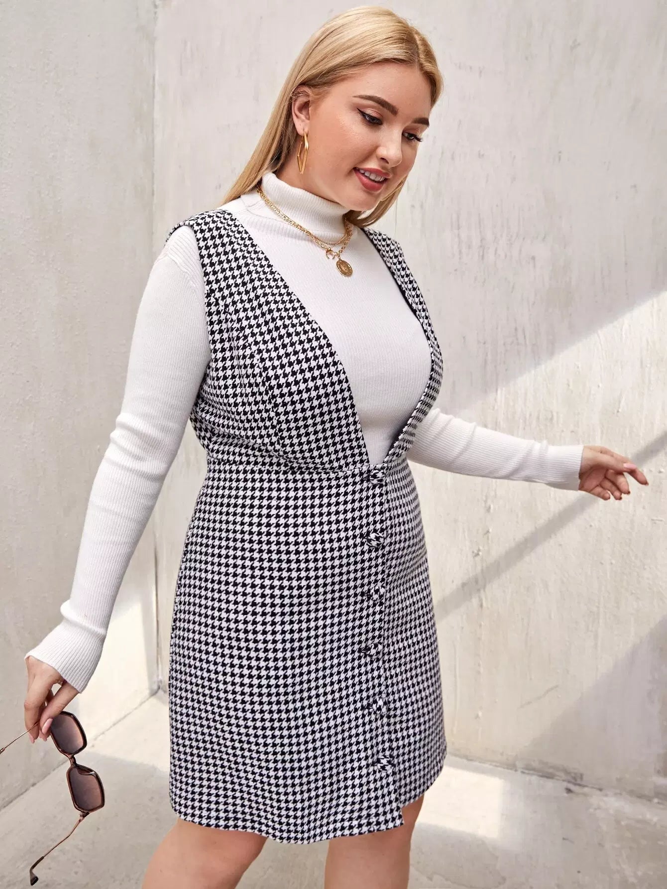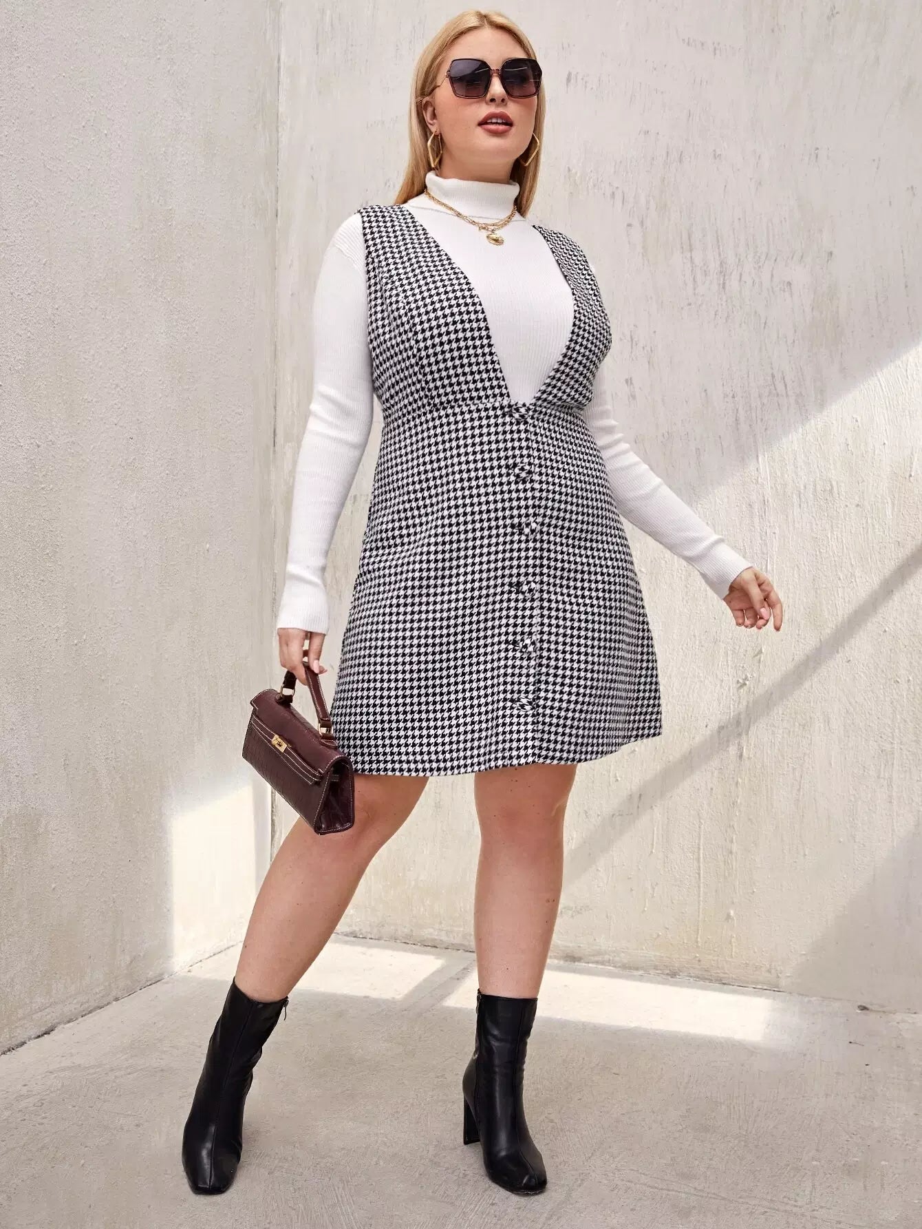 فستان تويد بأزرار أمامي بأزرار زائد