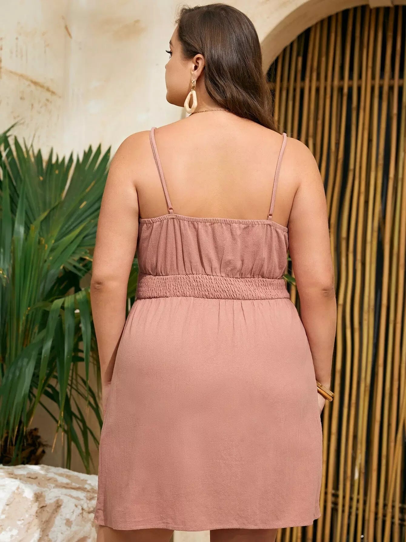 فستان قصير بأزرار أمامي بأزرار زائد