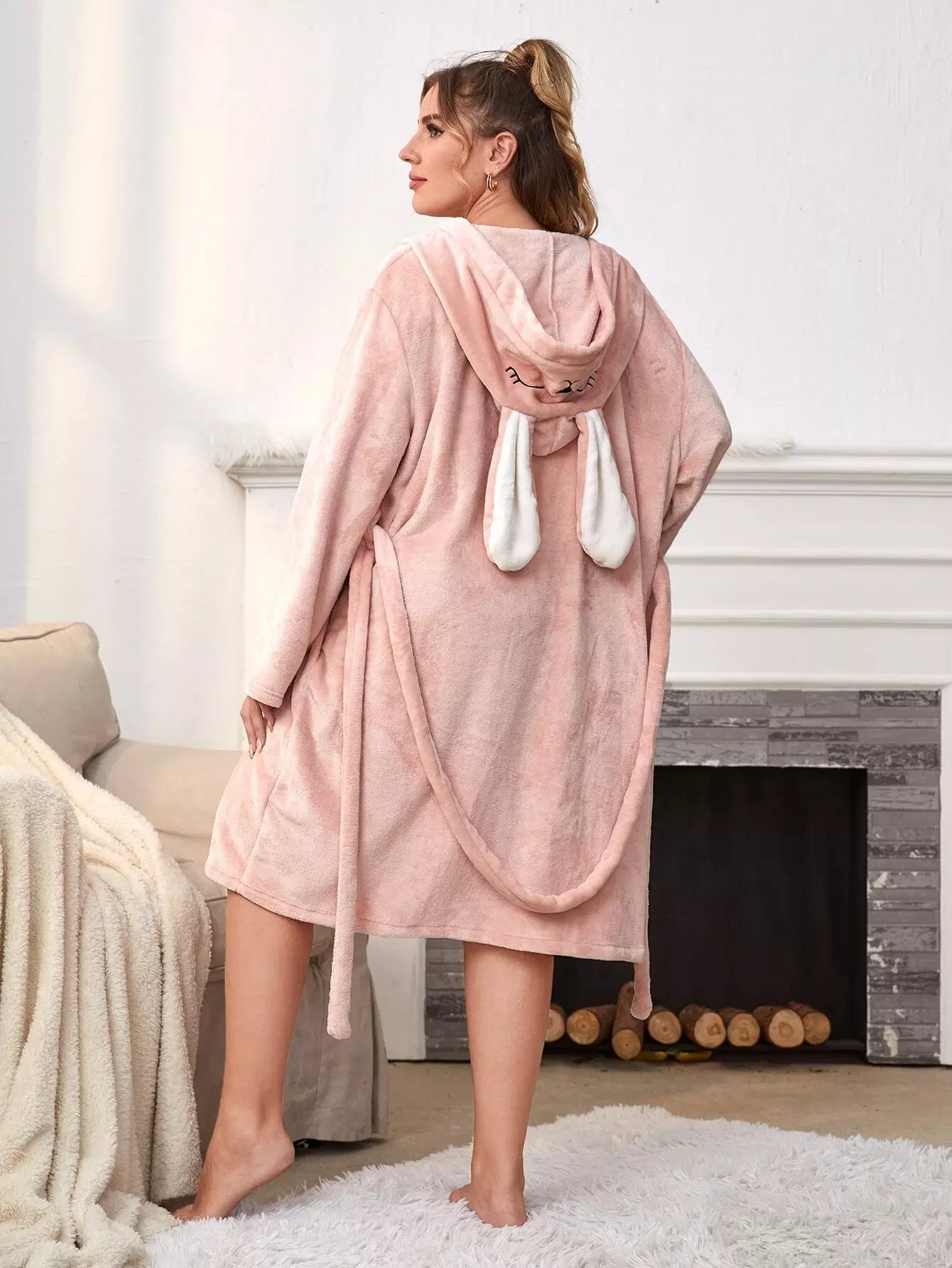 بالإضافة إلى روب فلانيل بغطاء للرأس ومطرز بجيبين كارتون بدون ملابس داخلية بدون حزام