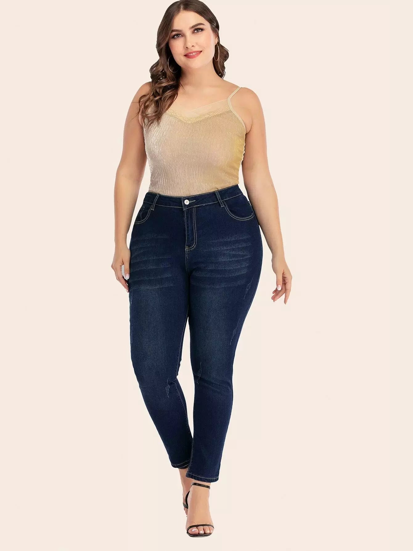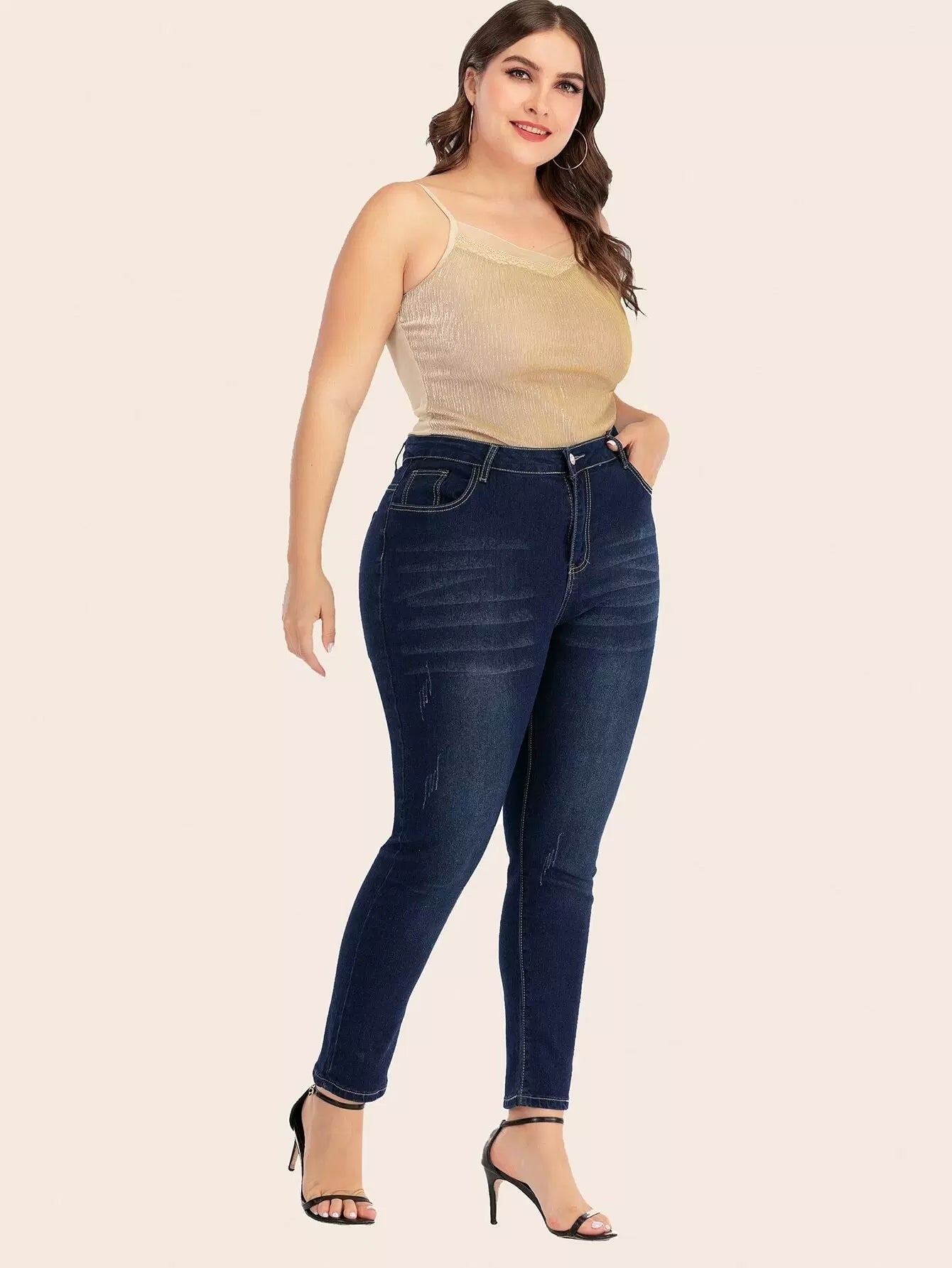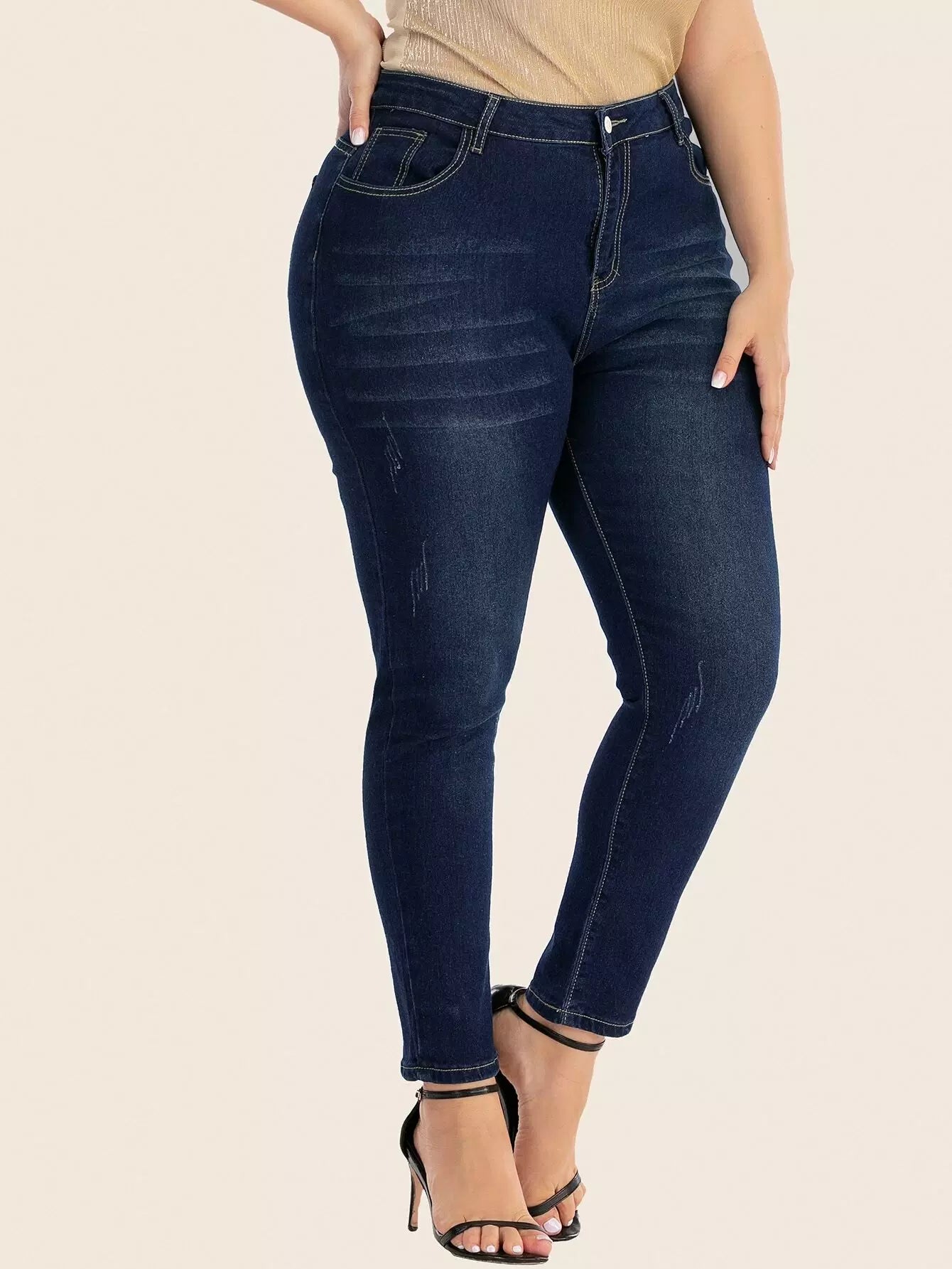 نحيف - مقاس كبير جينز سكيني بشعيرات القطط