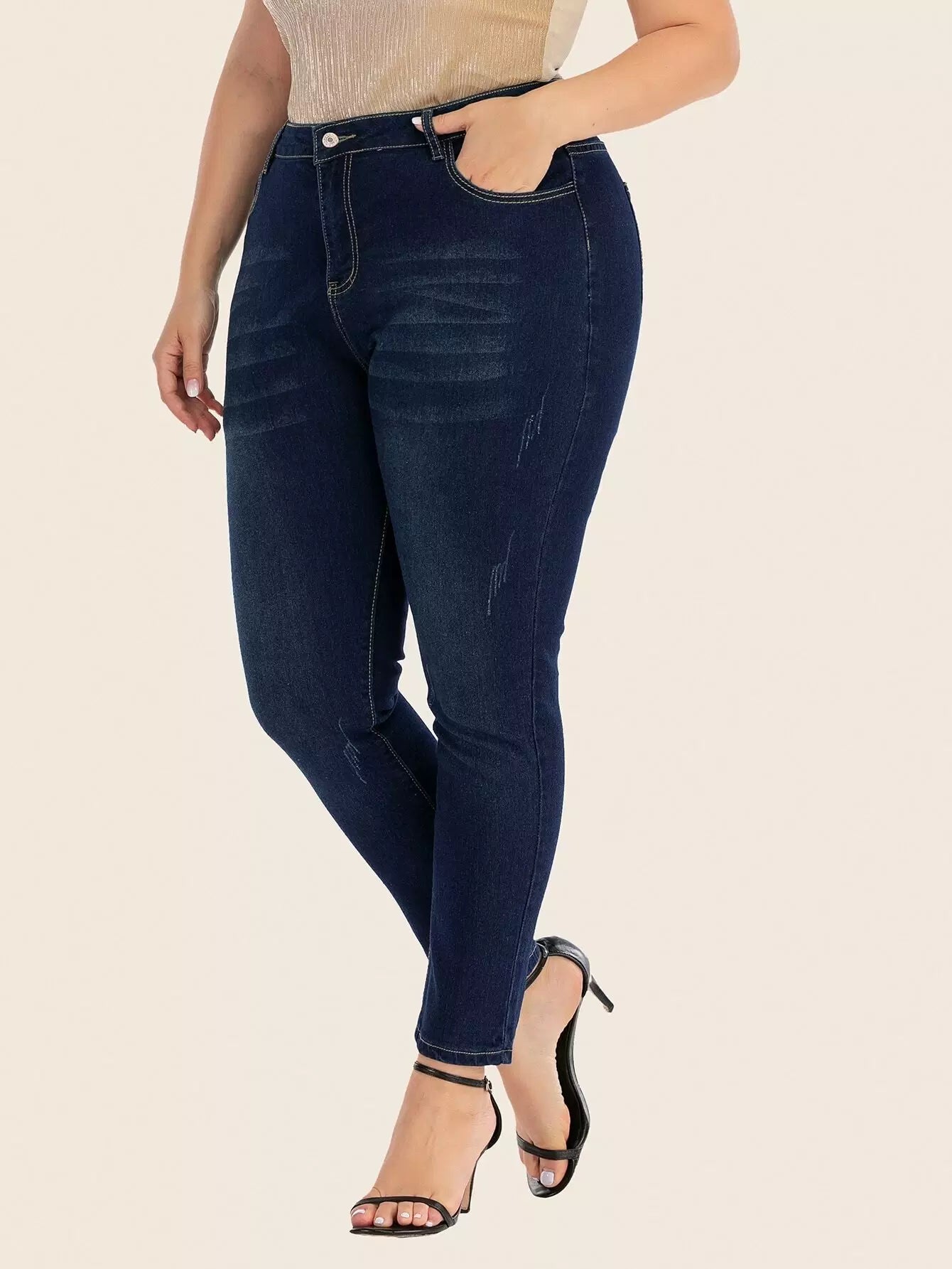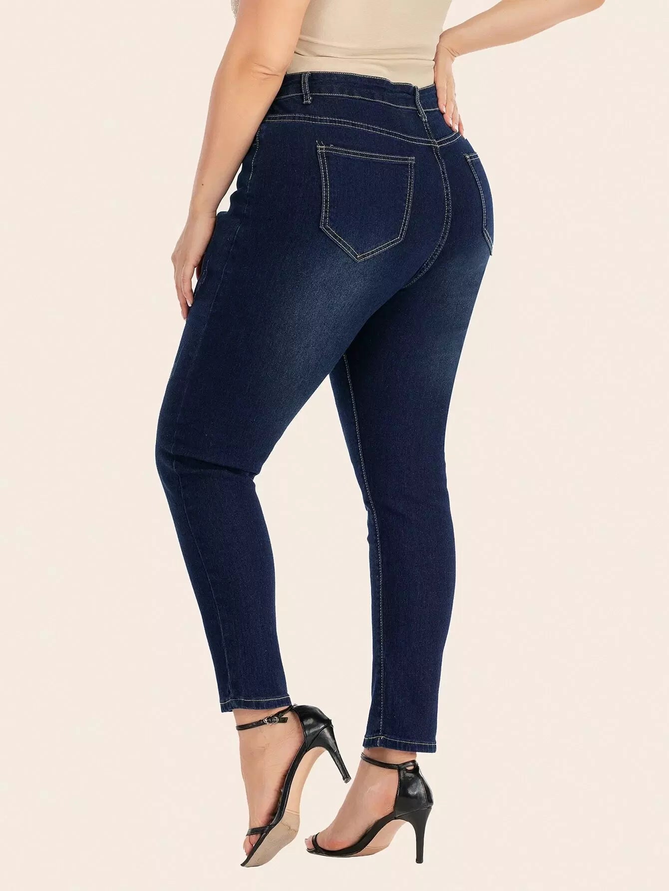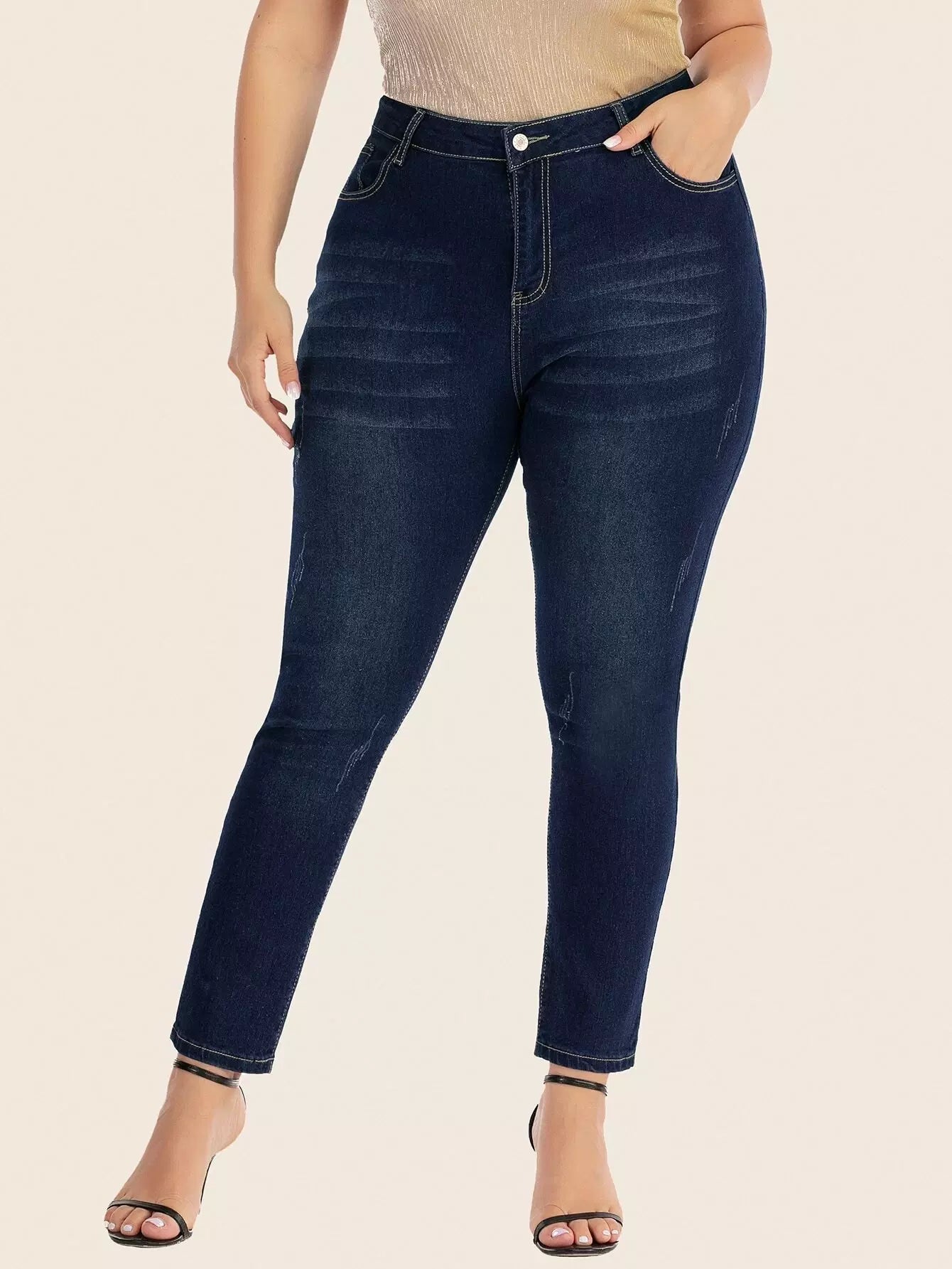 نحيف - مقاس كبير جينز سكيني بشعيرات القطط