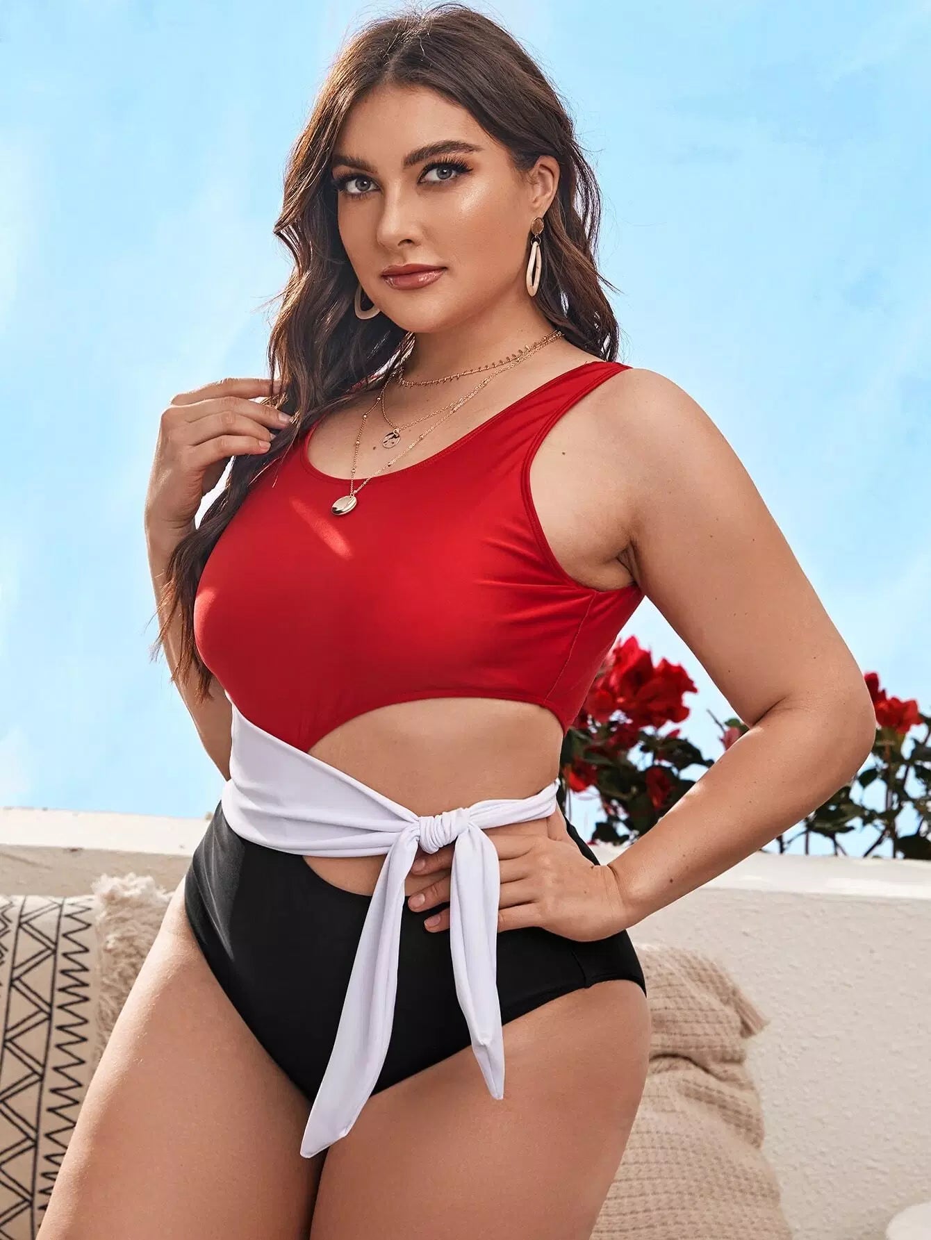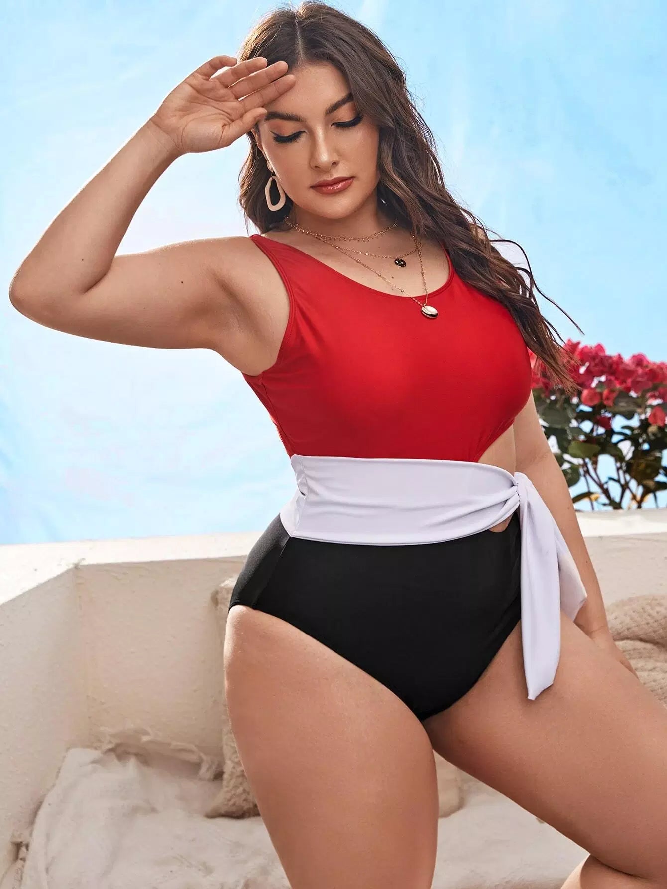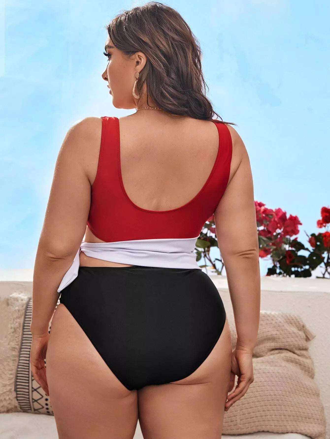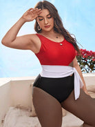 بدلة سباحة بقطعة واحدة ملونة بلون واحد زائد