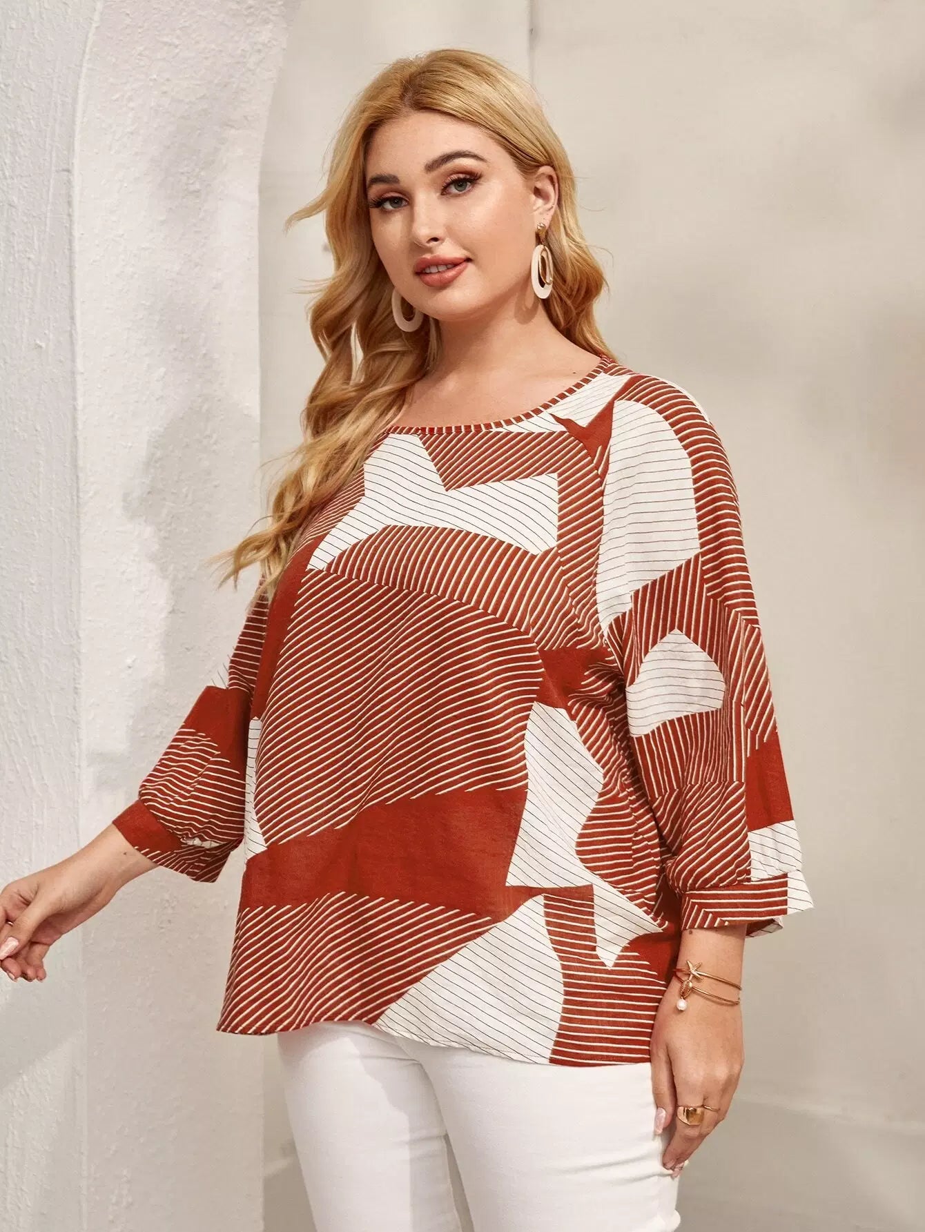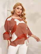 بلوزة بأكمام مخططة بالألوان زائد بأكمام باتوينغ