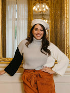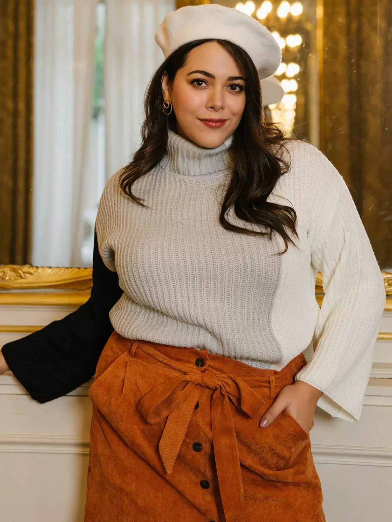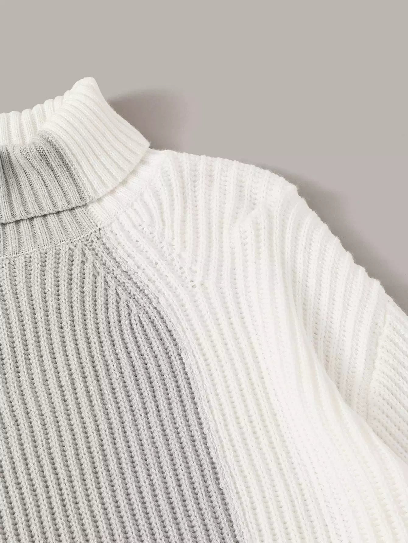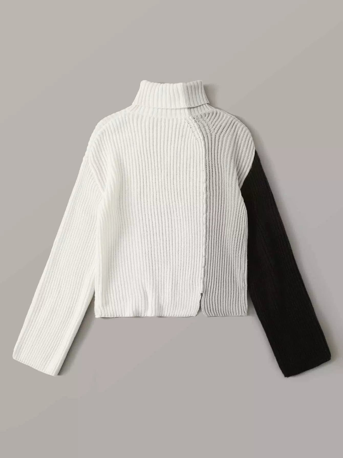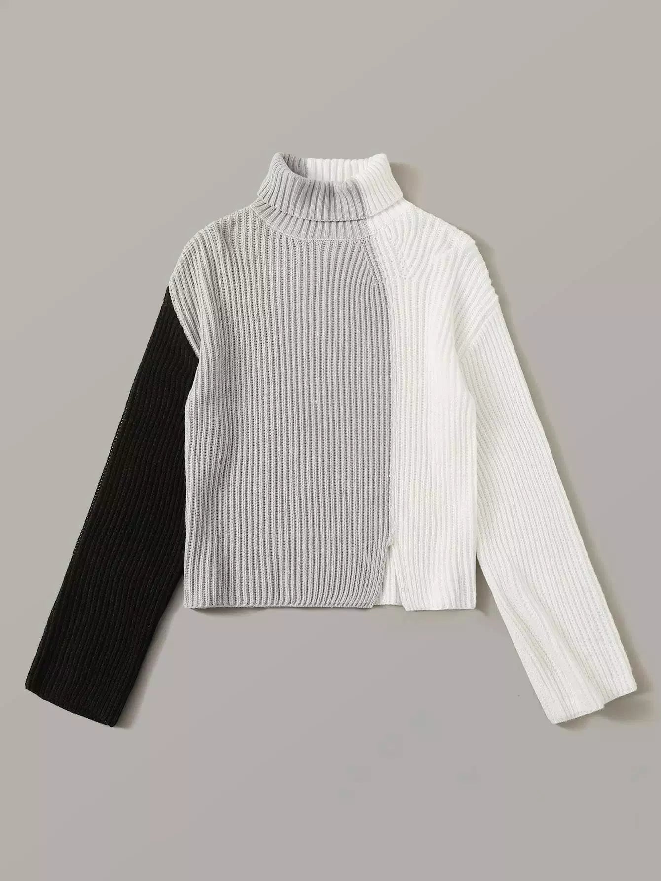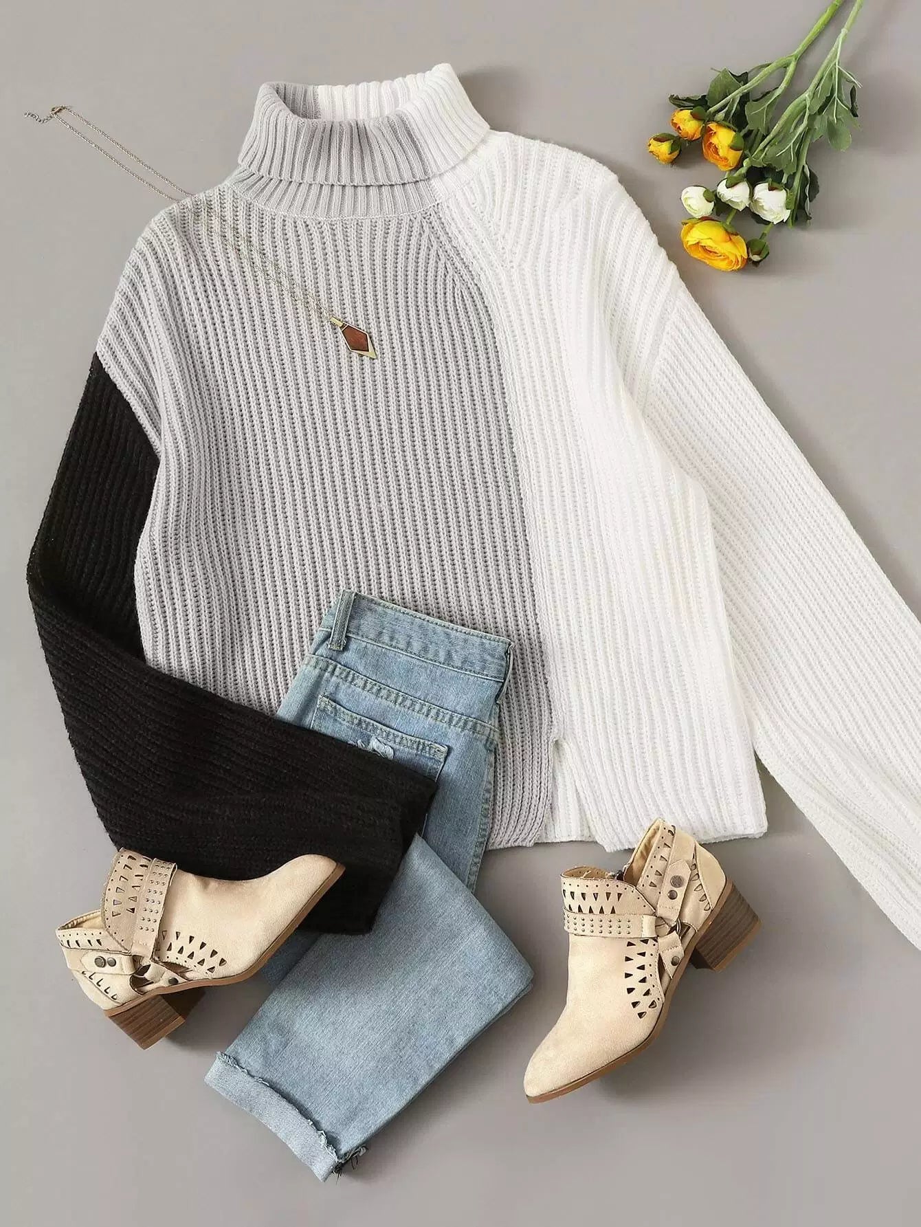 سترة بياقة ملونة بلون زائد بياقة مدورة منقسمة