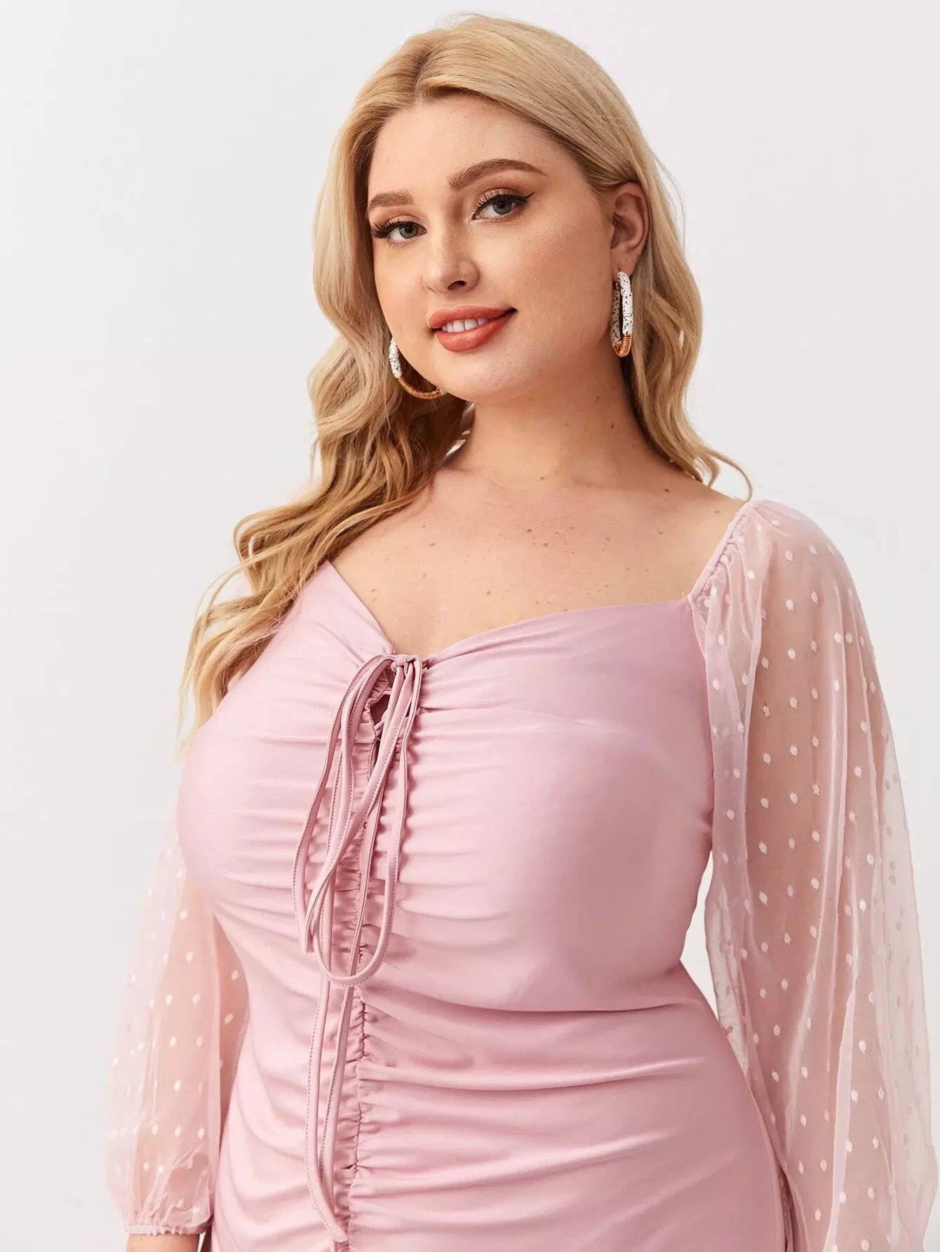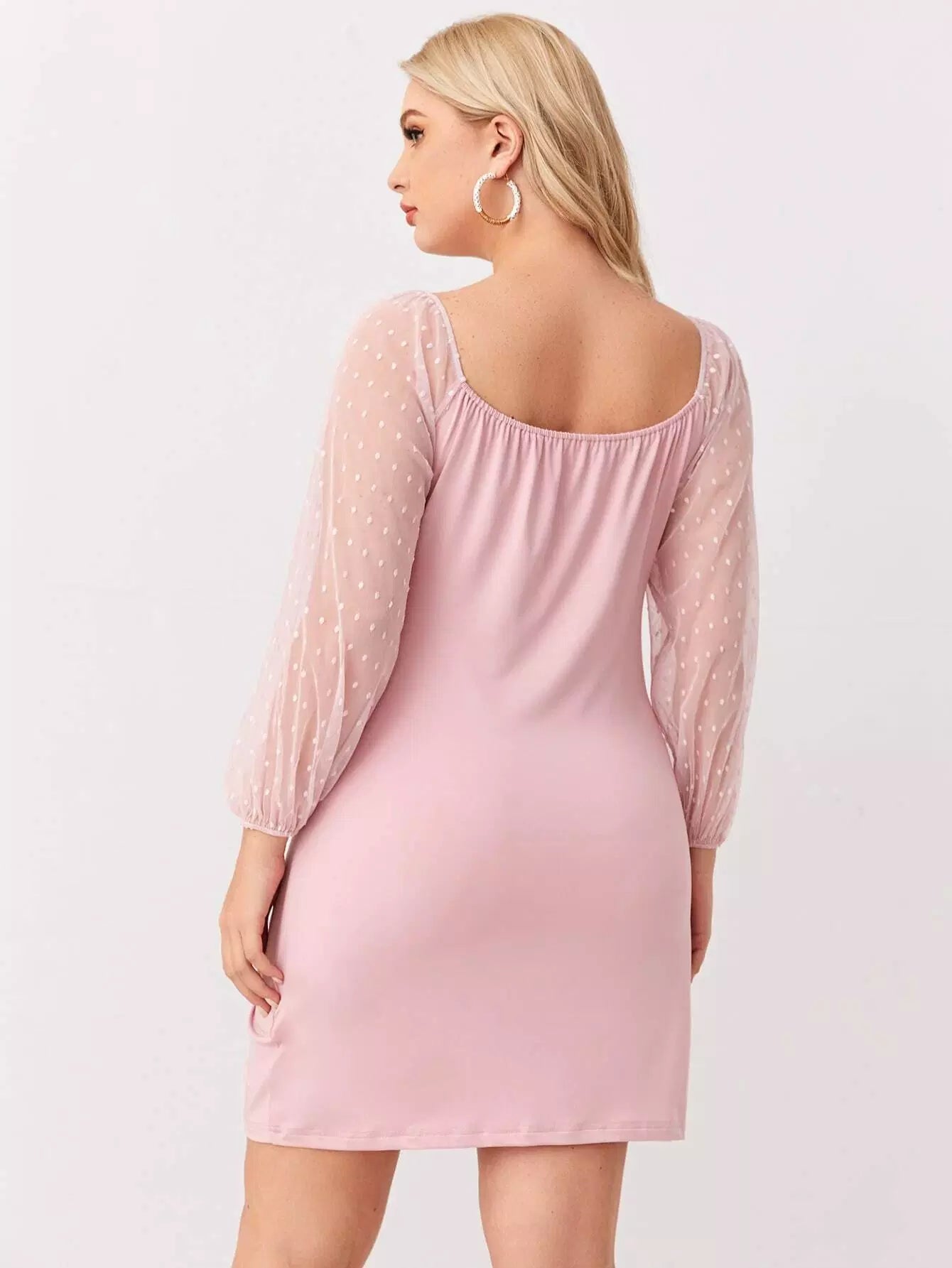 فستان ضيق بأكمام شبكية بأربطة شبكية بلون مغاير