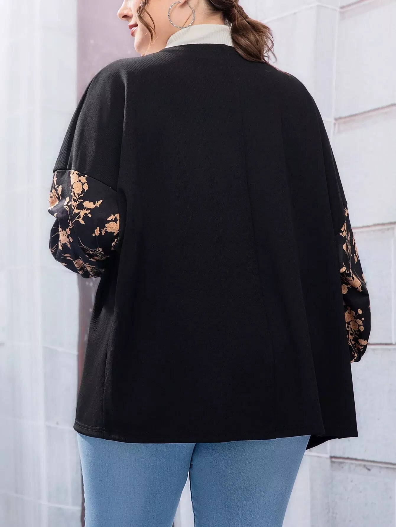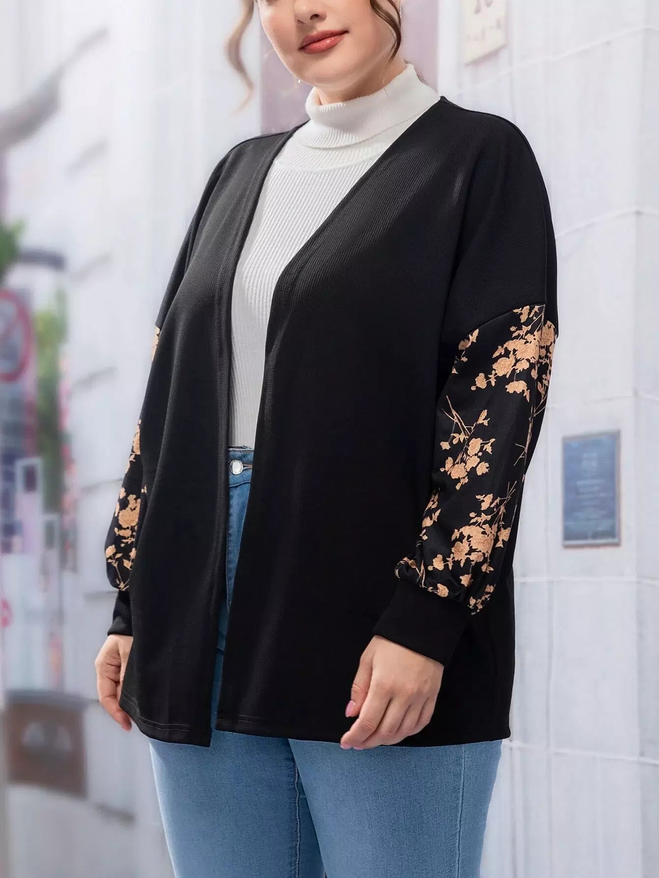 جاكيت مفتوح من الأمام بطبعة زهور بلون مغاير بلون مغاير