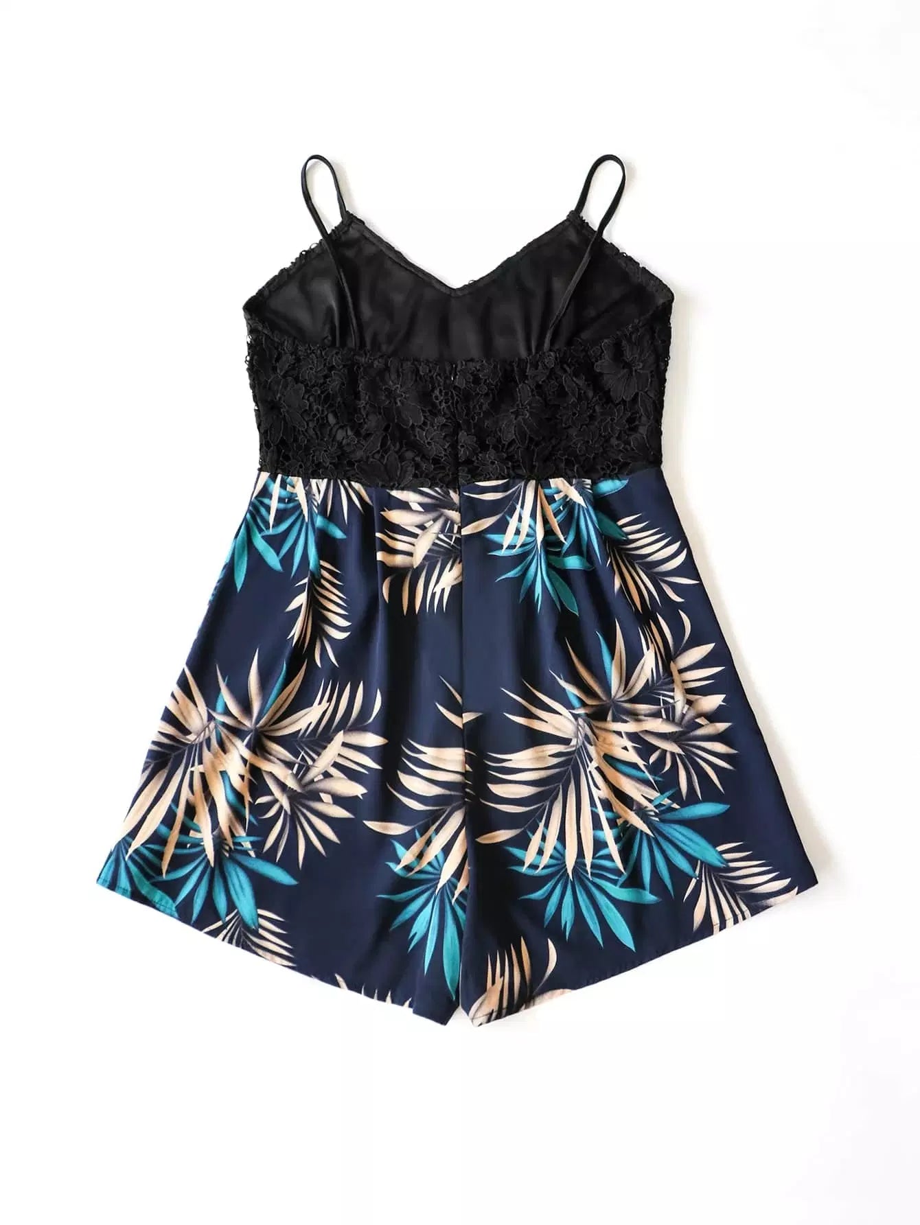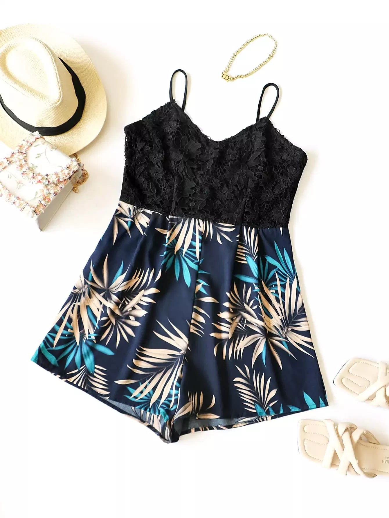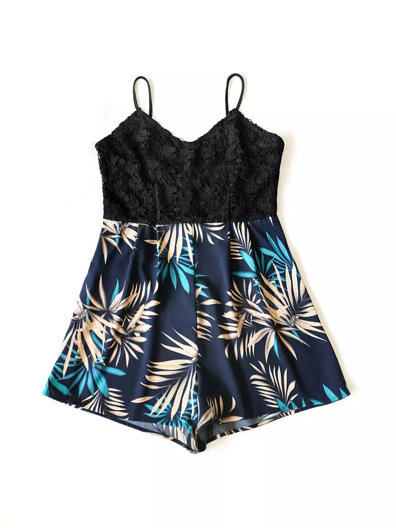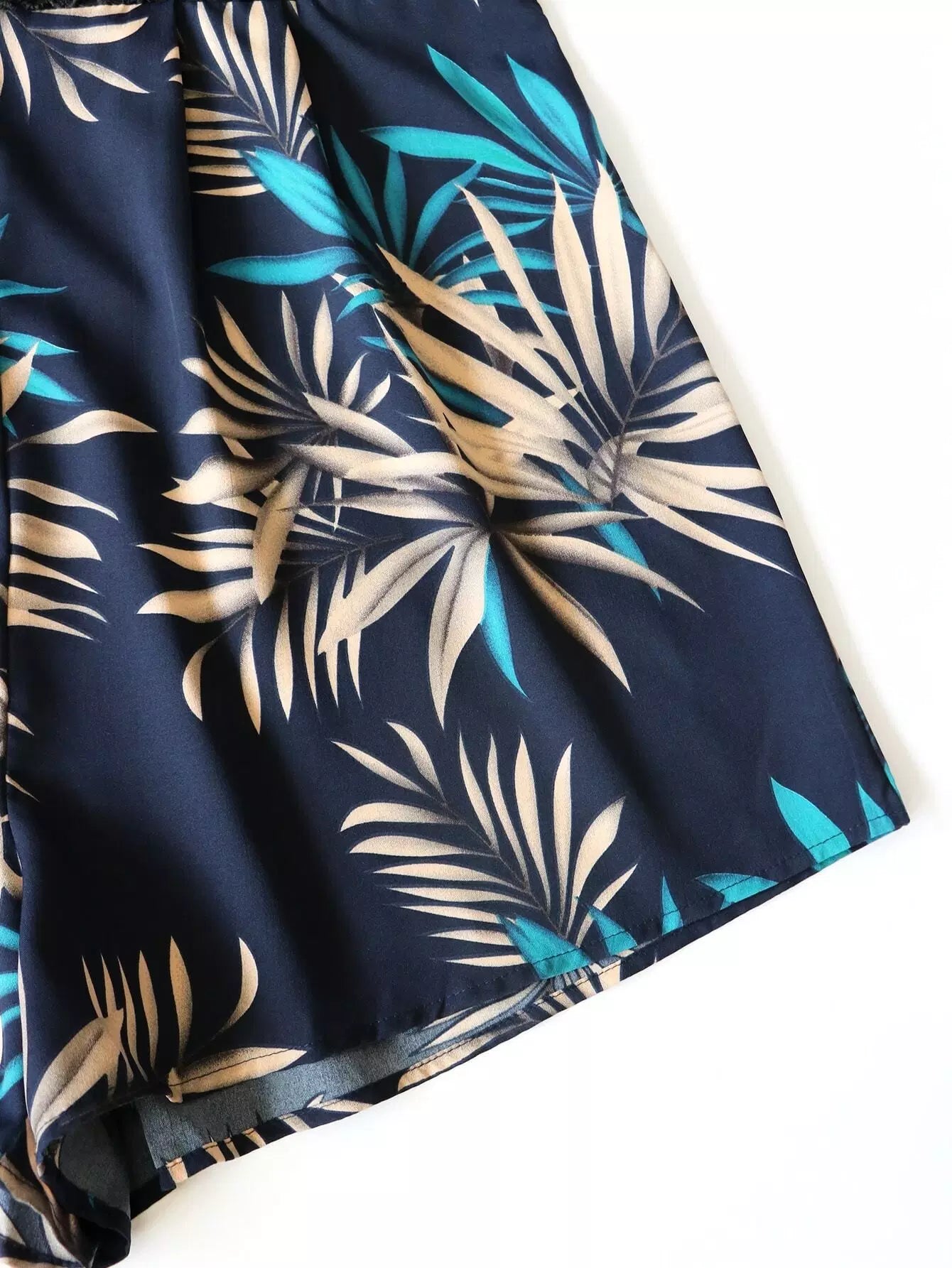 رومبير قصير بلس دانتيل بلون مغاير من الدانتيل المخرم بطبعة استوائية