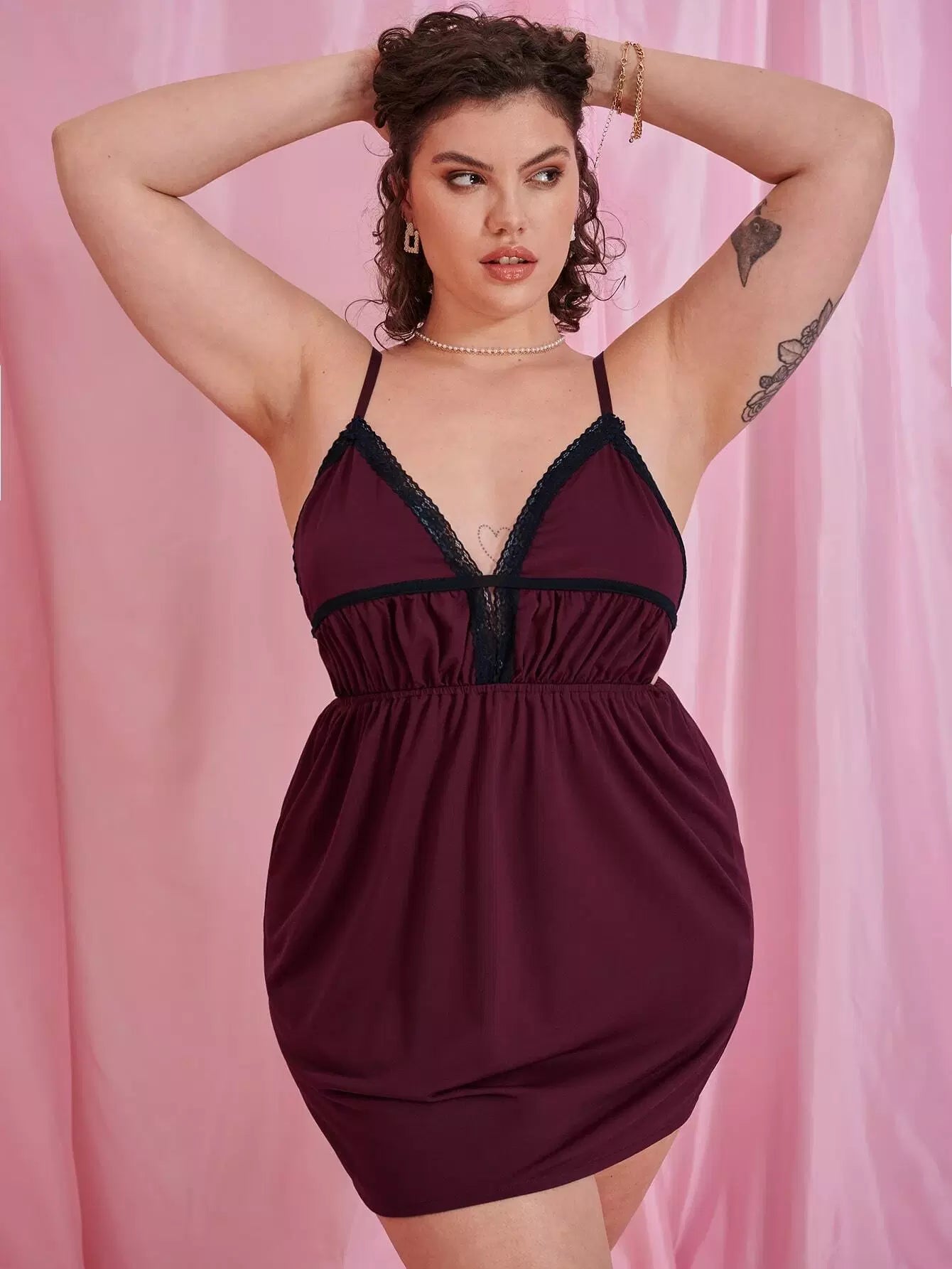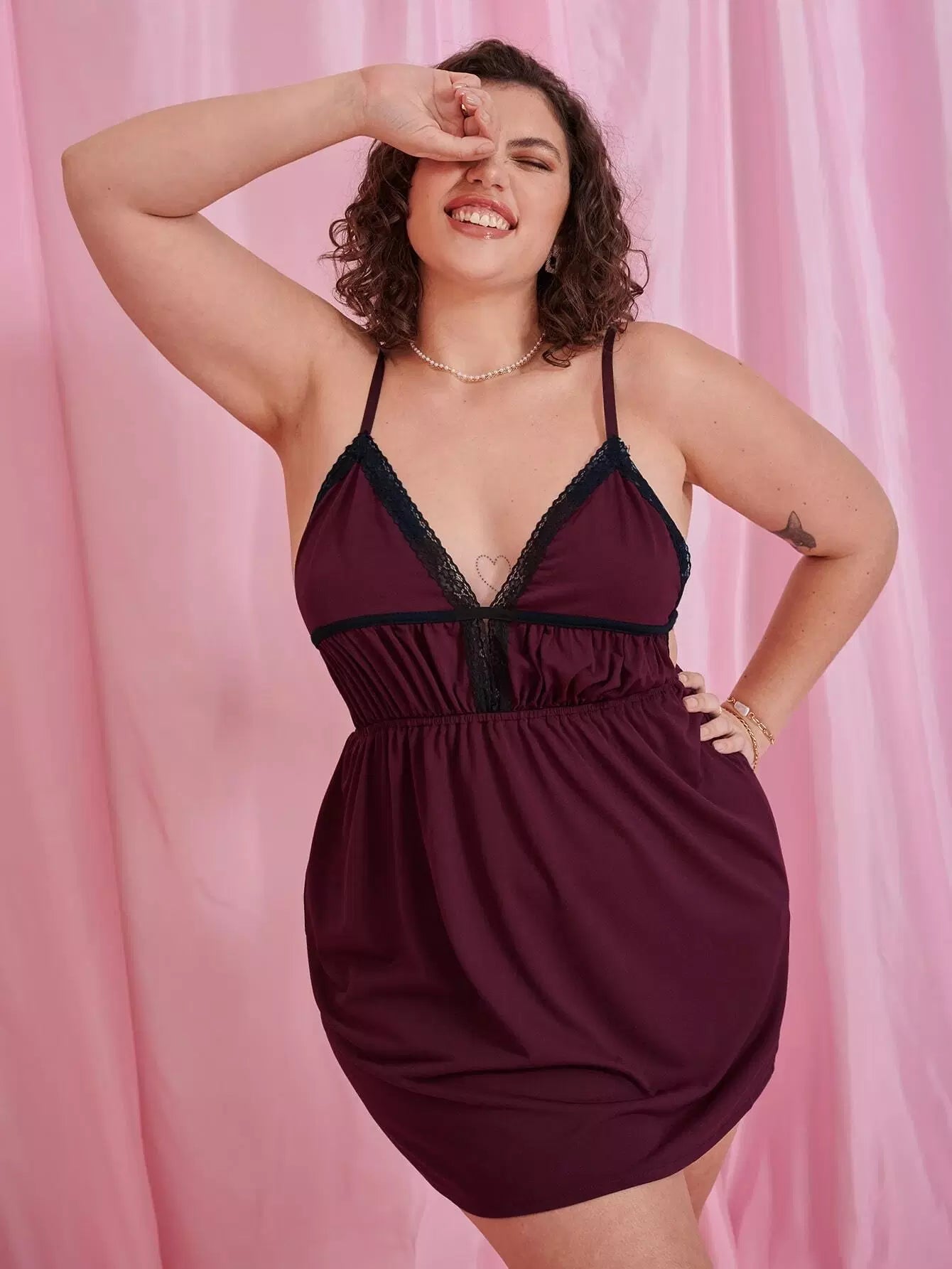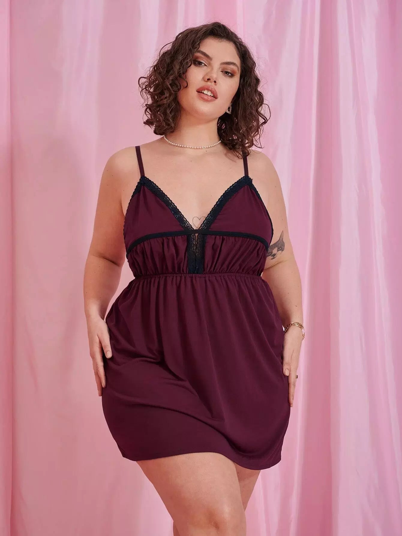 فستان سهرة كامي دانتيل بلون مغاير زائد