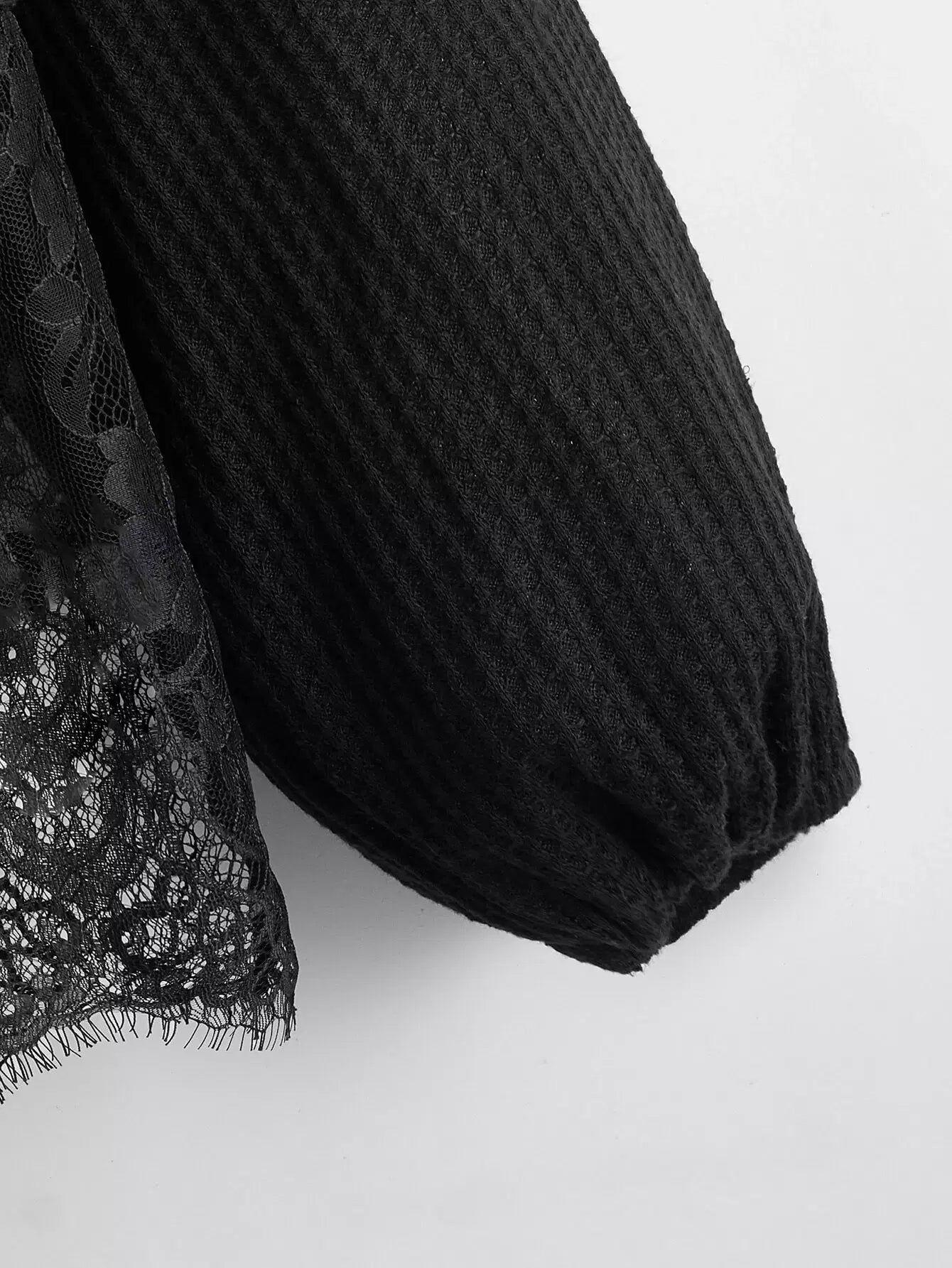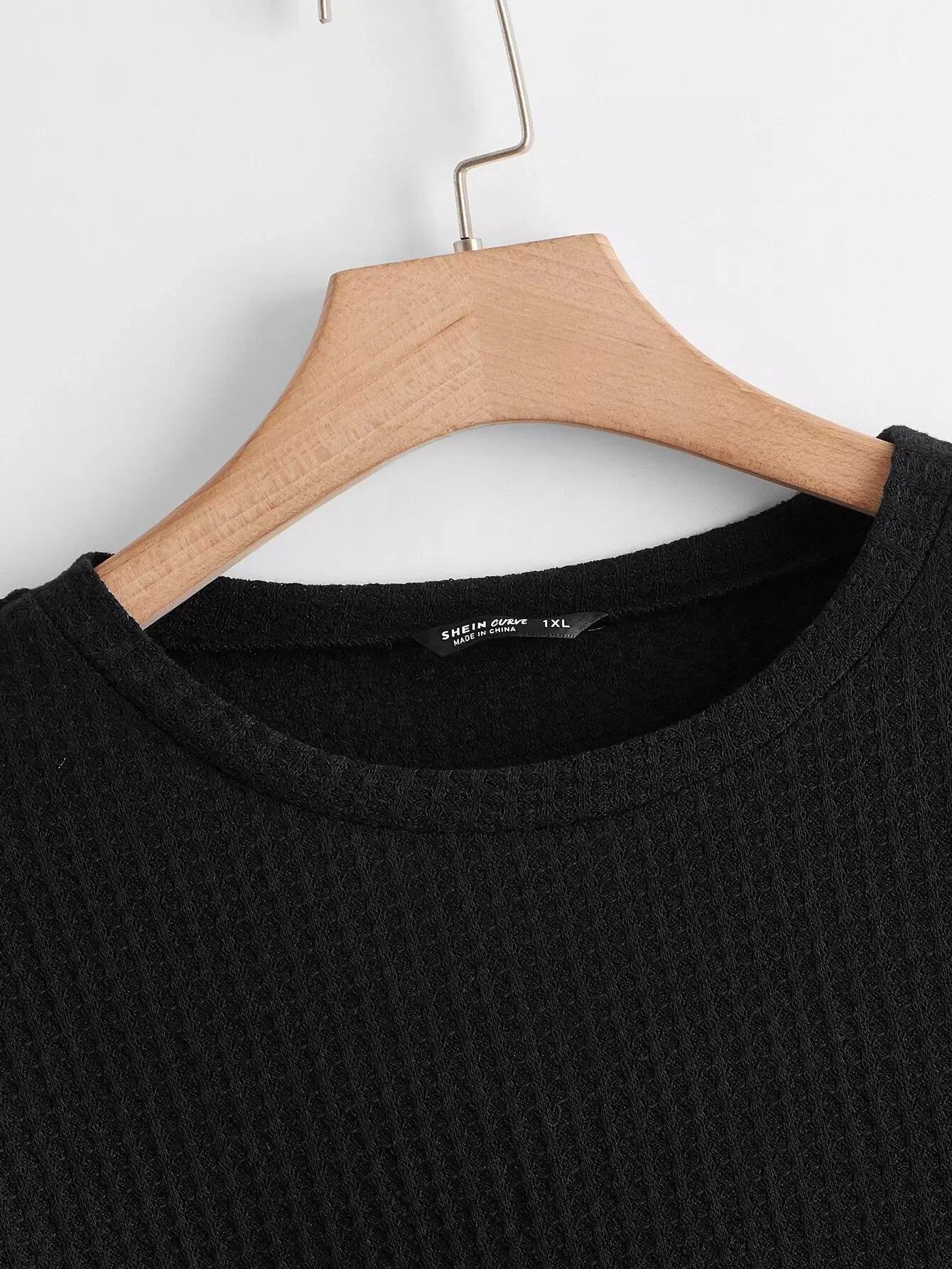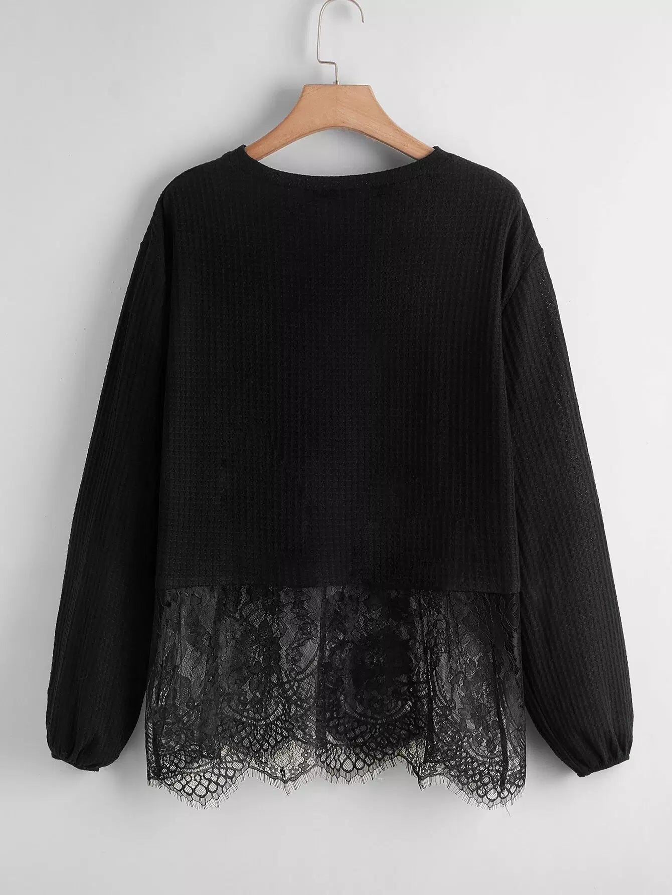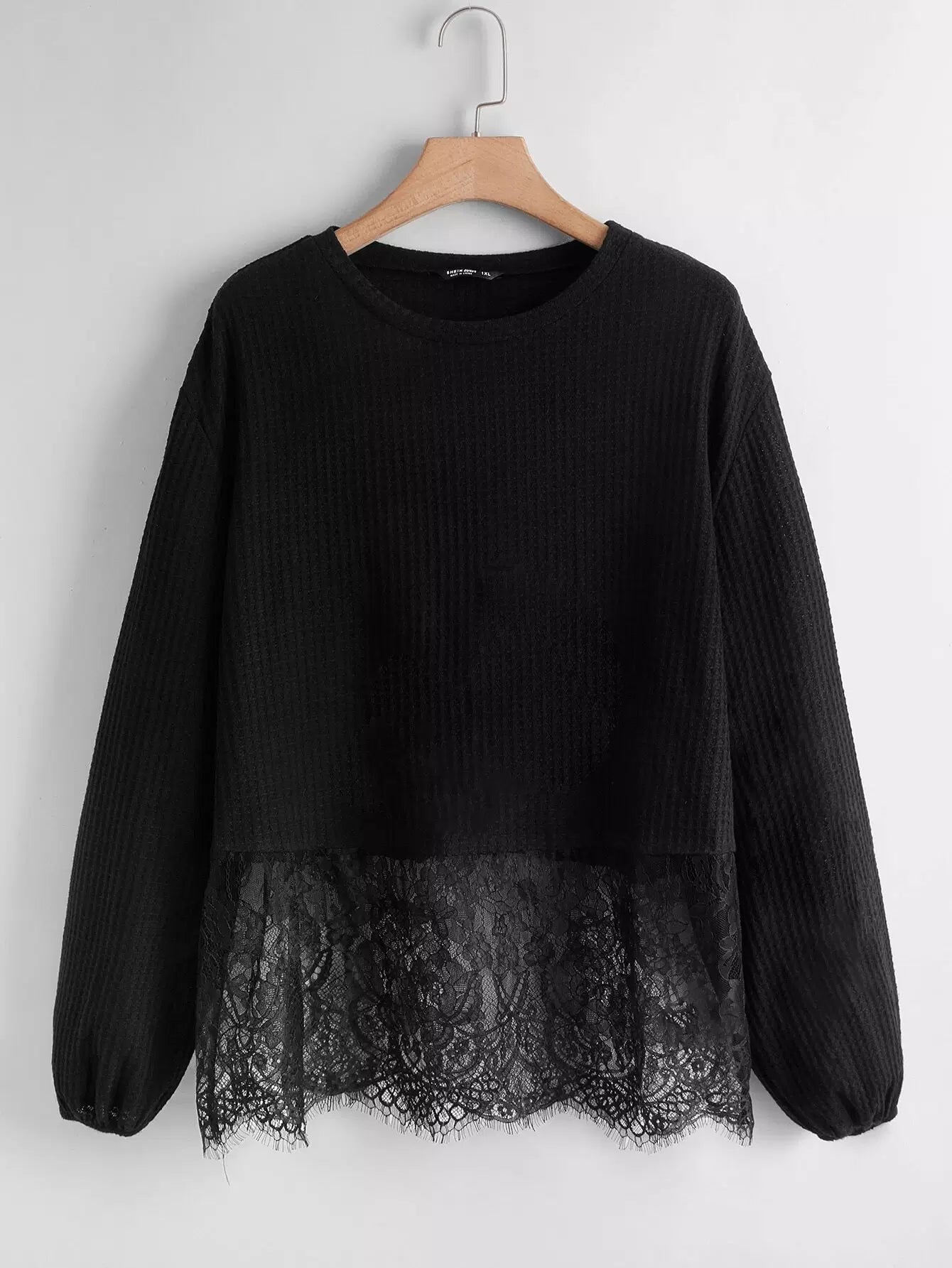نحيف - مقاس كبير تي شيرت منسوج بحاشية من الدانتيل المتباين