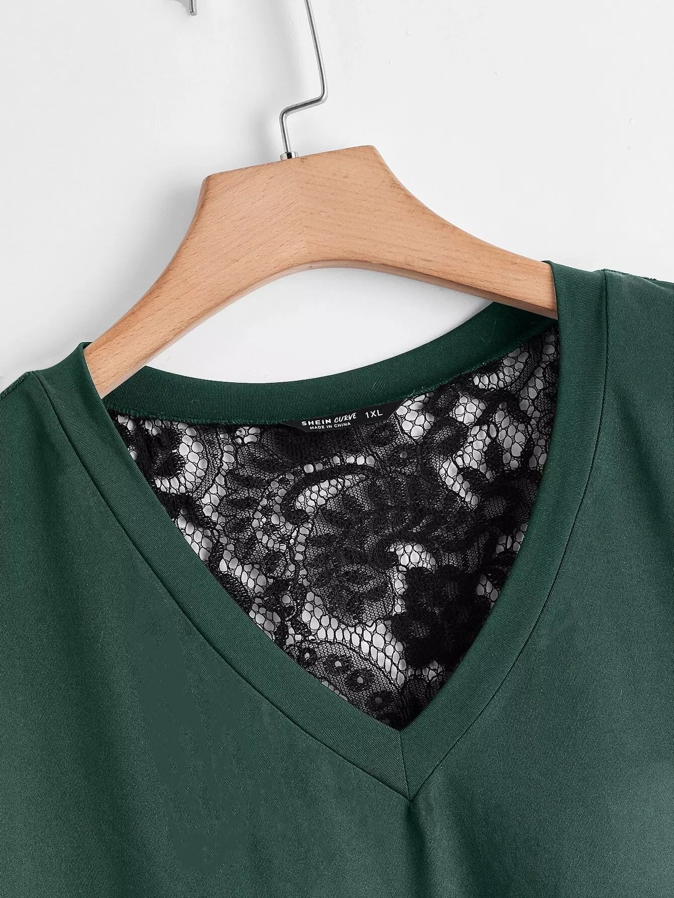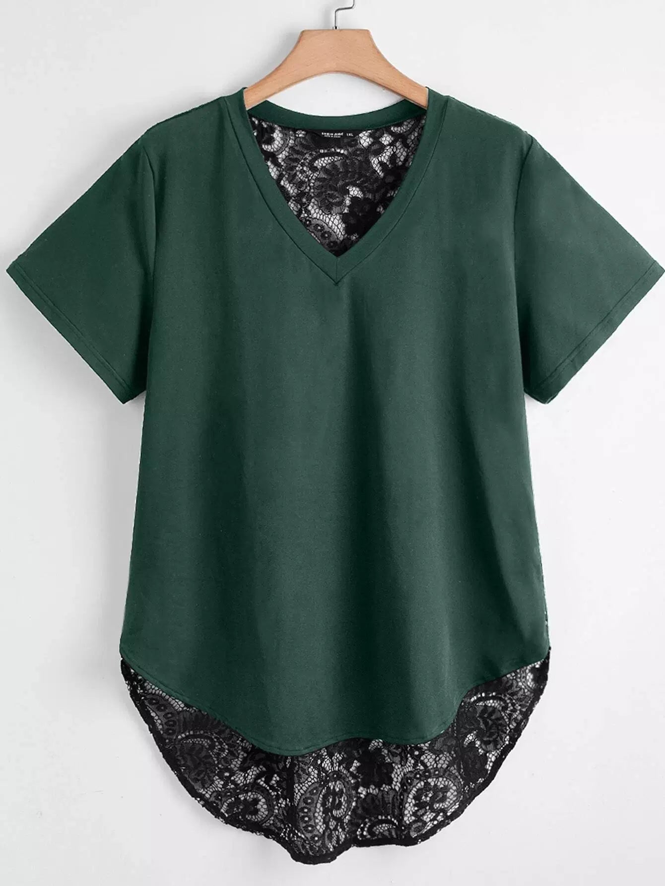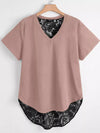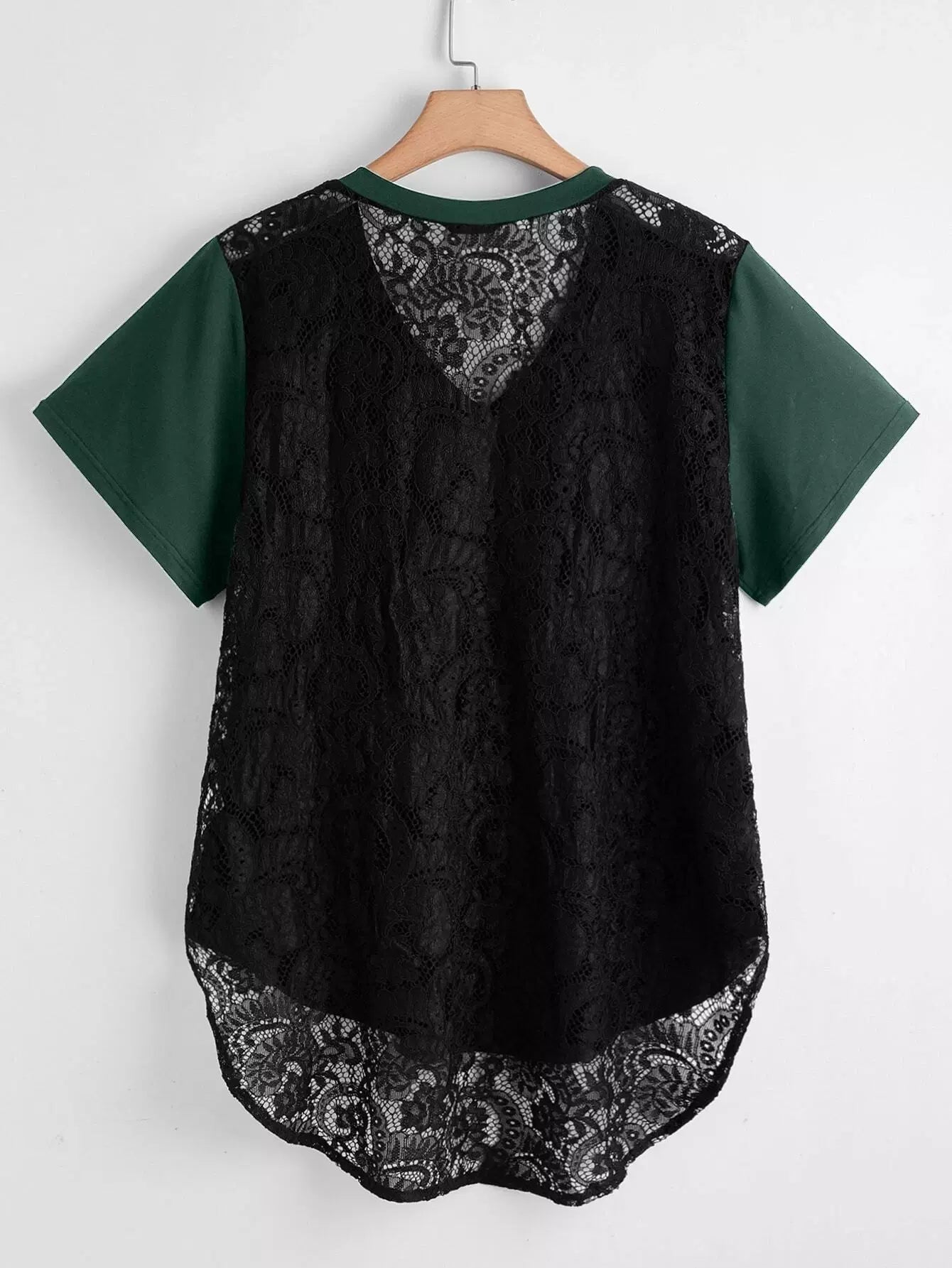 تي شيرت دانتيل بلون مغاير بلون مغاير مرتفع منخفض