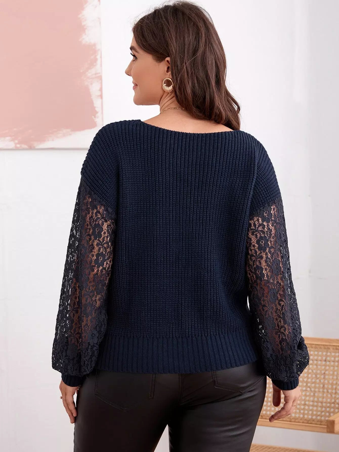 نحيف - مقاس كبير سترة ملتوية من الدانتيل بلون مغاير