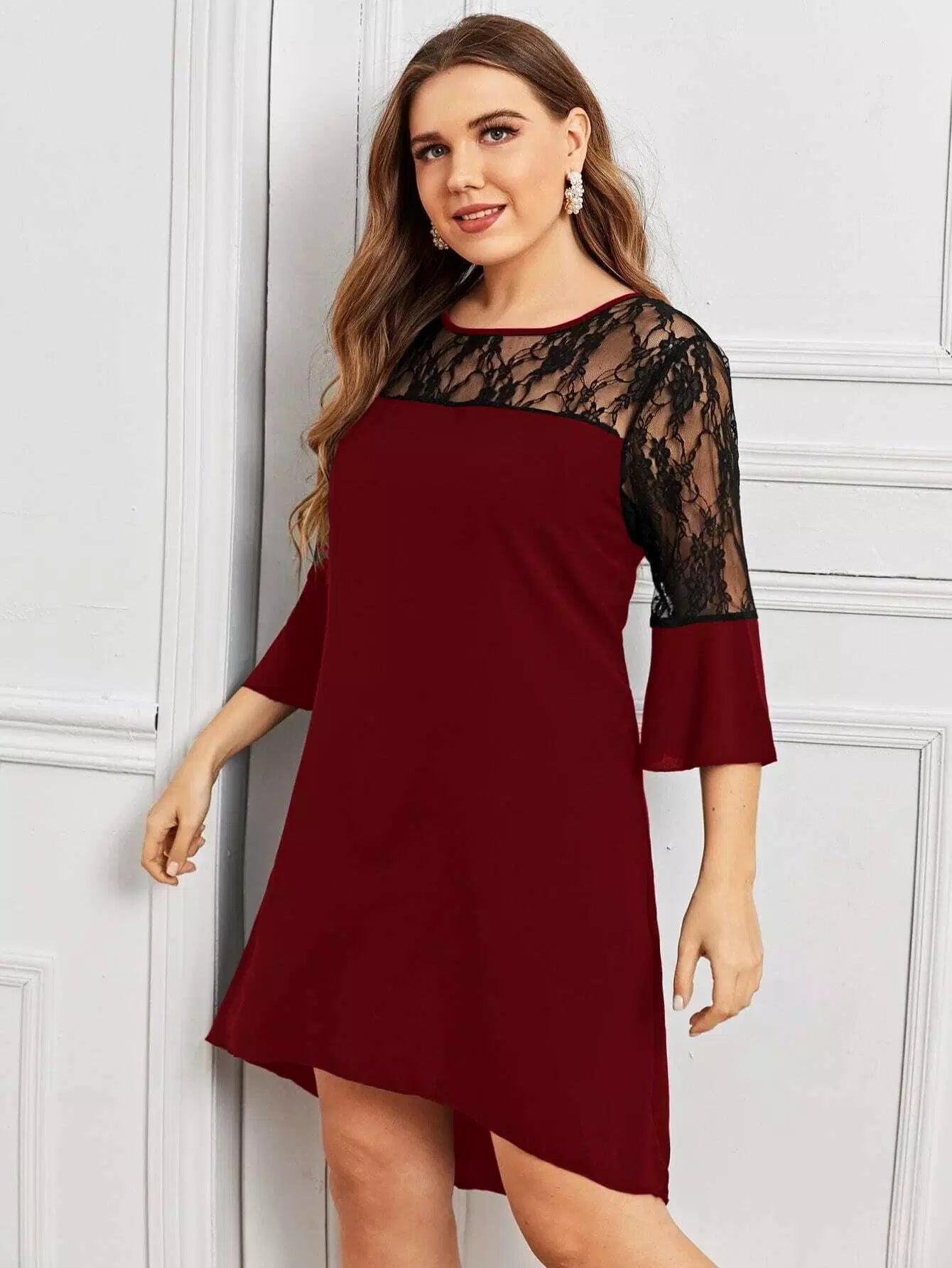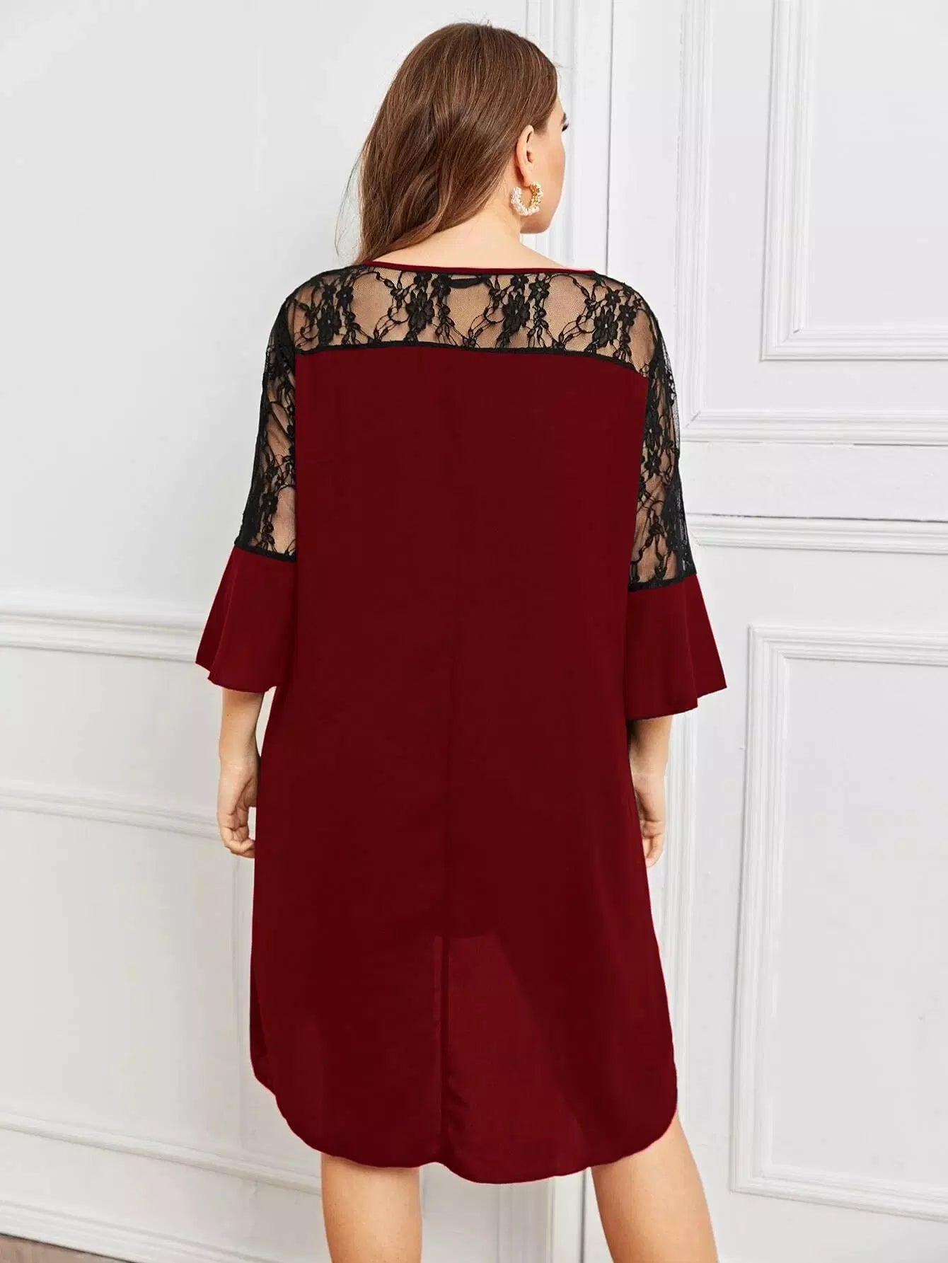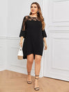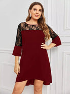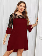 فستان بدون أكمام من الدانتيل بنقوش بلون مغاير