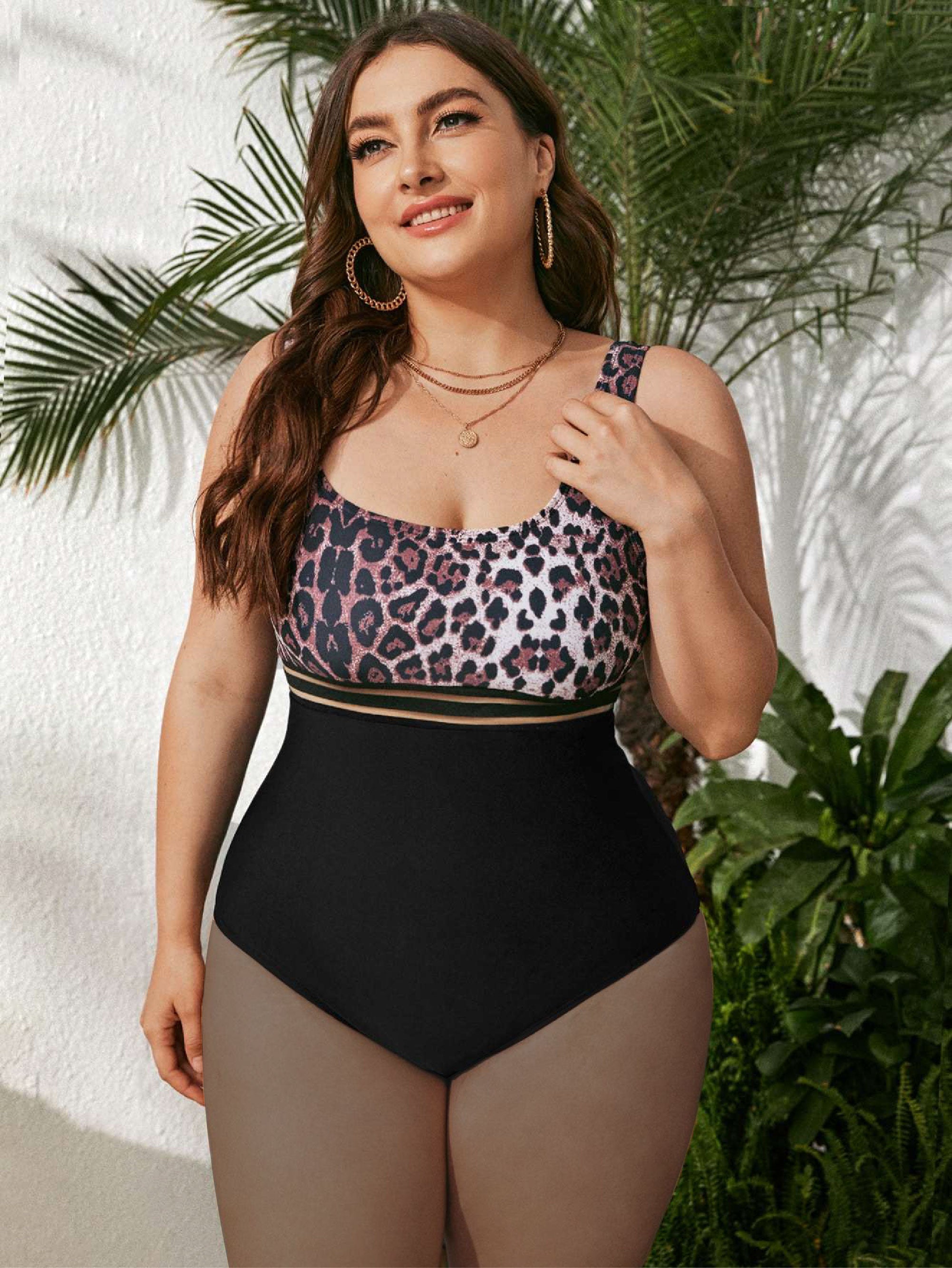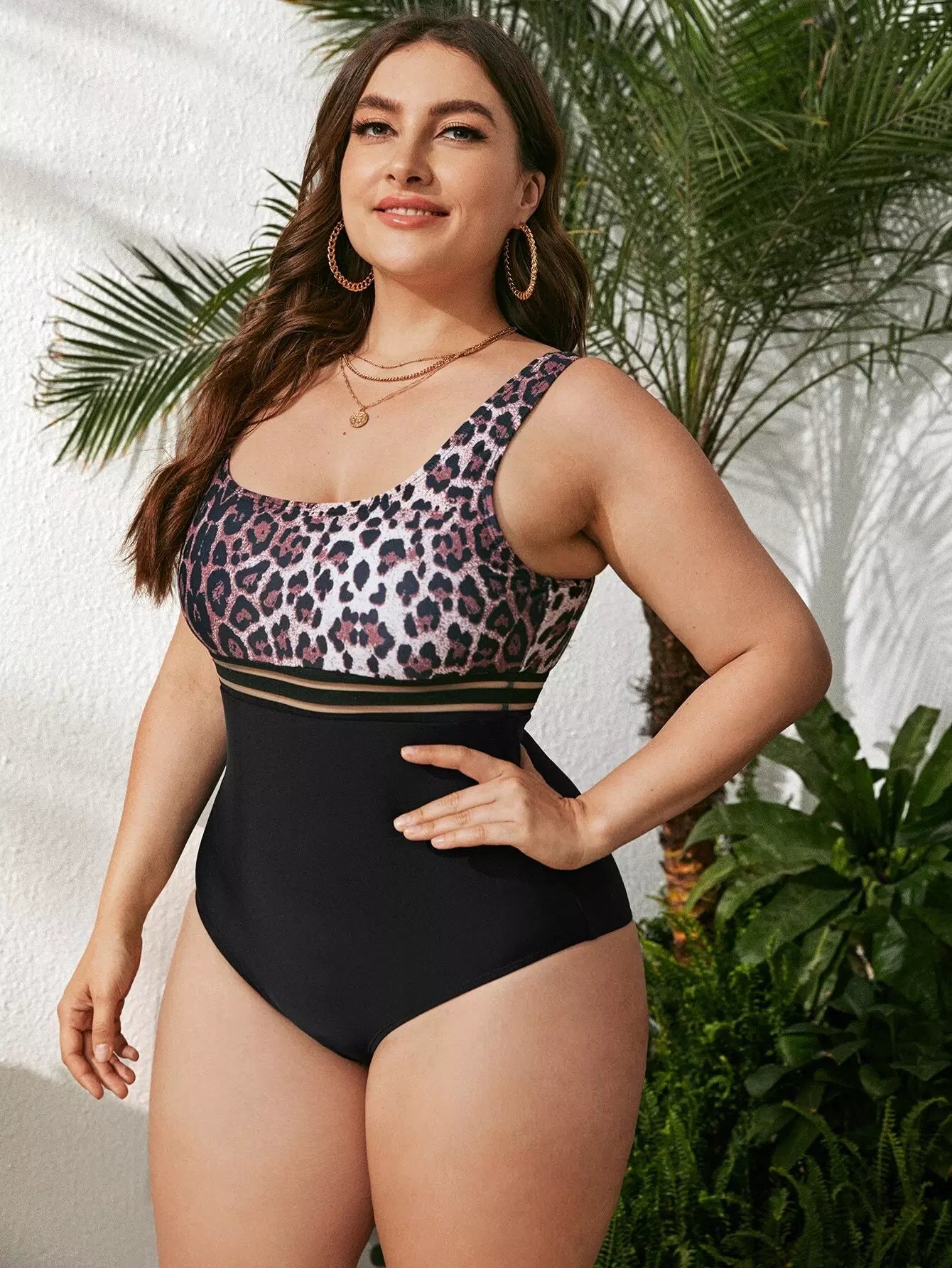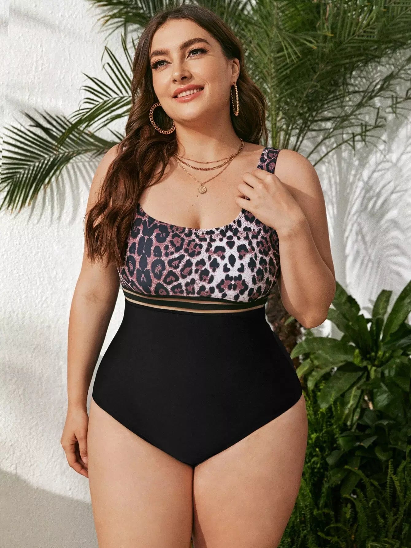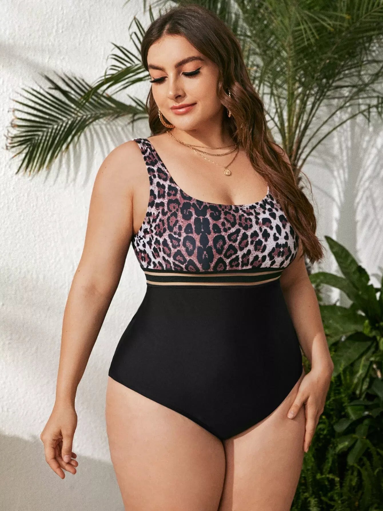بذلة سباحة بقطعة واحدة بلون متباين بلون النمر