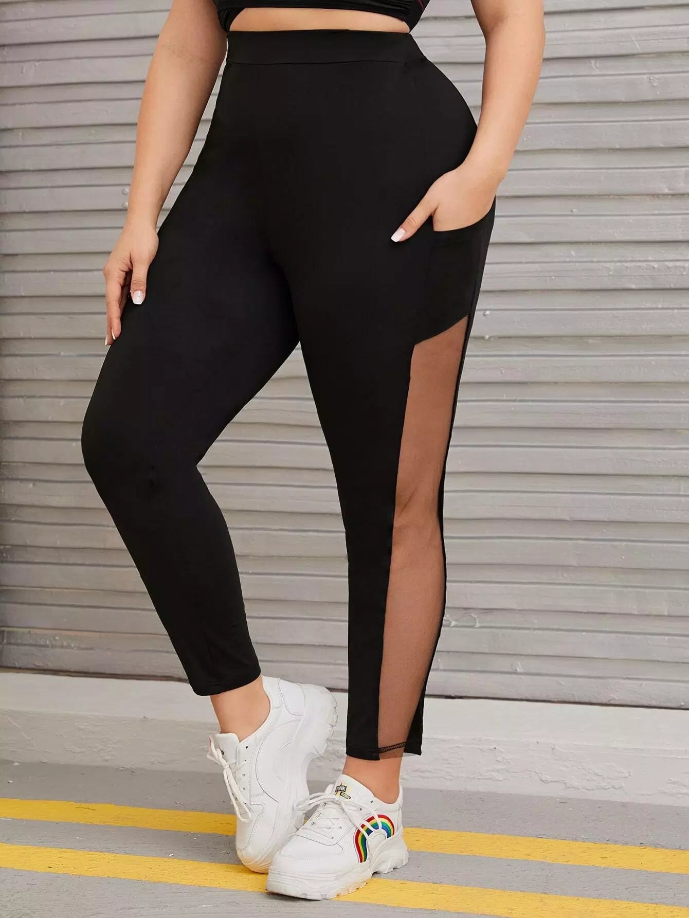 بنطلون ضيق بتفاصيل شبكية بلون مغاير بلون مغاير