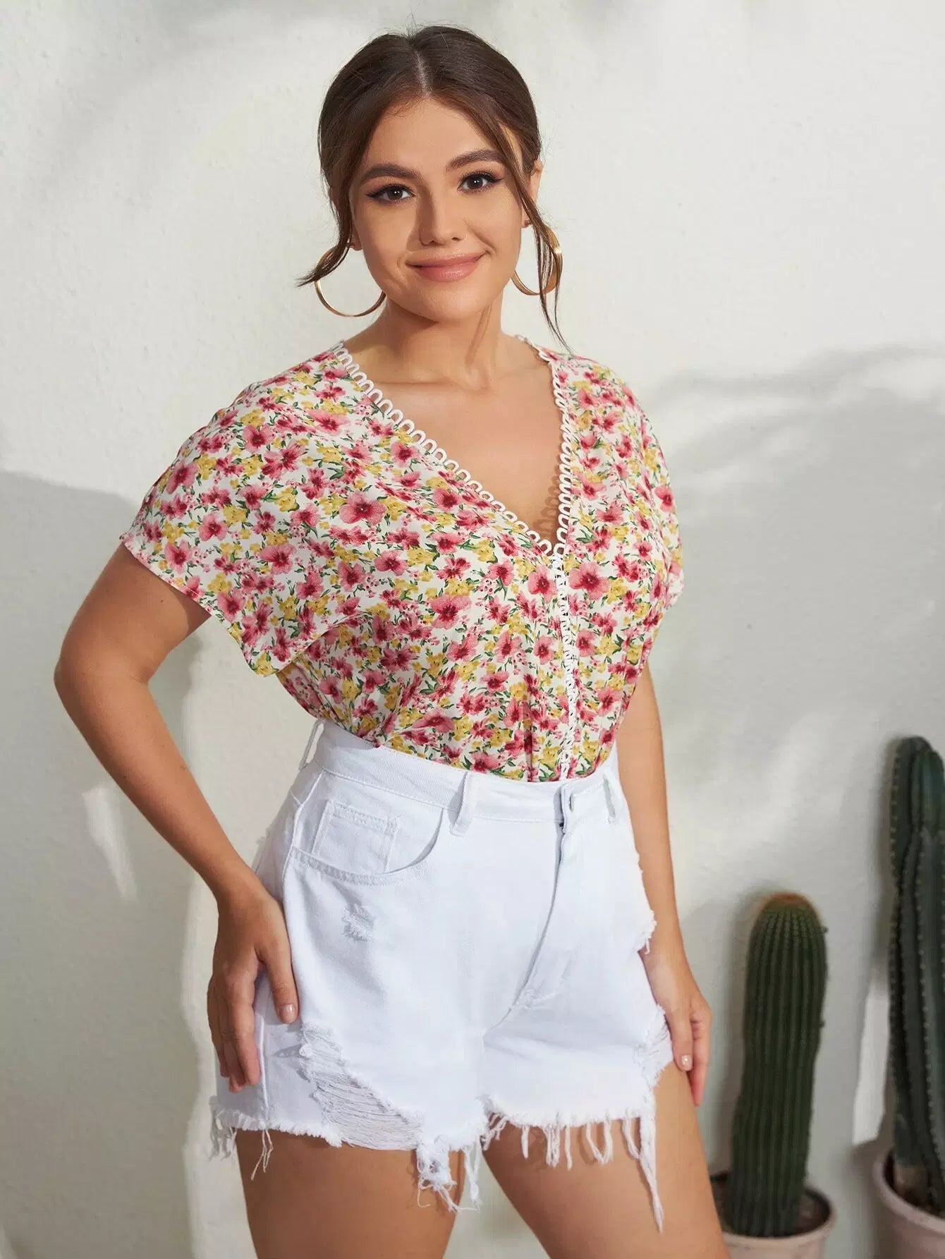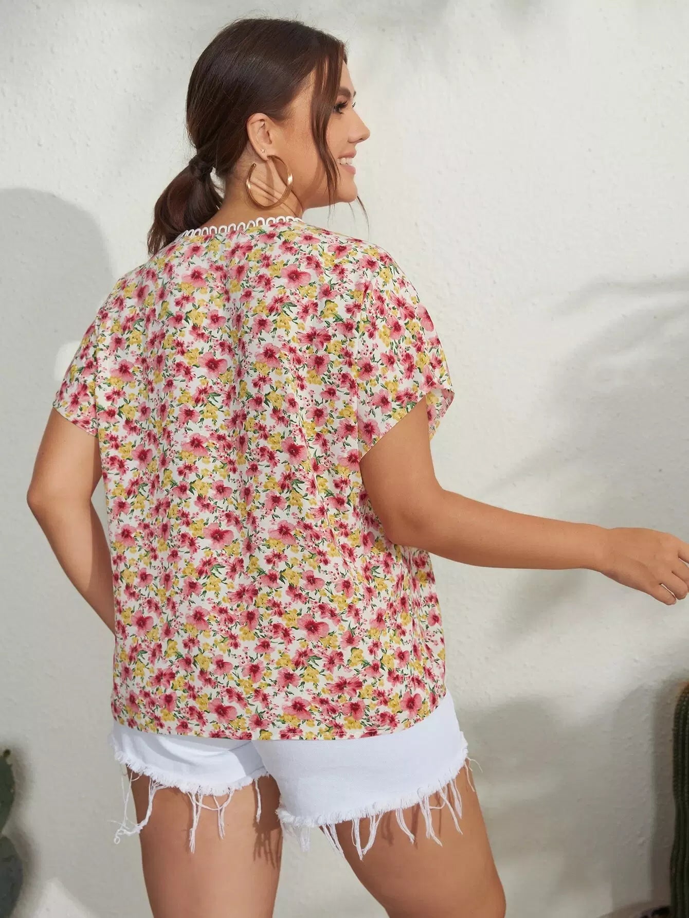 بلوزة دولمان دولمان دولمان بحواف زهرية بلون بلس بلس بلس بلس زهري بحواف بلون مغاير