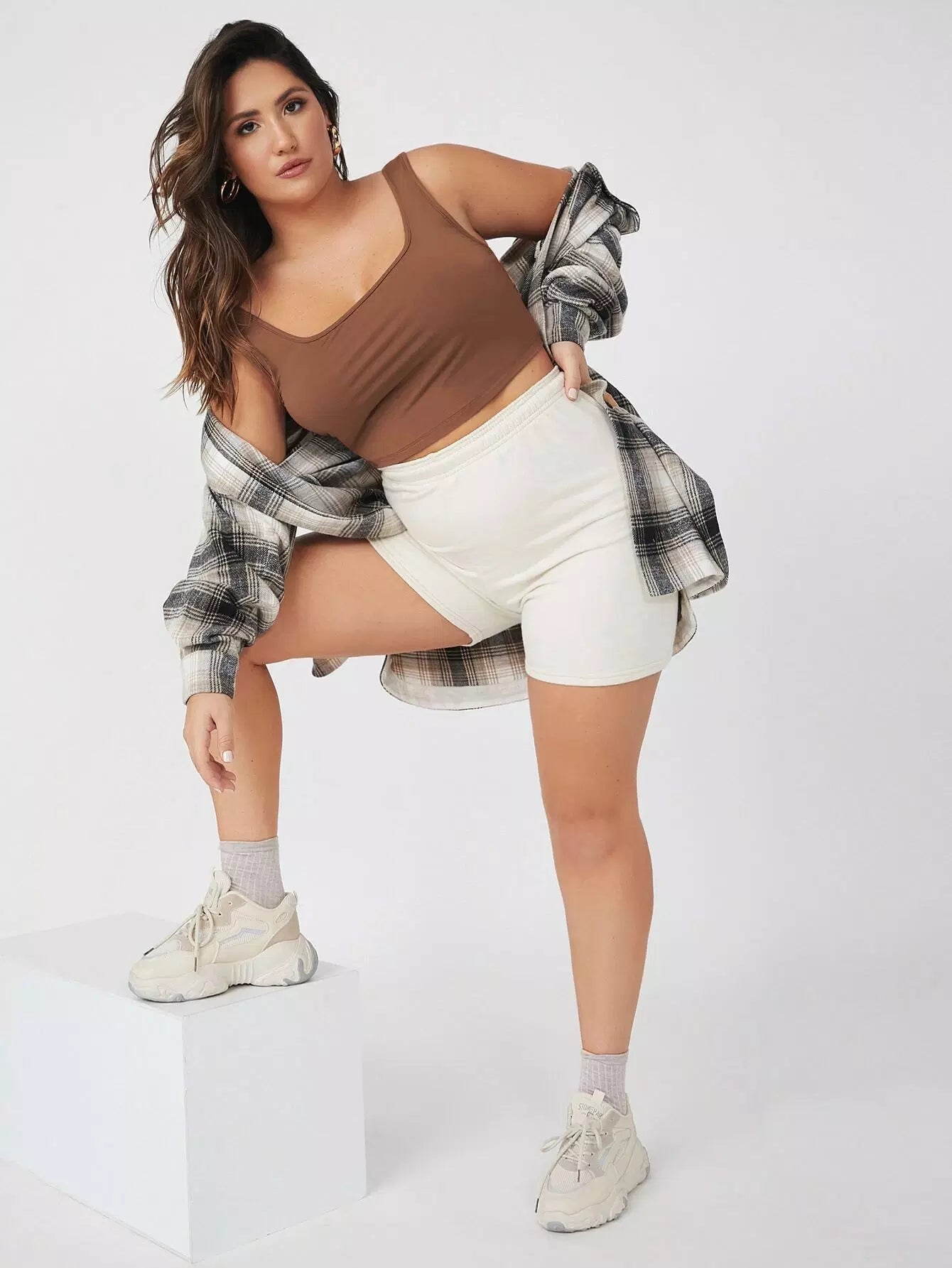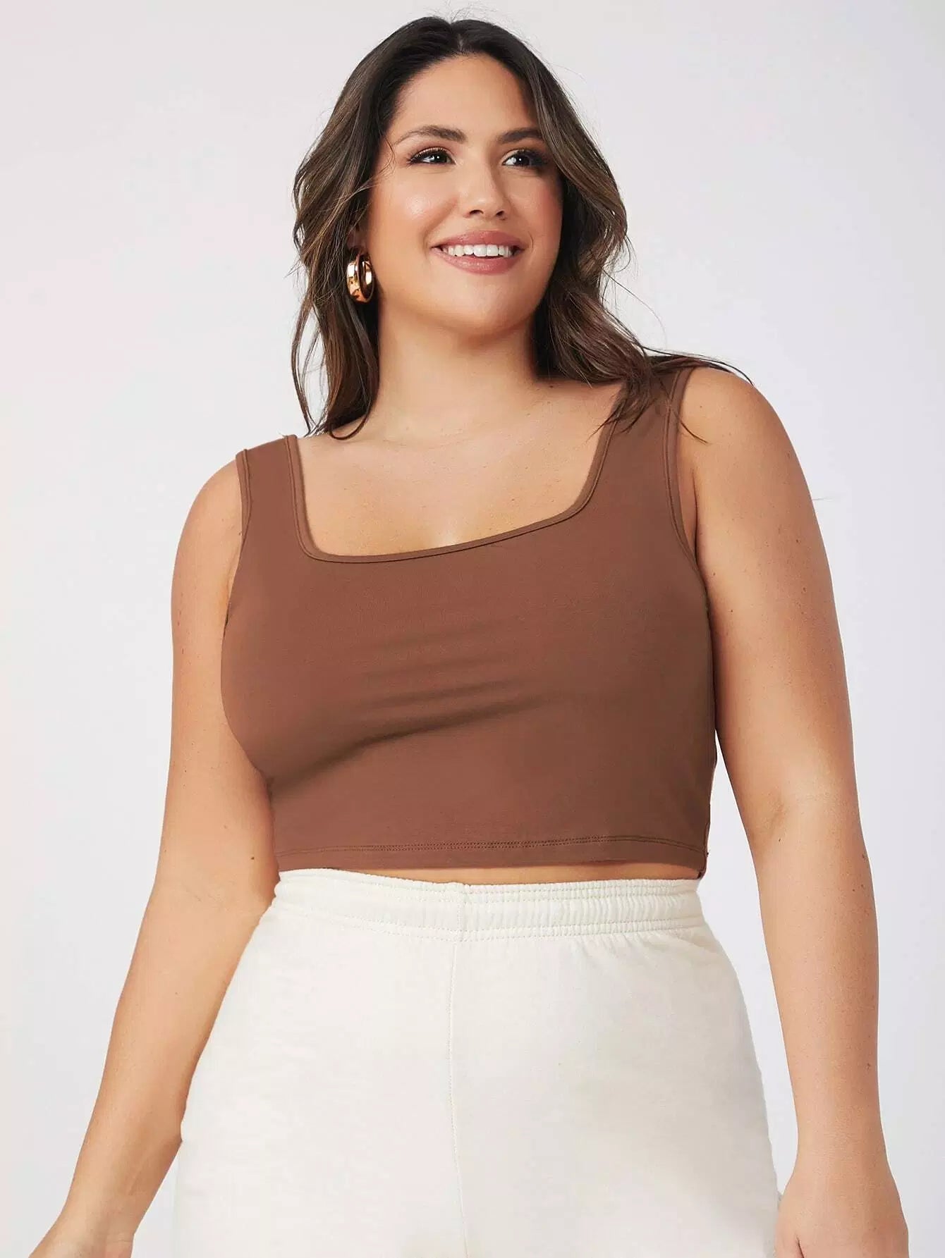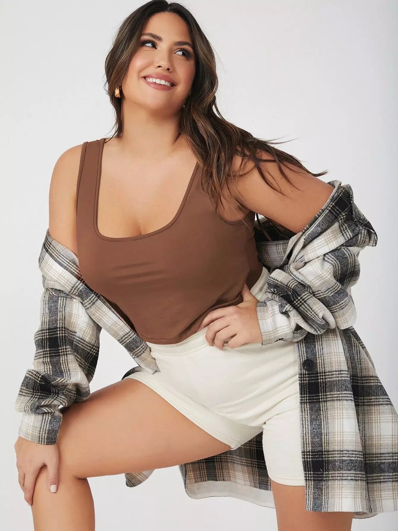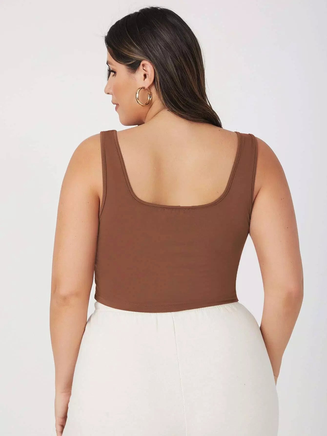 بلوزة بدون أكمام قصيرة قطنية سادة بلا أكمام