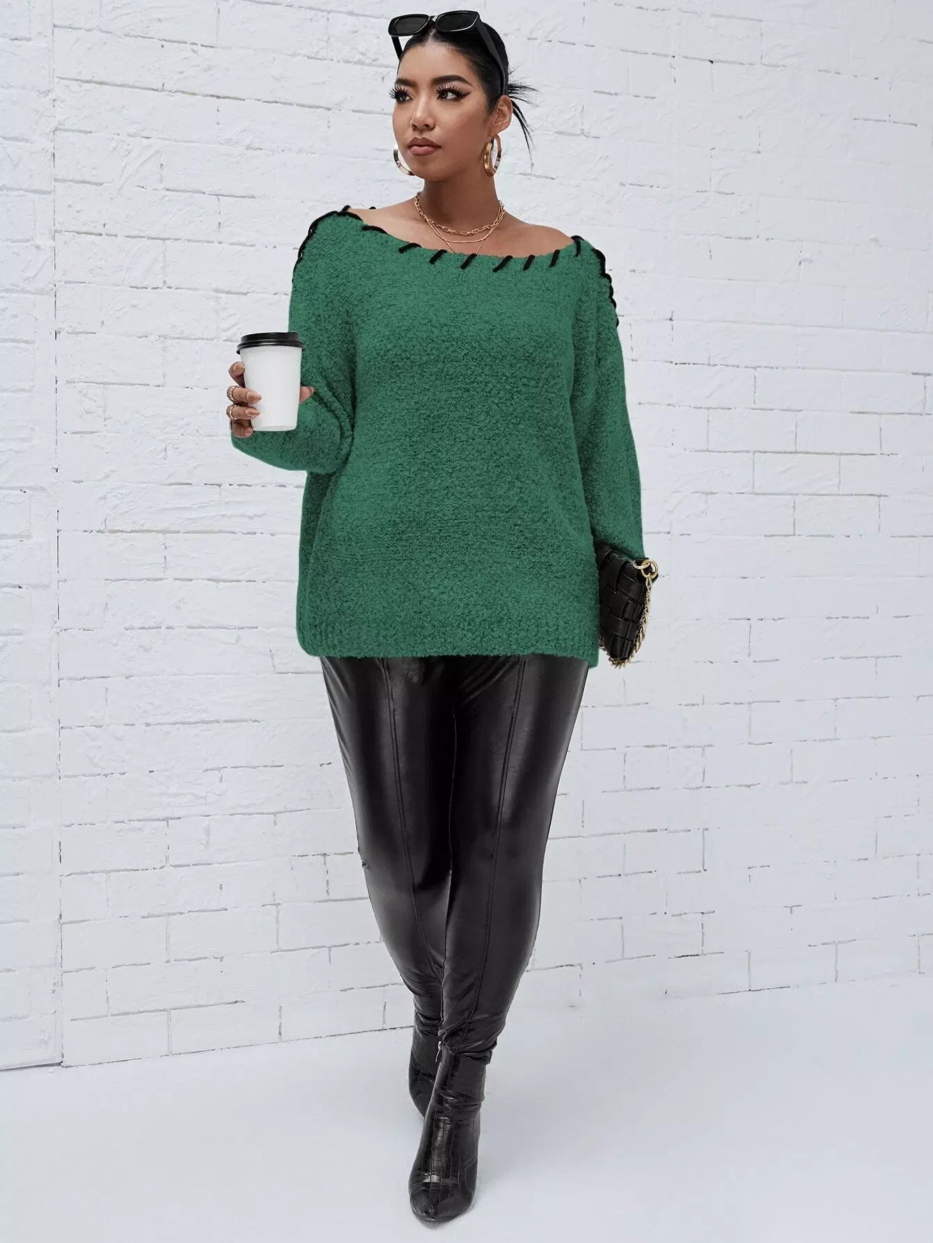 كنزة برقع متقاطعة منسدلة الكتفين زائد
