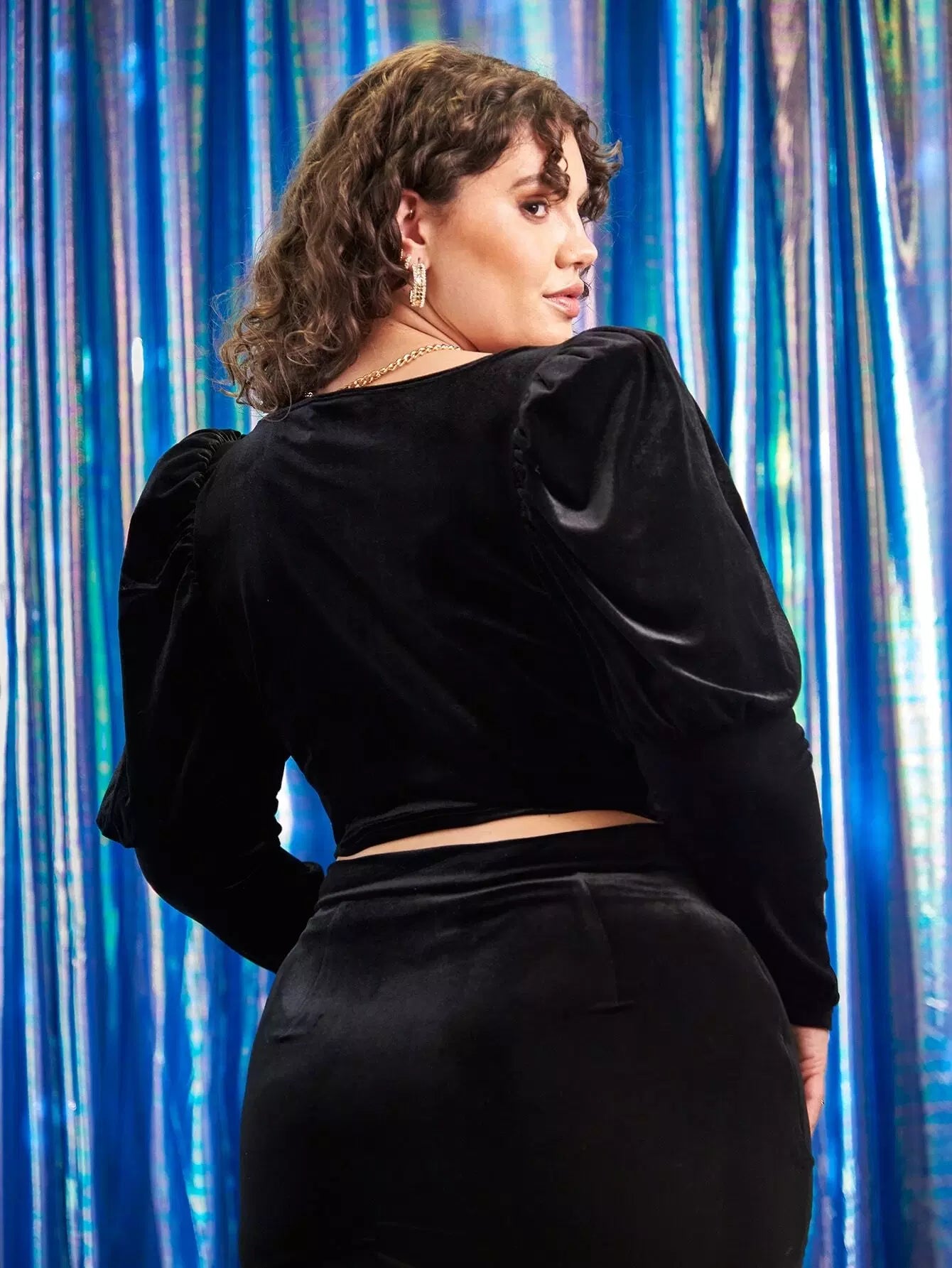 نحيف - مقاس كبير بلوزة مخملية ذات أكمام متقاطعة متقاطعة