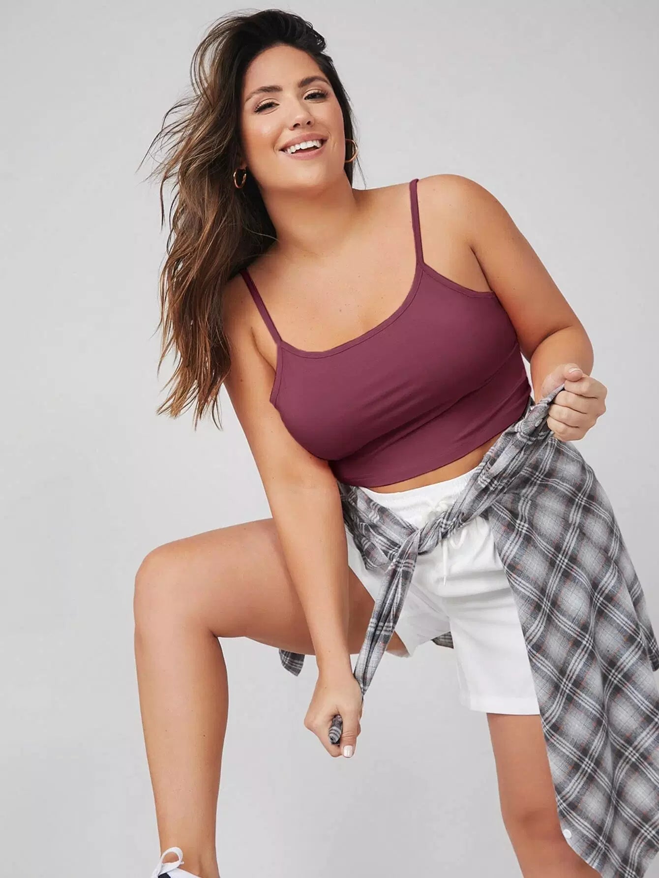 بلوزة قصيرة قصيرة بلا أكمام سادة بلا أكمام