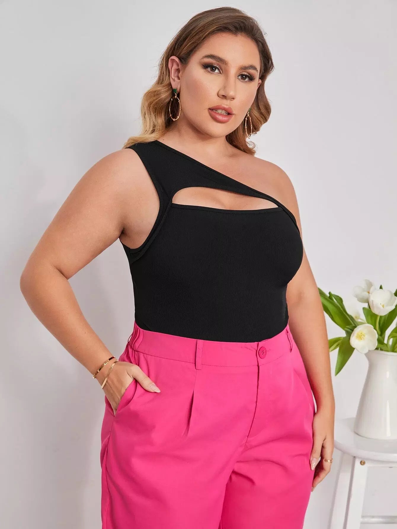 لباس قطعة واحدة كتف واحد بقصّة بلاس بلس