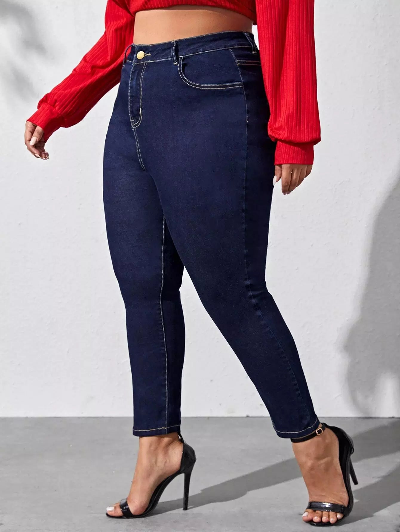 بنطلون جينز سكيني بخصر عالي الخصر داكن بلس